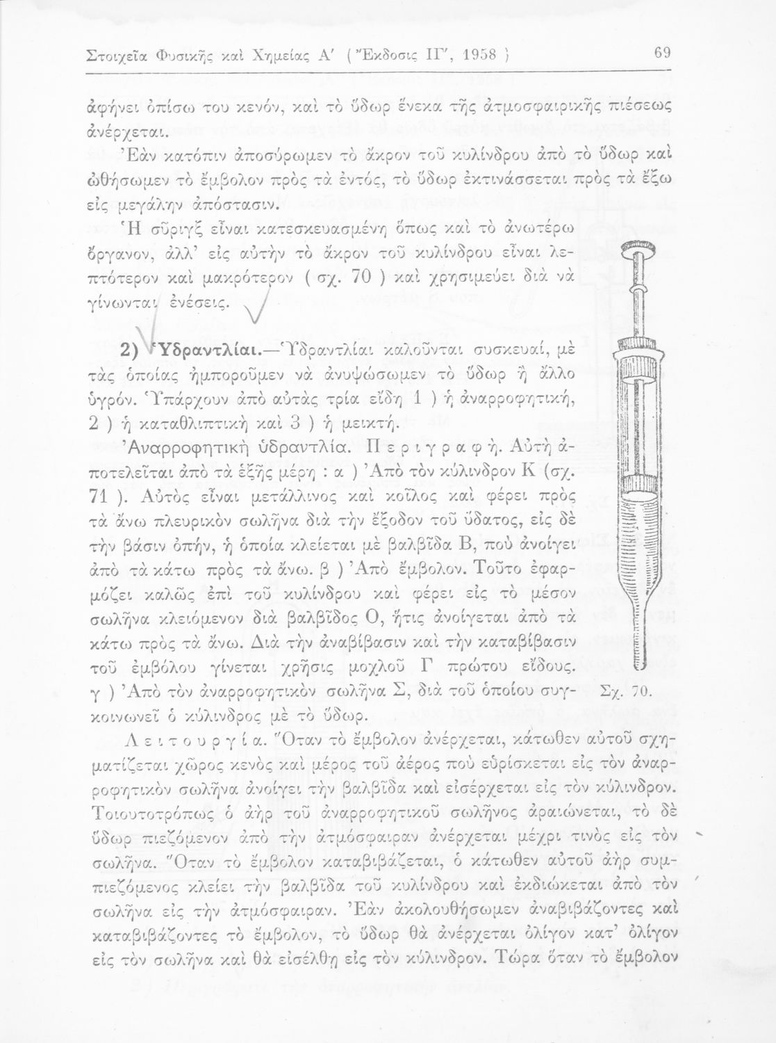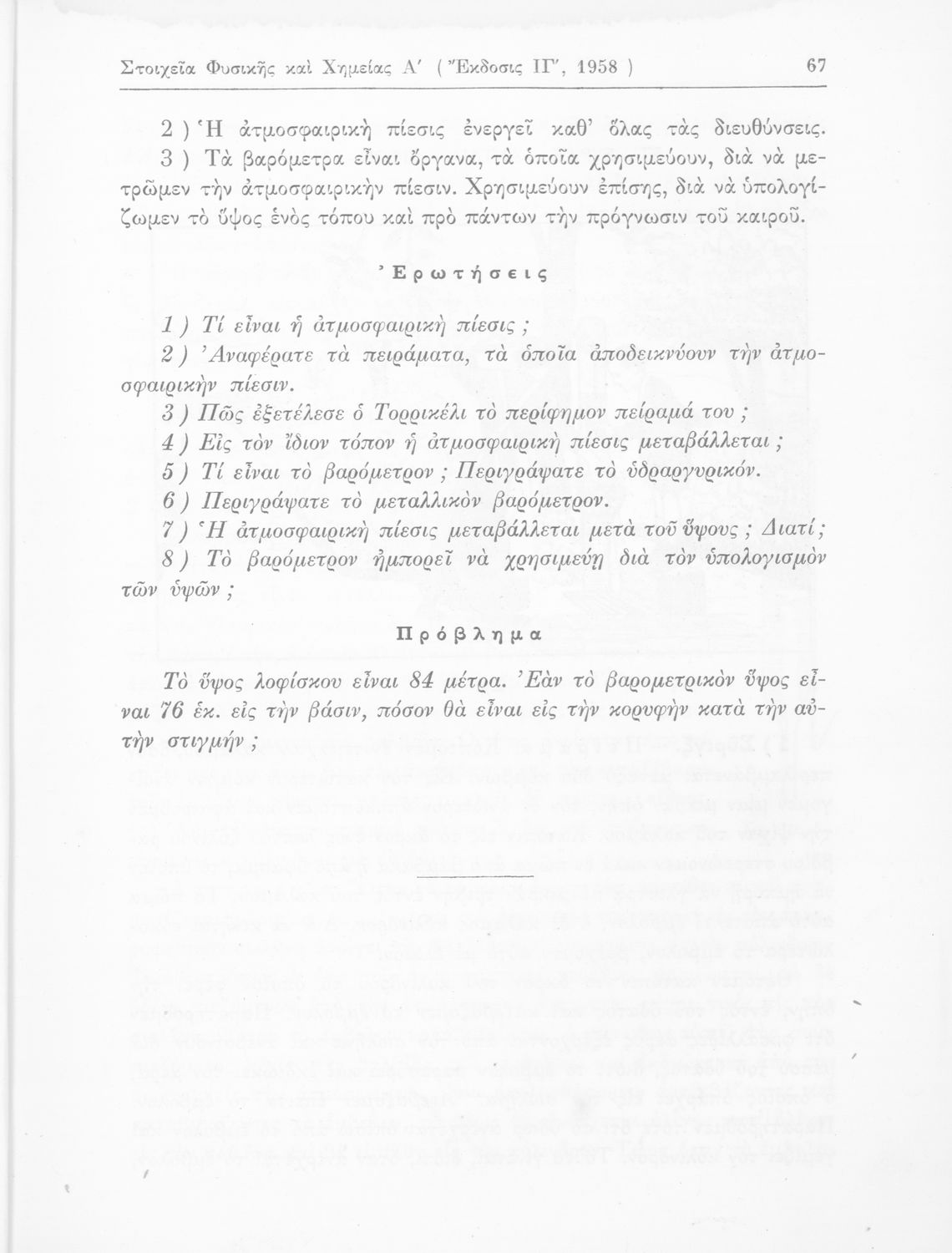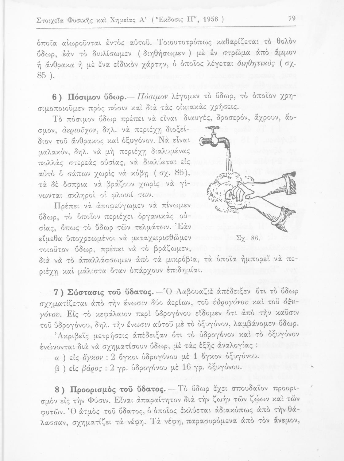 Σχολικό εγχειρίδιο για το μάθημα της Φυσικής στο Γυμνάσιο. Παρέχει βασικές γνώσεις της φυσικής επιστήμης. Αναλύει τα φαινόμενα της αδράνειας, της βαρύτητας, της υδροστατικής πίεσης κ.α. Όσον αφορά τη χημεία αναφέρεται στις ιδιότητες των μετάλλων, τα οξέα, τις βάσεις και τα άλατα. Αναφέρεται στην πρακτική εφαρμογή της φυσικής και της χημείας στην καθημερινότητά. Επίσης, περιλαμβάνει πολλά από τα όργανα, που χρησιμοποιούνται στη φυσική. Περιέχει εικόνες και σχεδιαγράμματα τα οποία βοηθούν τη διδασκαλία.