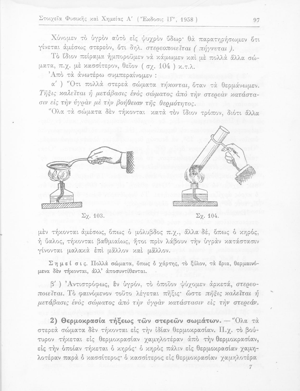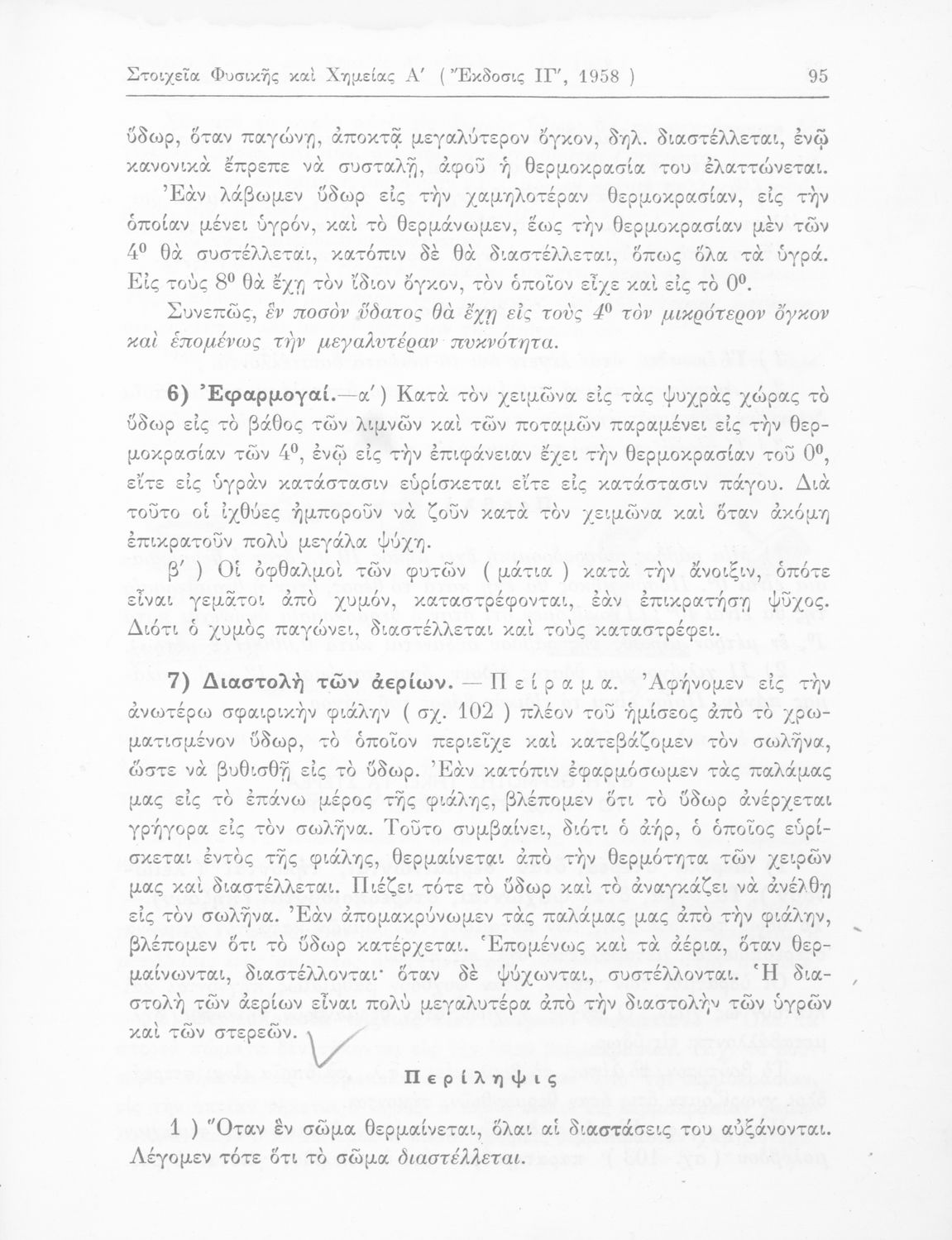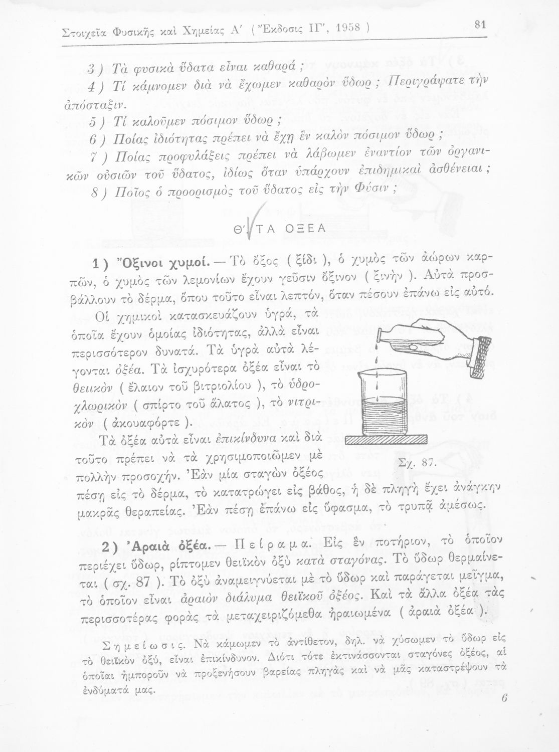 Σχολικό εγχειρίδιο για το μάθημα της Φυσικής στο Γυμνάσιο. Παρέχει βασικές γνώσεις της φυσικής επιστήμης. Αναλύει τα φαινόμενα της αδράνειας, της βαρύτητας, της υδροστατικής πίεσης κ.α. Όσον αφορά τη χημεία αναφέρεται στις ιδιότητες των μετάλλων, τα οξέα, τις βάσεις και τα άλατα. Αναφέρεται στην πρακτική εφαρμογή της φυσικής και της χημείας στην καθημερινότητά. Επίσης, περιλαμβάνει πολλά από τα όργανα, που χρησιμοποιούνται στη φυσική. Περιέχει εικόνες και σχεδιαγράμματα τα οποία βοηθούν τη διδασκαλία.