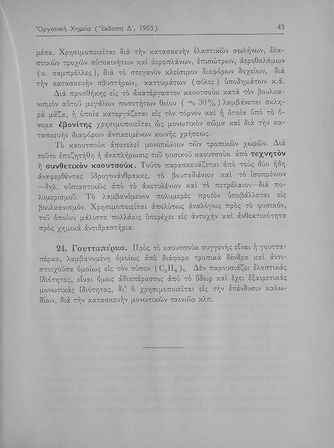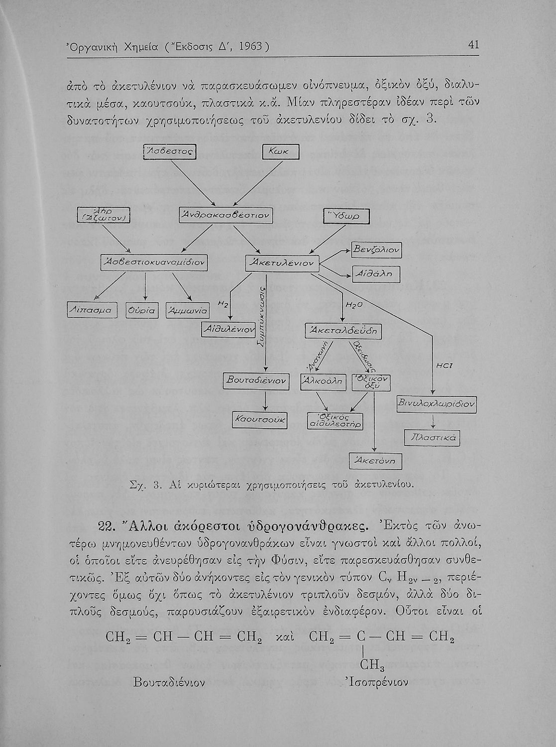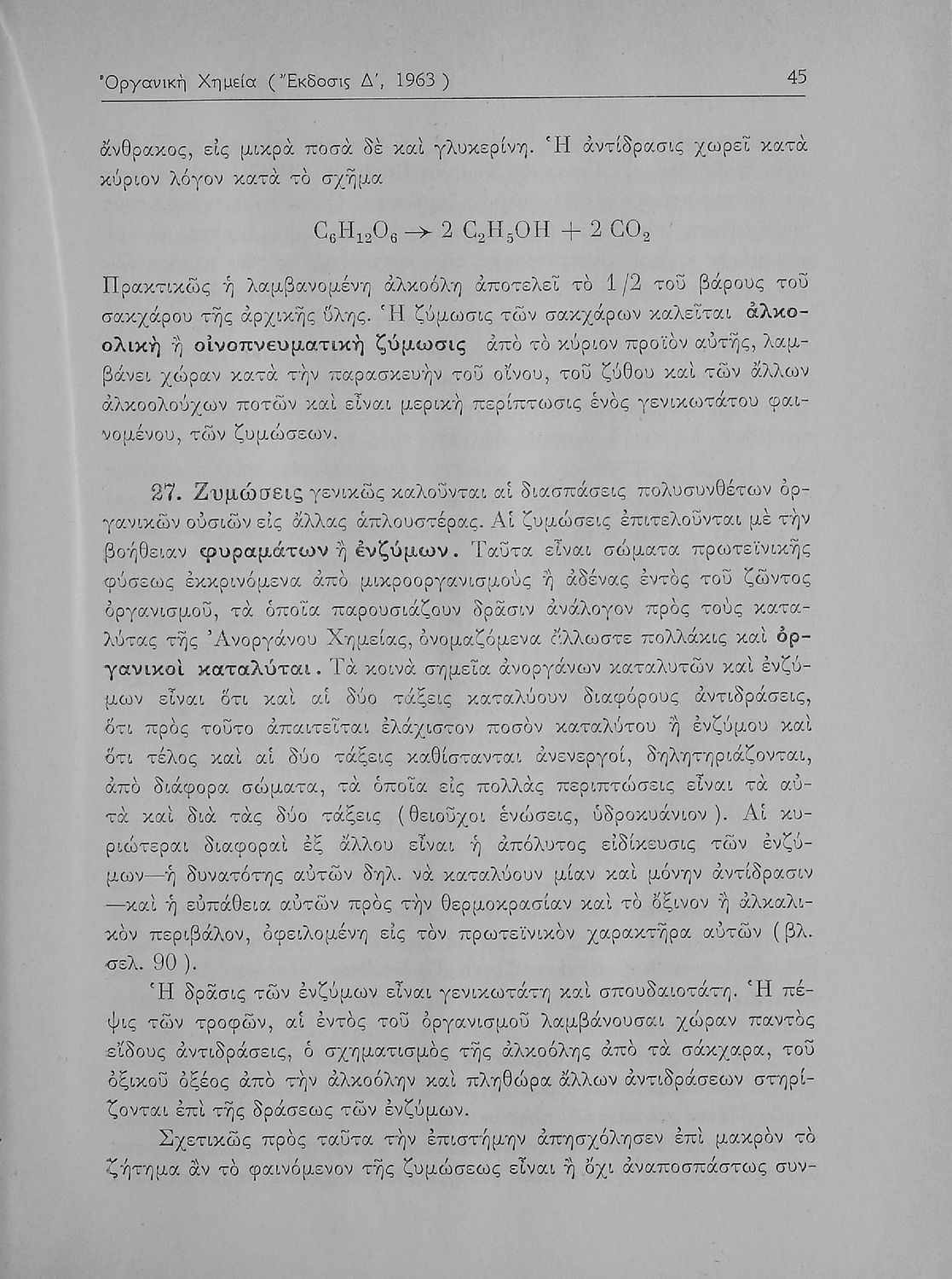 Σχολικό εγχειρίδιο Χημείας που προσδιορίζει έννοιες οργανικής χημείας, τη σύσταση οργανικών ενώσεων, κορεσμένων και ακόρεστων υδρογονανθράκων καθώς προσδιορίζει τη δράση των οργανικών ζυμώσεων. Μερικά κεφάλαια συνοδεύονται από ασκήσεις αντιδράσεων.