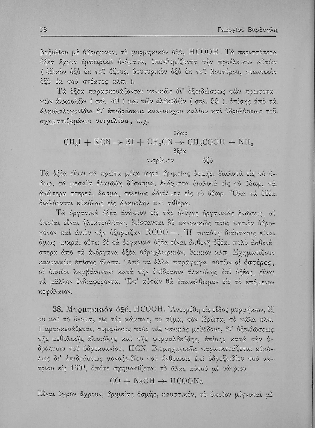 Βαθμίδα εκπαίδευσης: Δευτεροβάθμια Τάξη: ΣΤ' Γυμνασίου Μάθημα: Χημεία Γλώσσα: Καθαρεύουσα Παρουσίαση περιεχομένου: Σχολικό εγχειρίδιο Χημείας που προσδιορίζει έννοιες οργανικής χημείας, τη σύσταση οργανικών ενώσεων, κορεσμένων και ακόρεστων υδρογονανθράκων καθώς προσδιορίζει τη δράση των οργανικών ζυμώσεων. Μερικά κεφάλαια συνοδεύονται από ασκήσεις αντιδράσεων. |