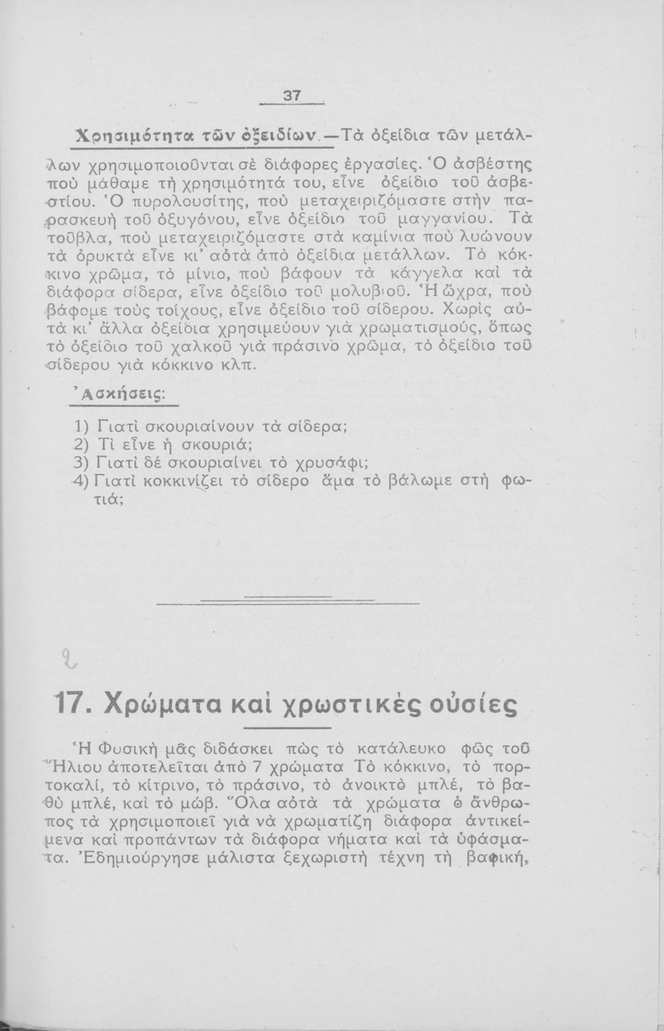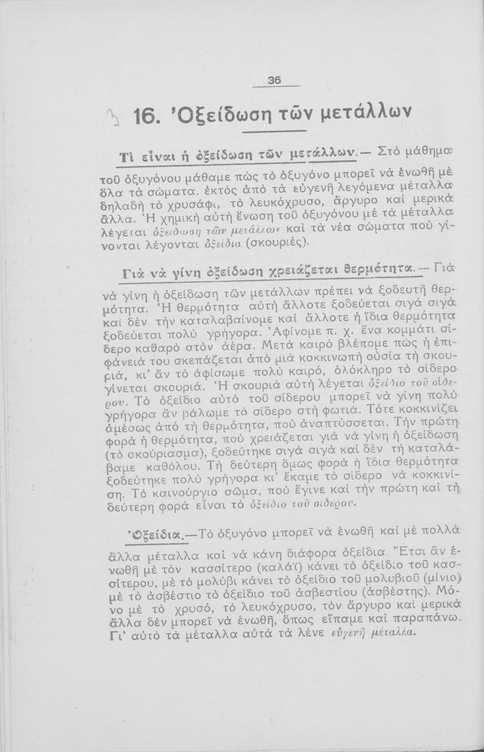 Βαθμίδα εκπαίδευσης: Πρωτοβάθμια Τάξη: Ε' Δημοτικού / ΣΤ' Δημοτικού Μάθημα: Χημεία Γλώσσα: Δημοτική Παρουσίαση περιεχομένου: Μαθητικό βοήθημα Χημείας Ε΄ και ΣΤ΄ Δημοτικού που παρουσιάζει πλήθος χημικών στοιχείων και ενώσεων. |