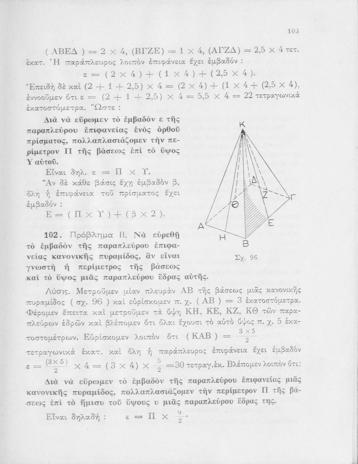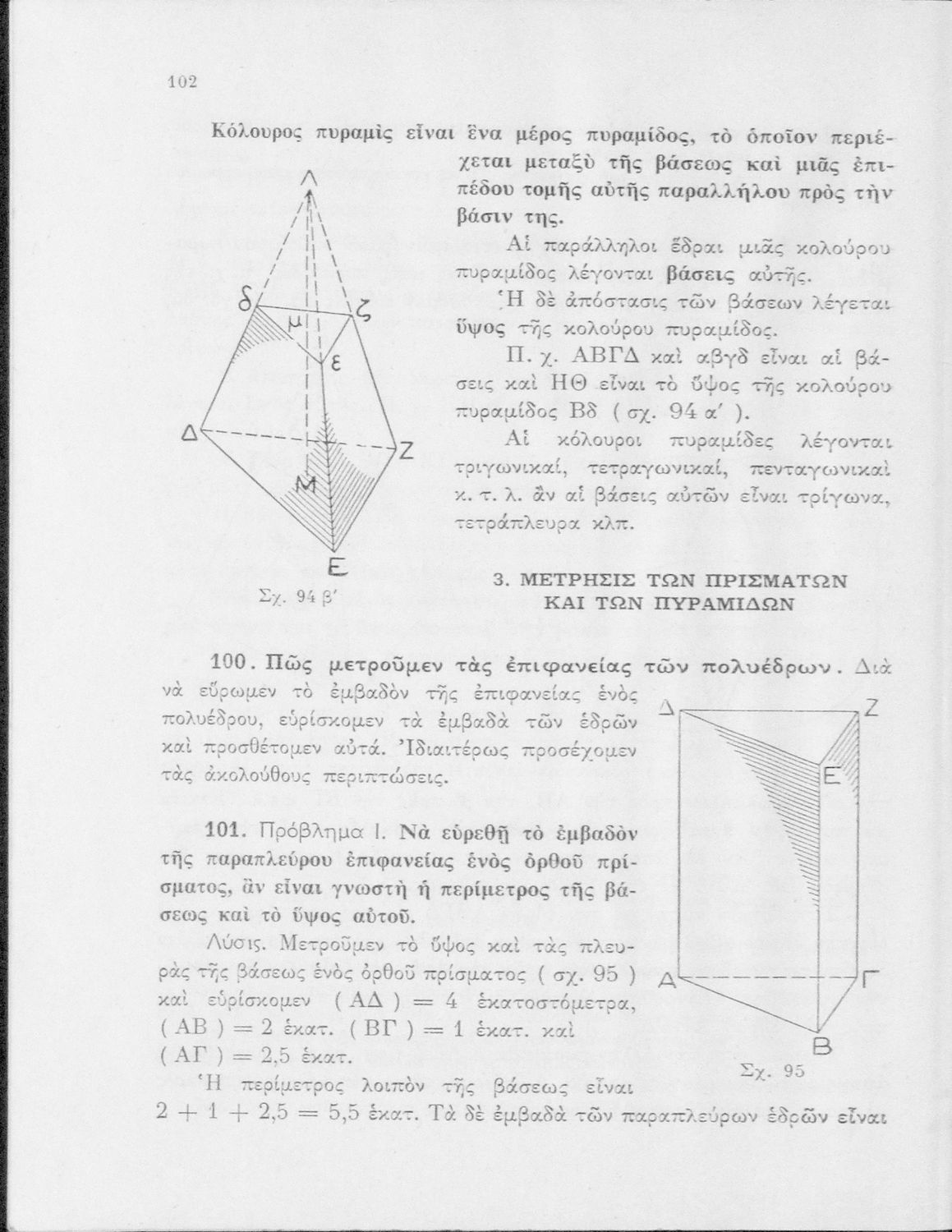 Βαθμίδα εκπαίδευσης: Δευτεροβάθμια Τάξη: Γυμνάσιο Μάθημα: Μαθηματικά Γλώσσα: Απλή καθαρεύουσα Παρουσίαση περιεχομένου: Σχολικό εγχειρίδιο Γεωμετρίας Γυμνασίου που περιλαμβάνει θεωρία και ασκήσεις και είναι χωρισμένο σε Επιπεδομετρία και Στερεομετρία. |