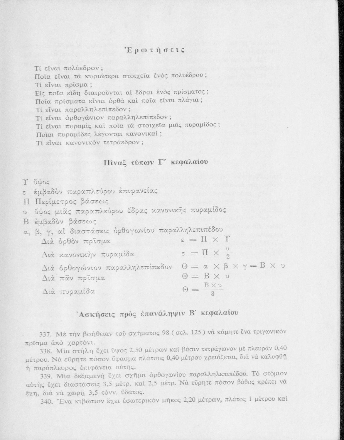 Σχολικό εγχειρίδιο Γεωμετρίας Γυμνασίου που περιλαμβάνει θεωρία και ασκήσεις και είναι χωρισμένο σε Επιπεδομετρία και Στερεομετρία.