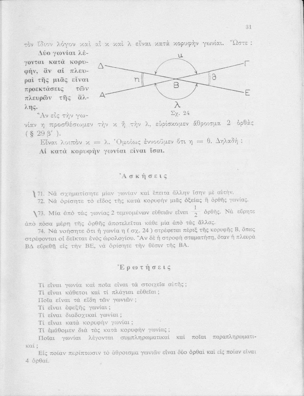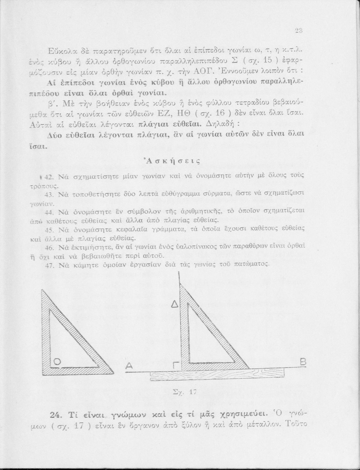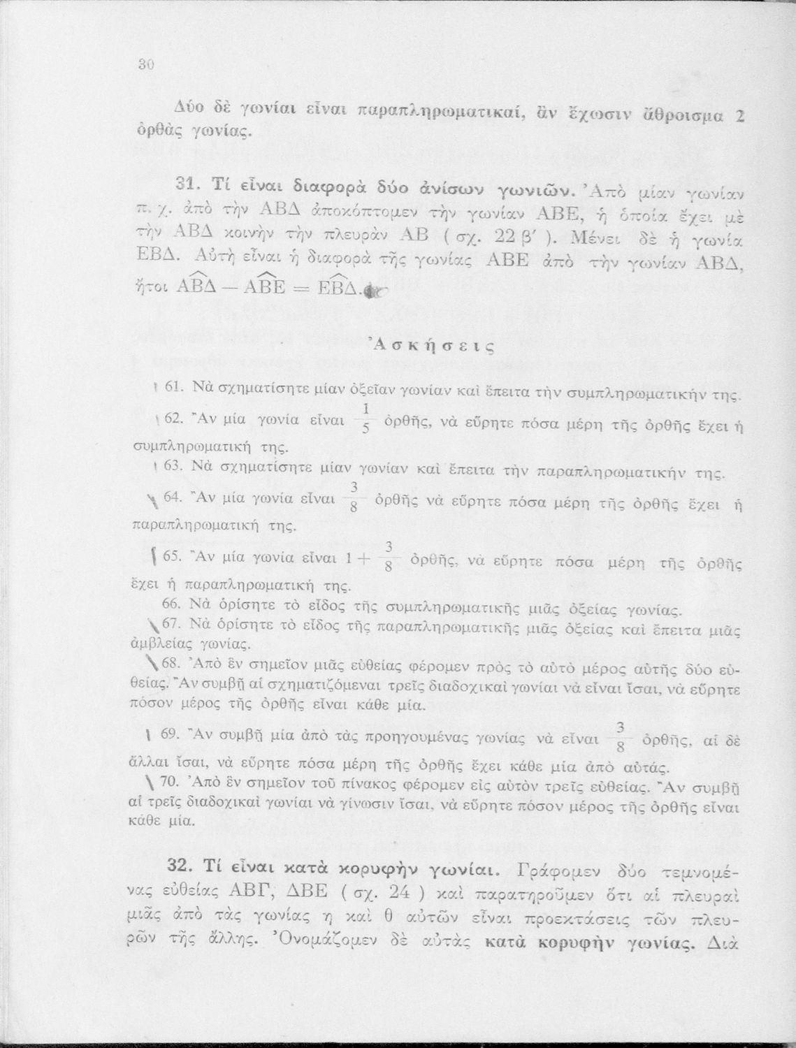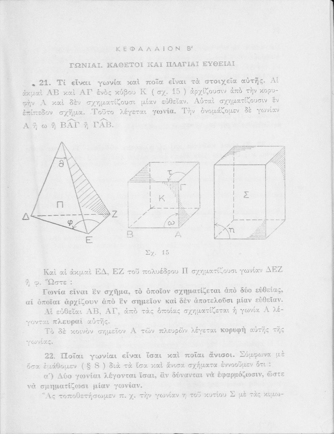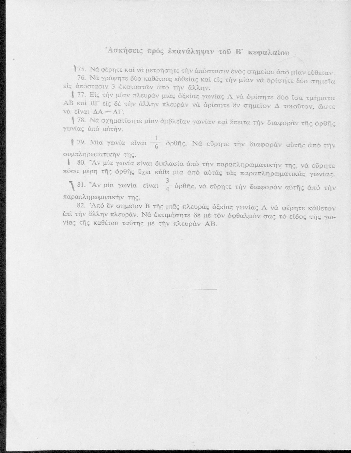 Βαθμίδα εκπαίδευσης: Δευτεροβάθμια Τάξη: Γυμνάσιο Μάθημα: Μαθηματικά Γλώσσα: Απλή καθαρεύουσα Παρουσίαση περιεχομένου: Σχολικό εγχειρίδιο Γεωμετρίας Γυμνασίου που περιλαμβάνει θεωρία και ασκήσεις και είναι χωρισμένο σε Επιπεδομετρία και Στερεομετρία. |