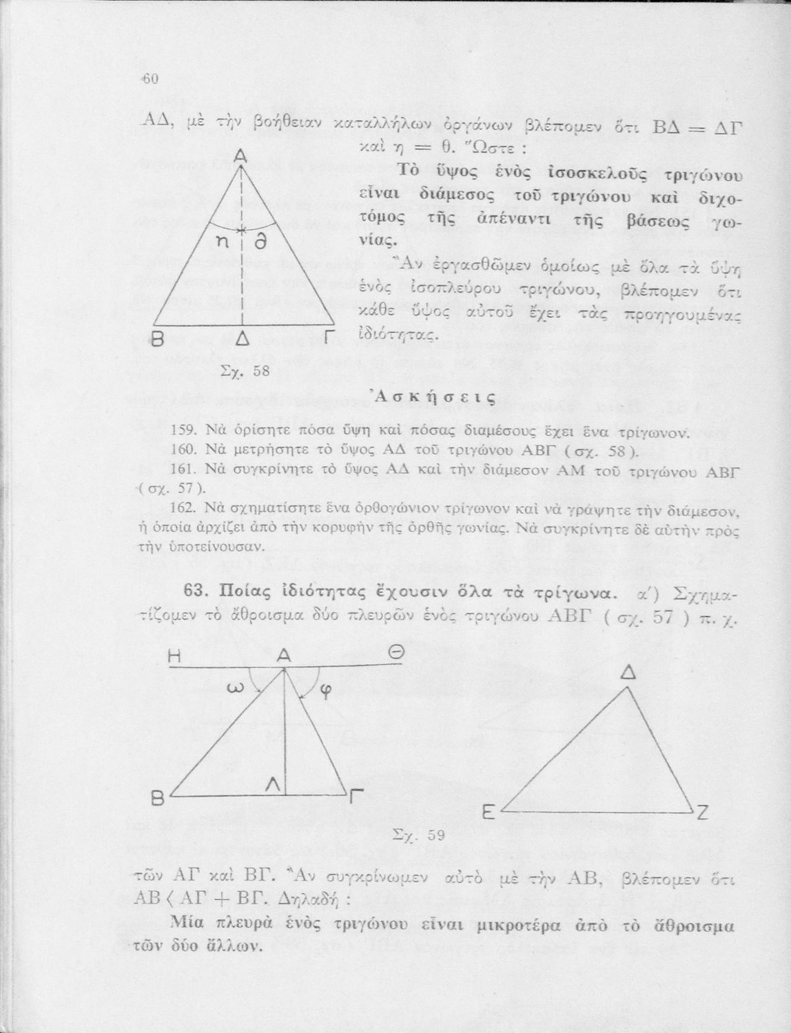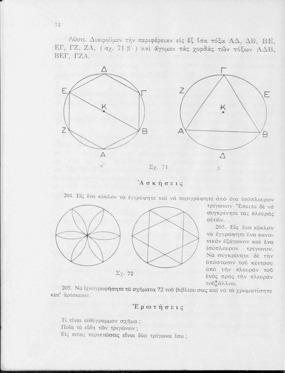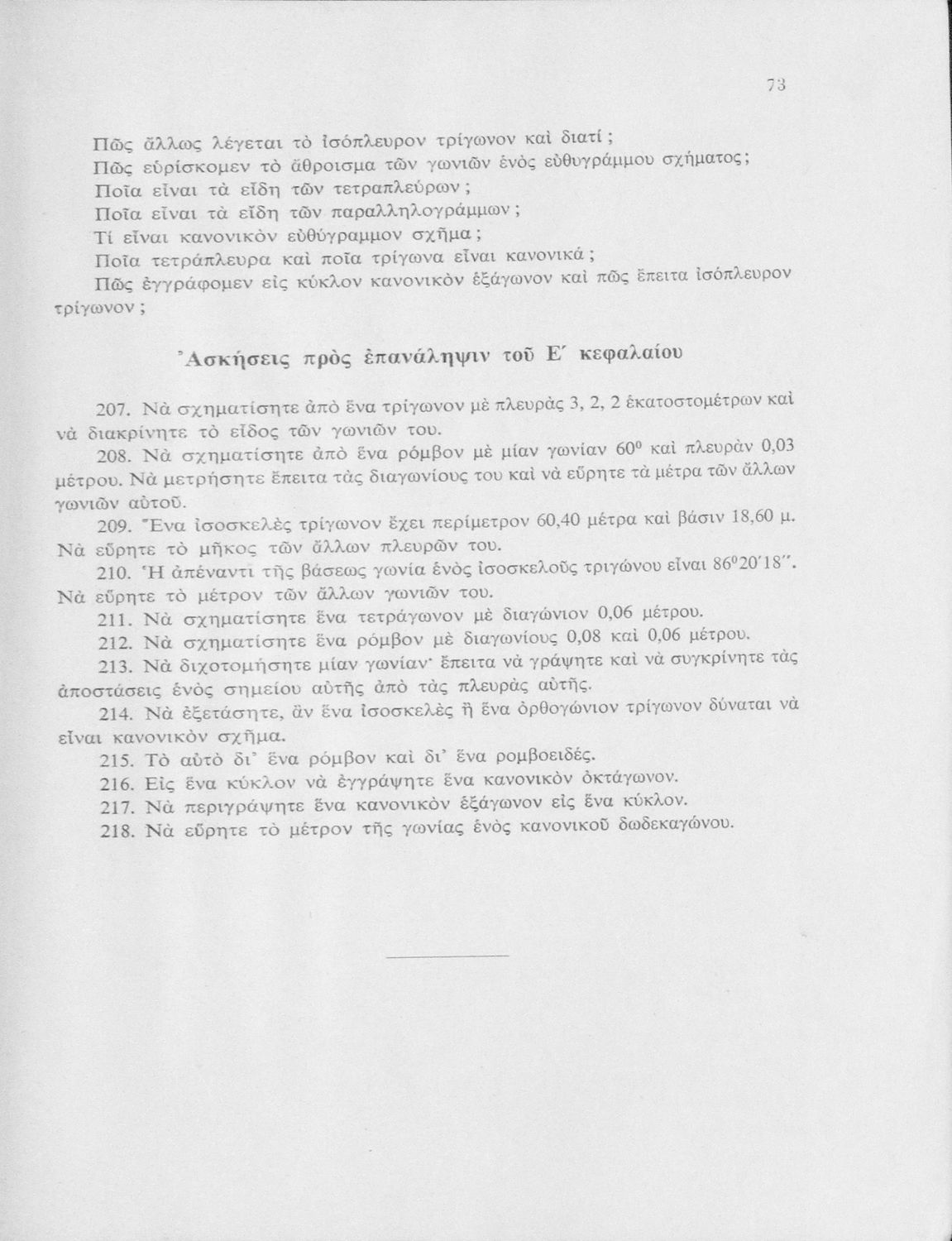 Σχολικό εγχειρίδιο Γεωμετρίας για τα Γυμνάσια και Αστικά Σχολεία που περιλαμβάνει θεωρία και ασκήσεις και είναι χωρισμένο σε Επιπεδομετρία και Στερεομετρία.