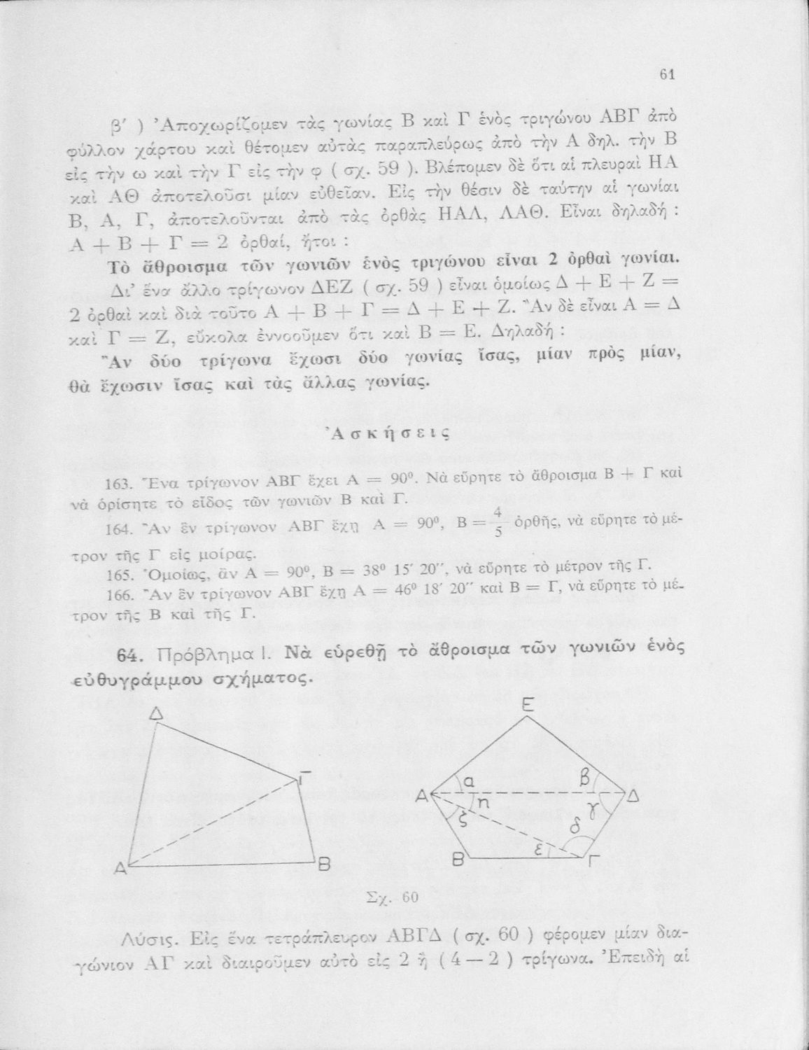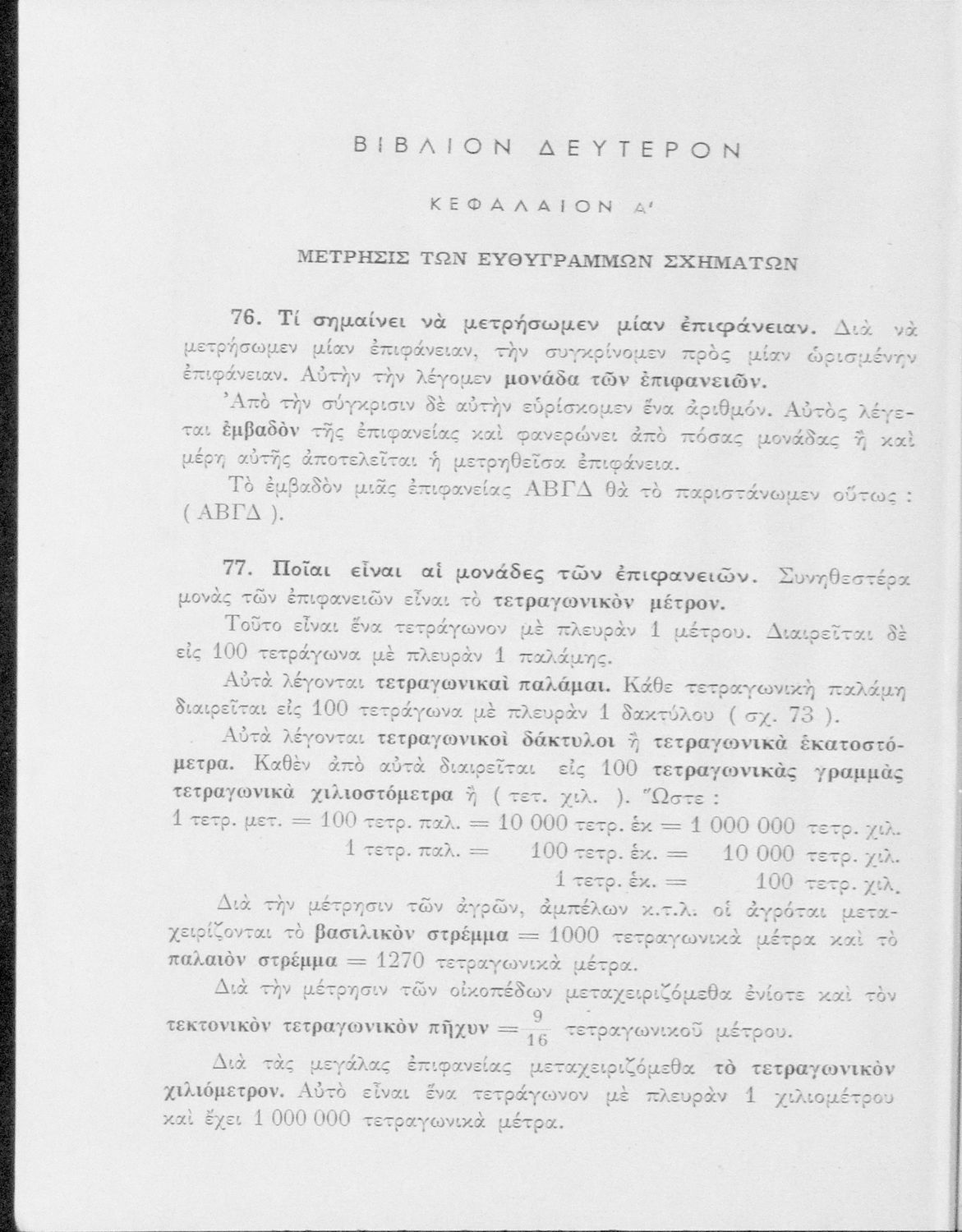 Σχολικό εγχειρίδιο Γεωμετρίας Γυμνασίων και Αστικών Σχολείων χωρισμένο σε Επιπεδομετρία και Στερεομετρία. Περιλαμβάνει και στοιχεία Χωρομετρίας.