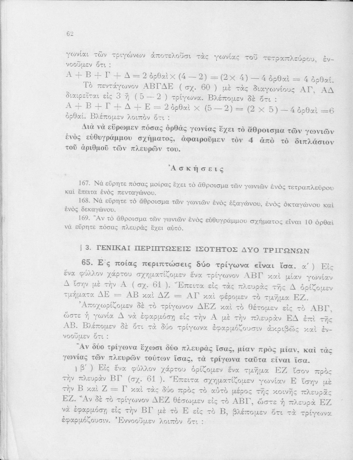 Σχολικό εγχειρίδιο Γεωμετρίας για τα Γυμνάσια και τα Αστικά Σχολεία που είναι χωρισμένο σε Επιπεδομετρία και Στερεομετρία και περιλαμβάνει θεωρία και ασκήσεις.