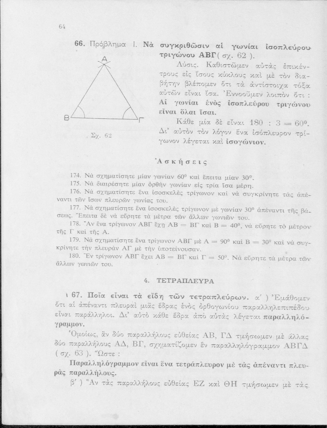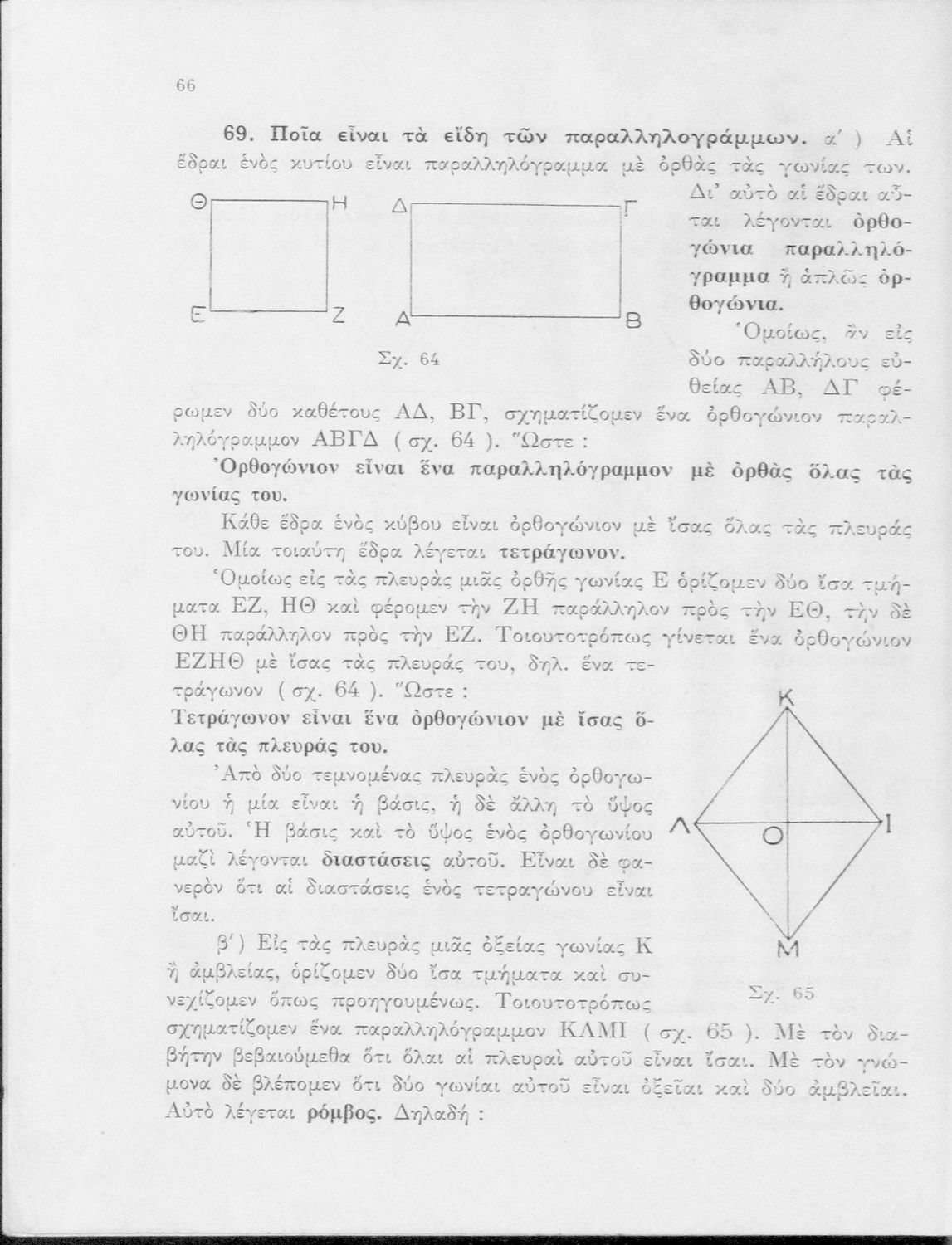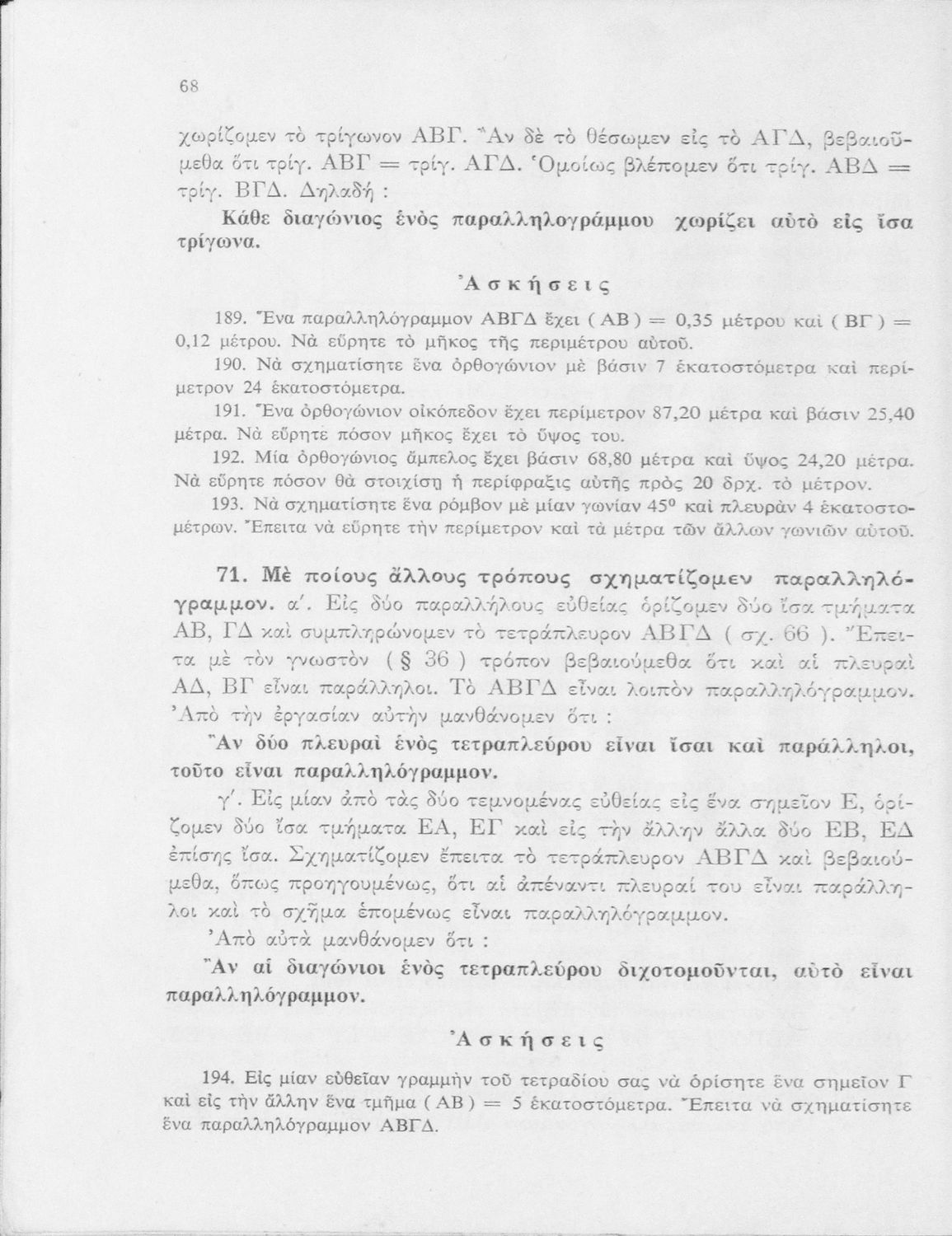 Σχολικό εγχειρίδιο των κατωτέρων τάξεων του Γυμνασίου για το μάθημα της Γεωμετρίας. Το εγχειρίδιο αποτελείται από την εισαγωγή, όπου αναλύονται οι βασικές έννοιες των ιδιοτήτων και γνωρισμάτων των γεωμετρικών ...