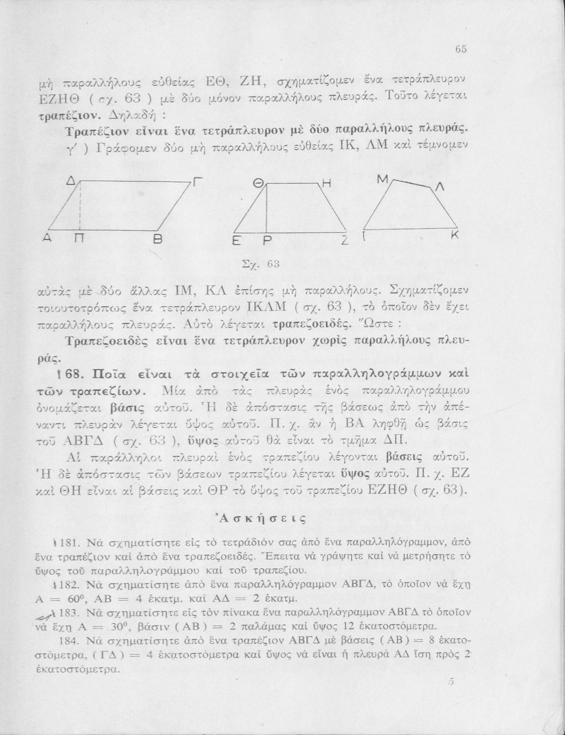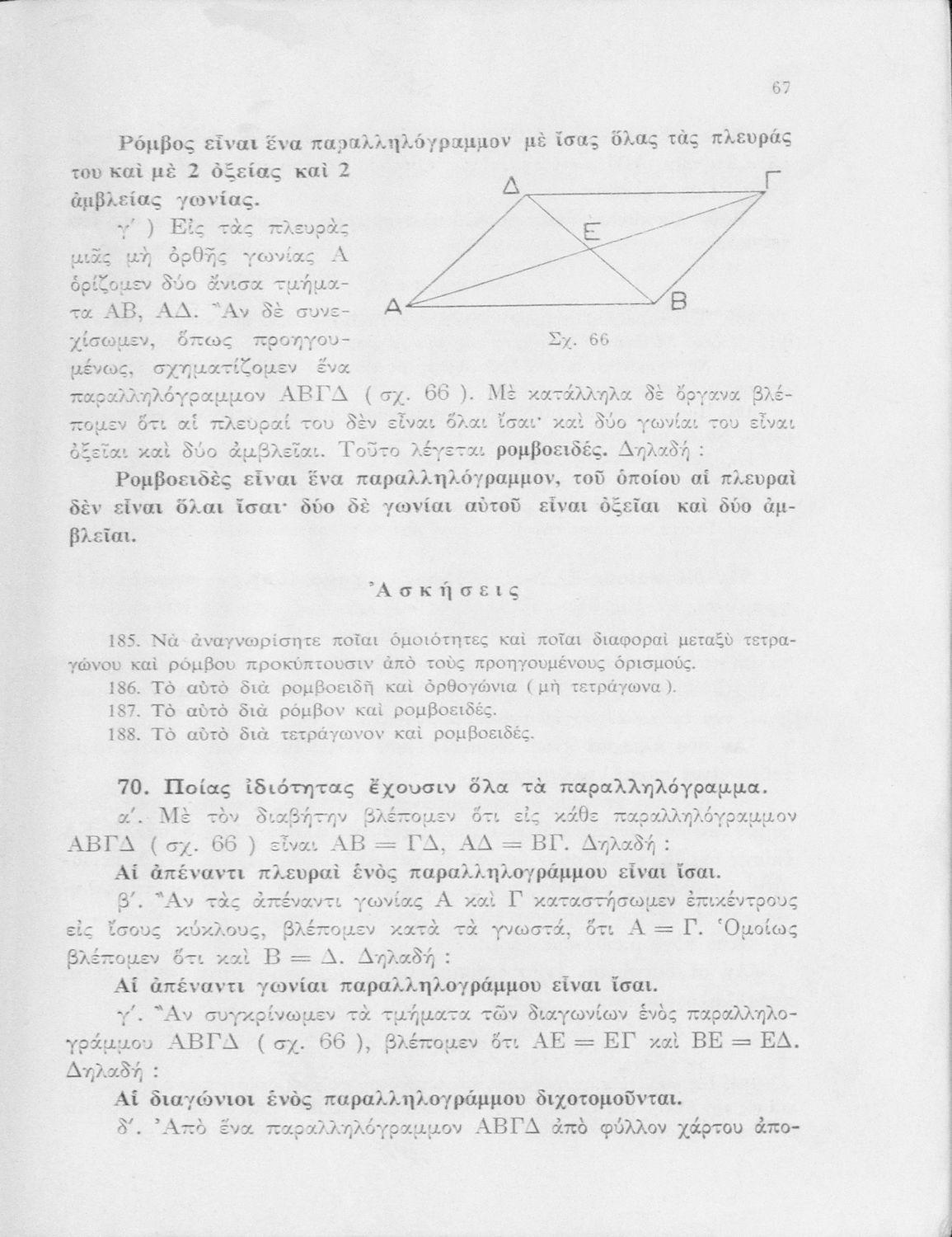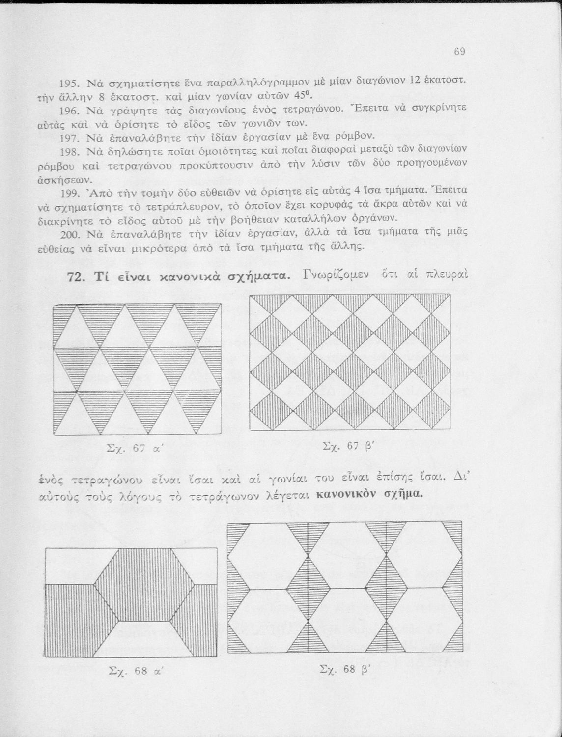 Σχολικό εγχειρίδιο των κατωτέρων τάξεων του Γυμνασίου για το μάθημα της Γεωμετρίας. Το εγχειρίδιο αποτελείται από την εισαγωγή, όπου αναλύονται οι βασικές έννοιες των ιδιοτήτων και γνωρισμάτων των γεωμετρικών ...