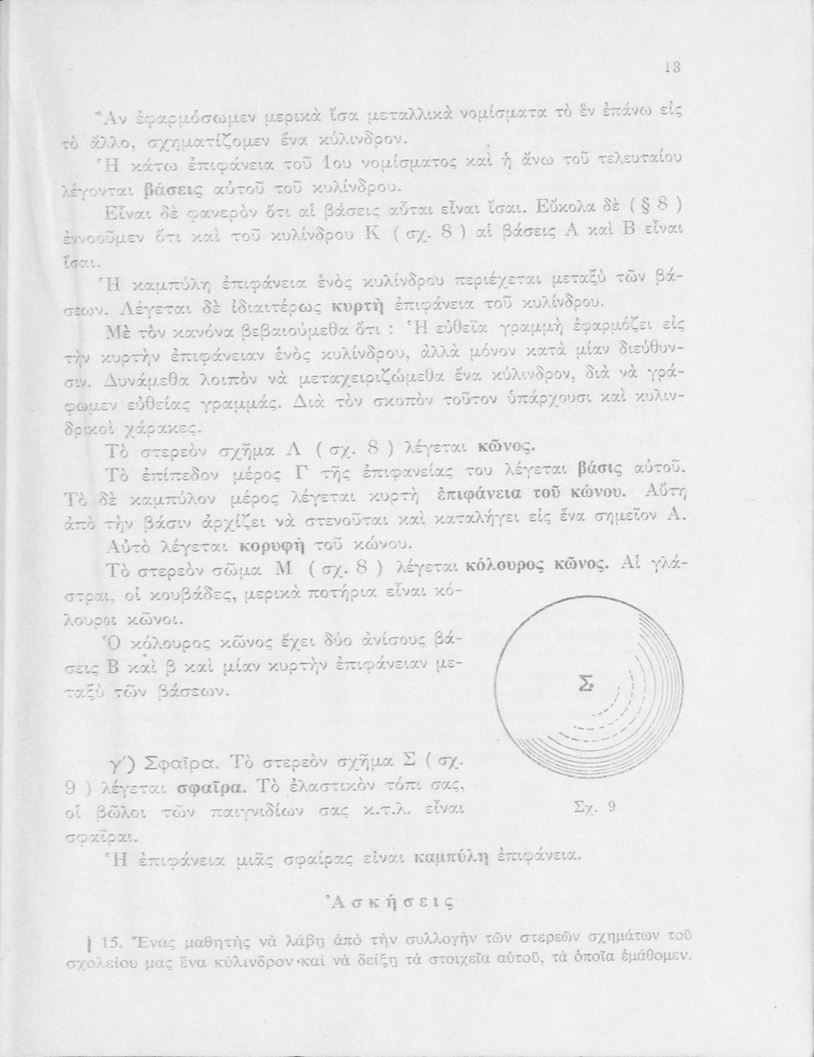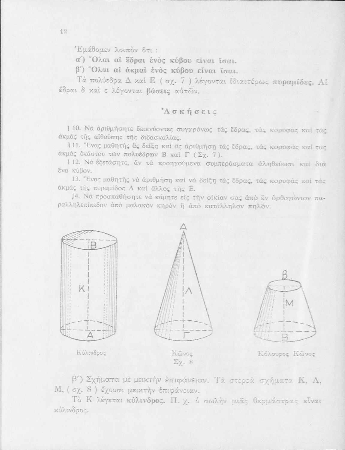 Σχολικό εγχειρίδιο Γεωμετρίας Γυμνασίου που περιλαμβάνει θεωρία και ασκήσεις και είναι χωρισμένο σε Επιπεδομετρία και Στερεομετρία.