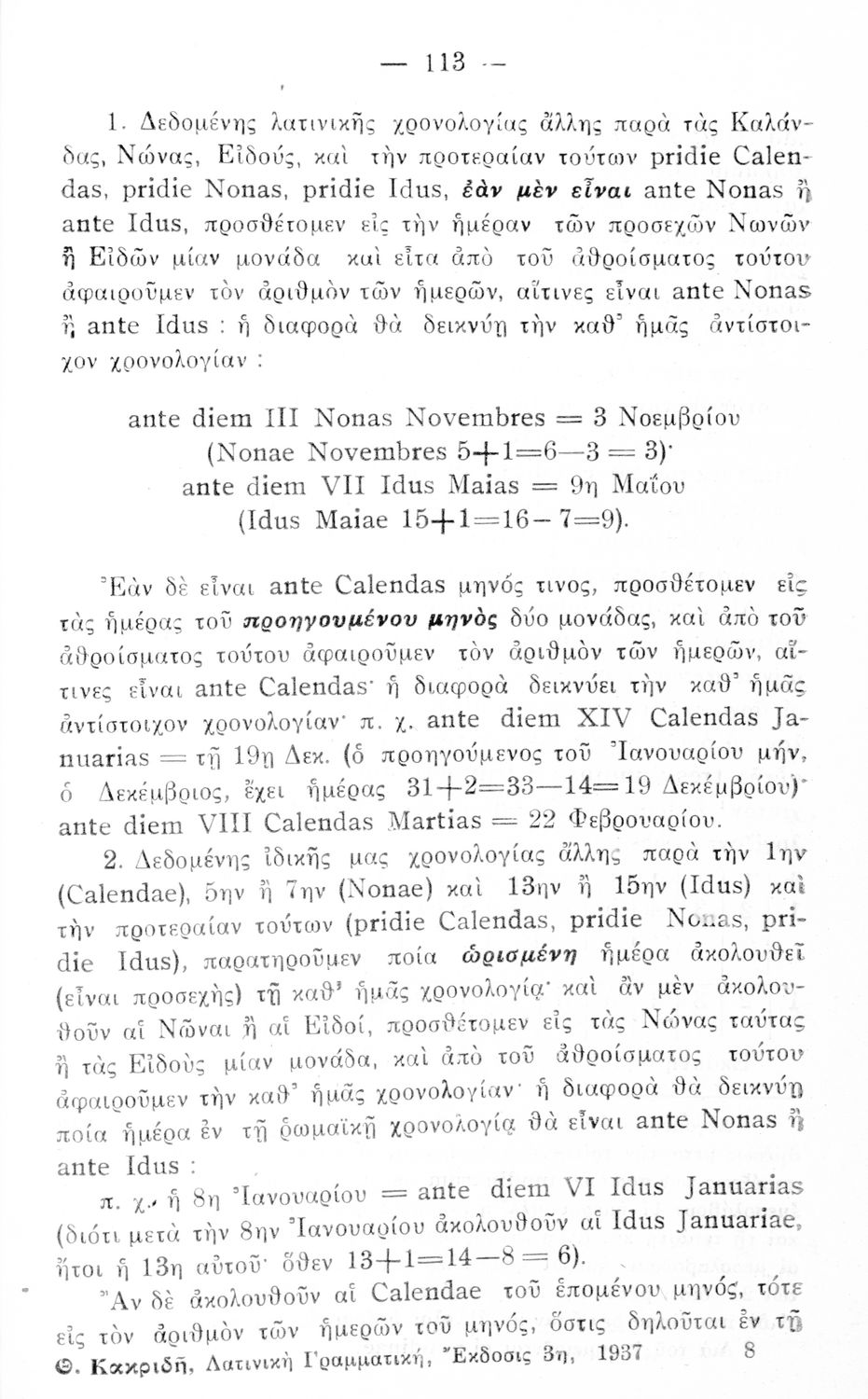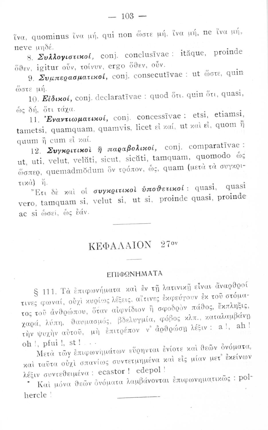 Κωδικός αναγνώρισης: 01-17888 Τίτλος: Γραμματική της λατινικής γλώσσης προς χρήσιν των Γυμνασίων Συγγραφέας: Θεοφάνης Α. Κακριδής Μέγεθος και υπόστρωμα: Σχολικό εγχειρίδιο, 19εκ., σκληρό εξώφυλλο, 255 σελίδες. |
