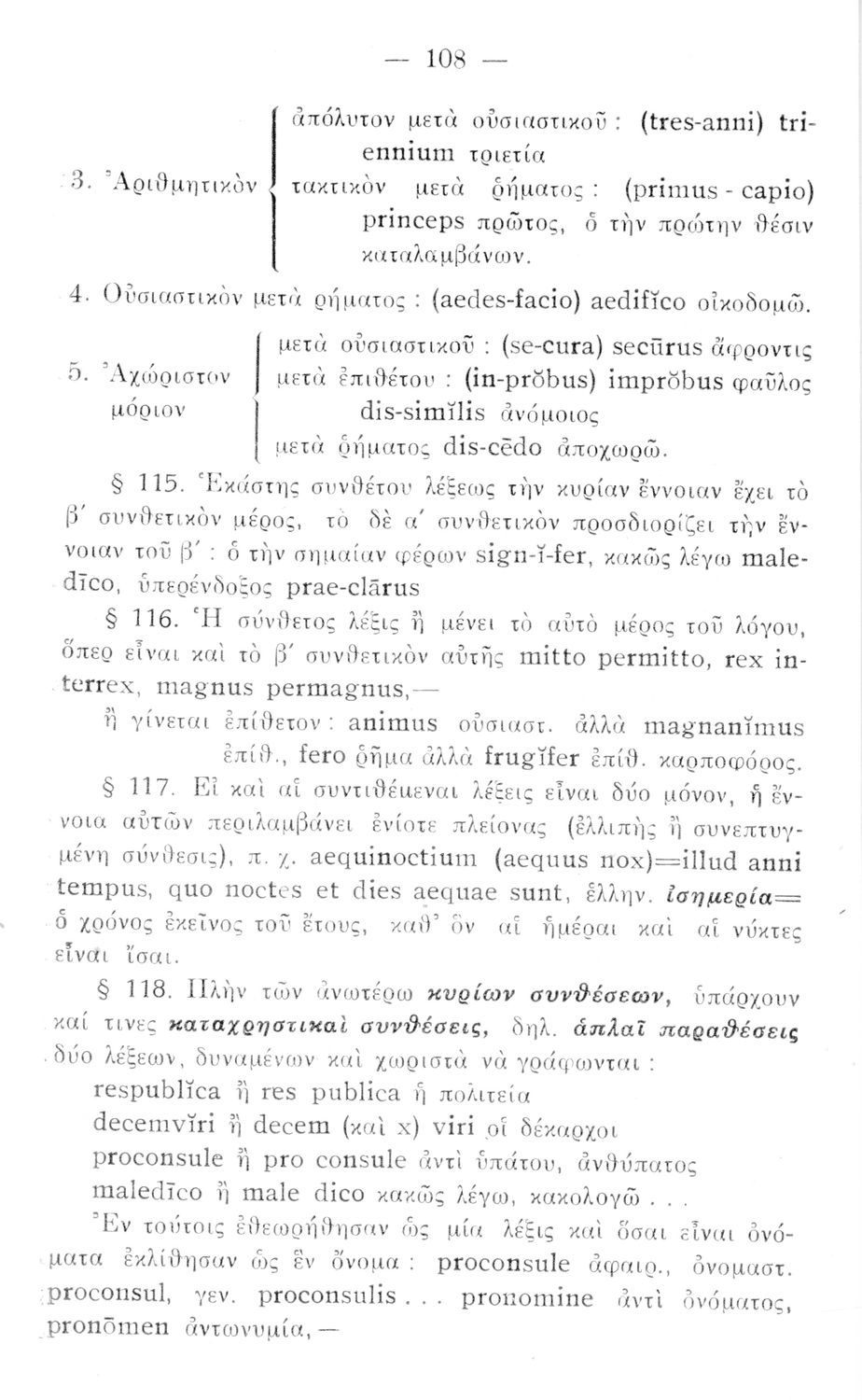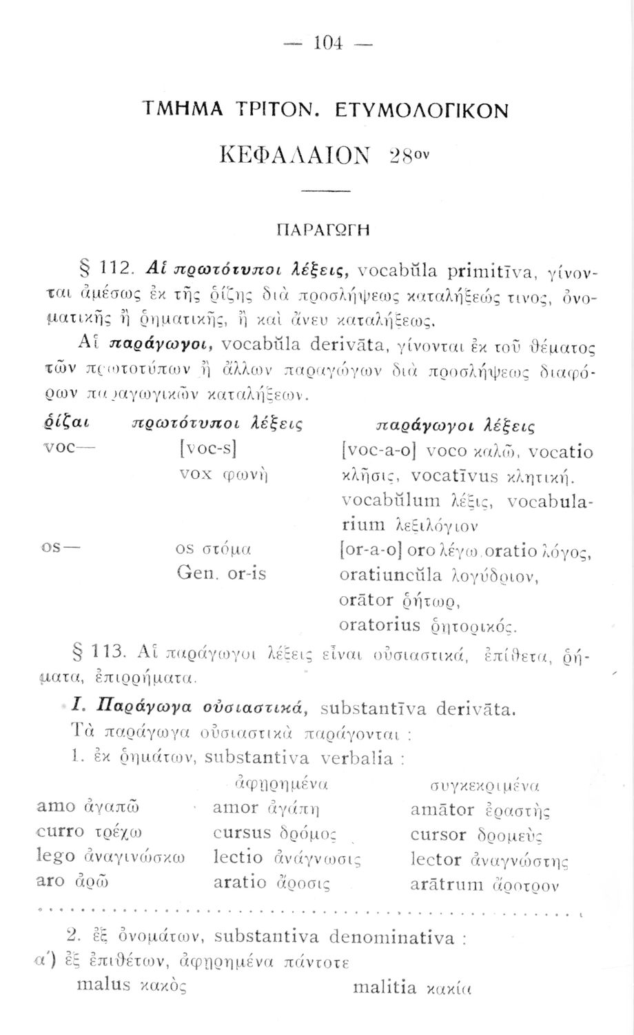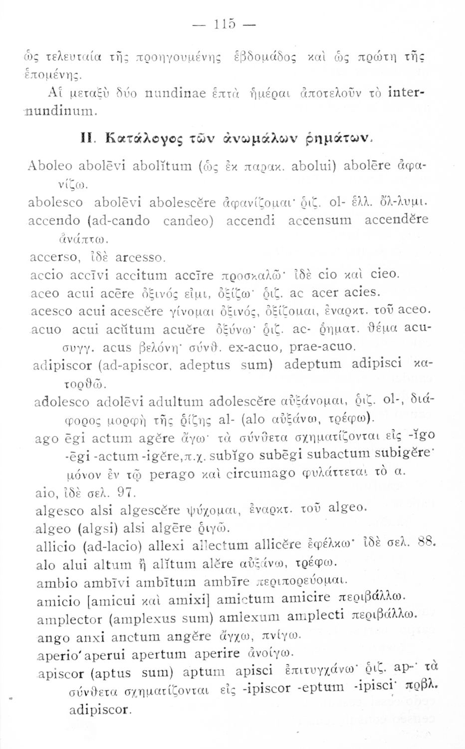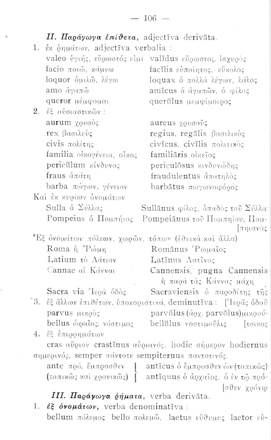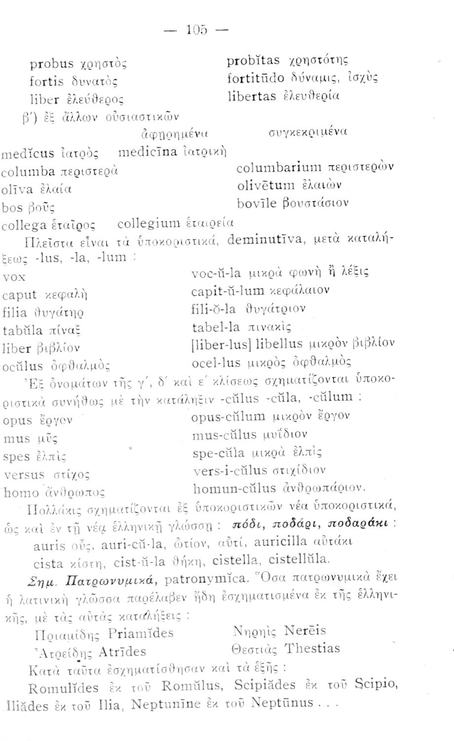 Σχολικό εγχειρίδιο Λατινικών Γυμνασίου που περιλαμβάνει γραμματική και συντακτικό και είναι χωρισμένο σε φθογγολογικό, τυπολογικό και ετυμολογικό μέρος. Περιέχει και μετρικό παράρτημα. Ο συγγραφέας ήταν καθηγητής της Λατινικής Φιλολογίας στο πανεπιστήμιο.