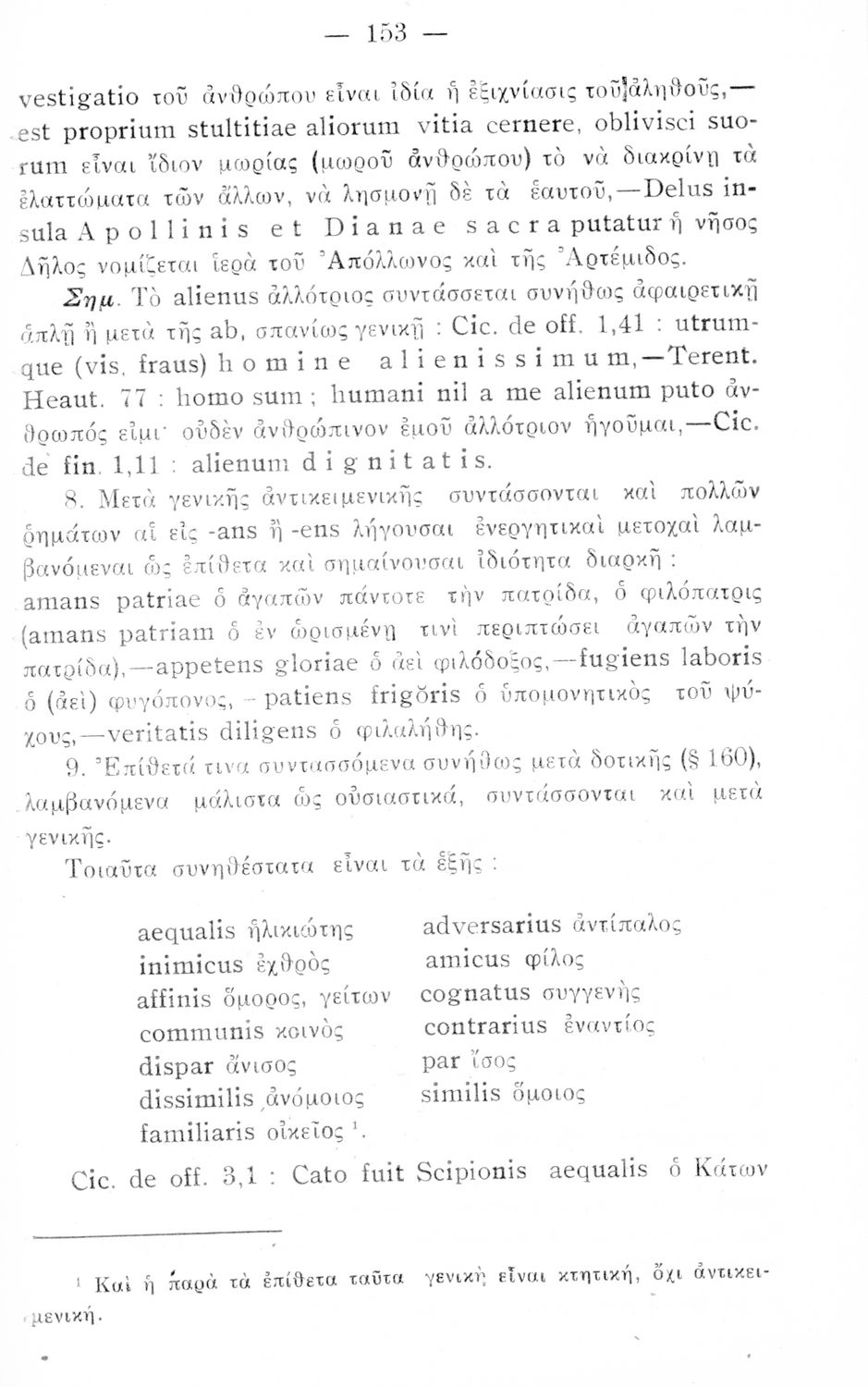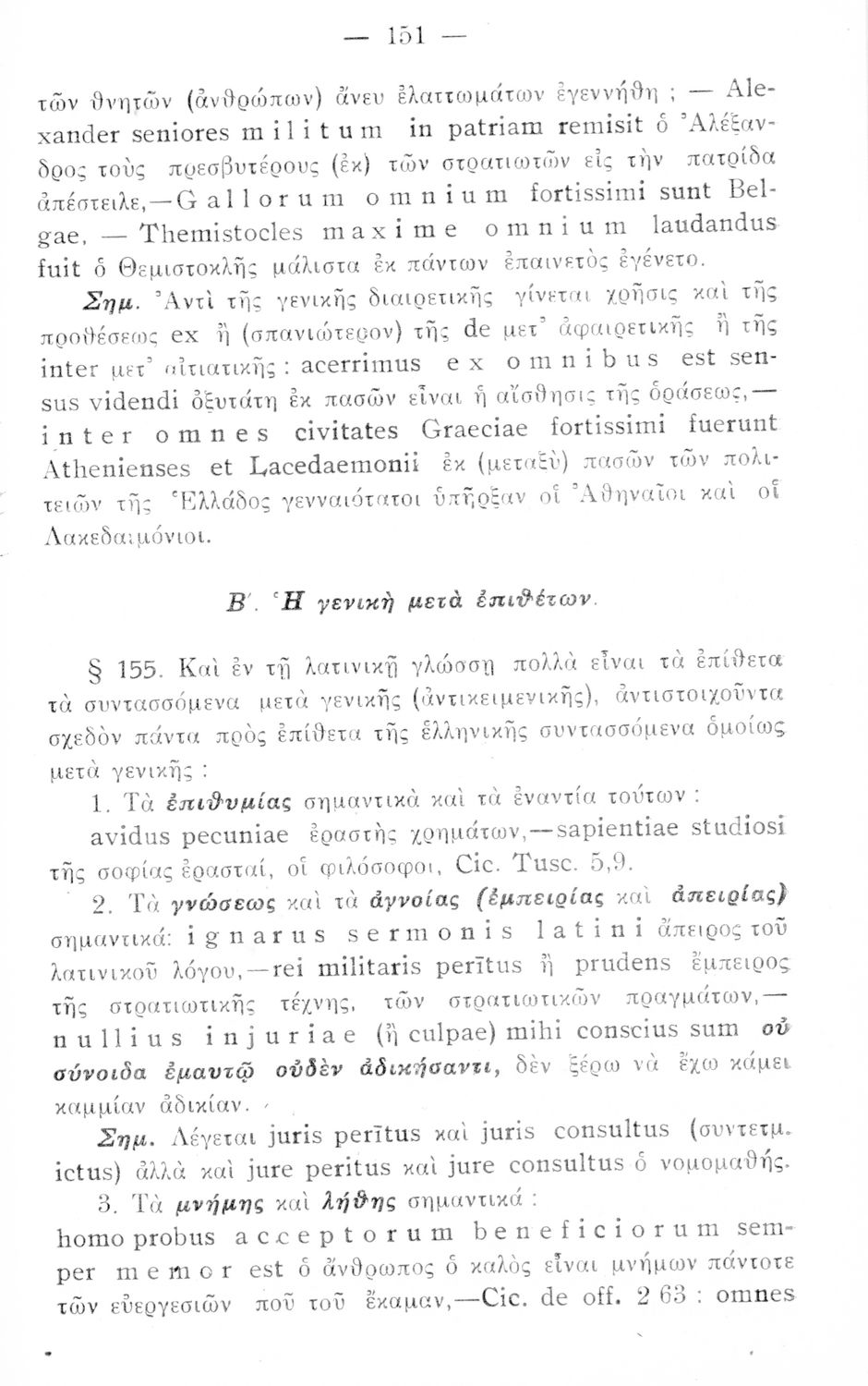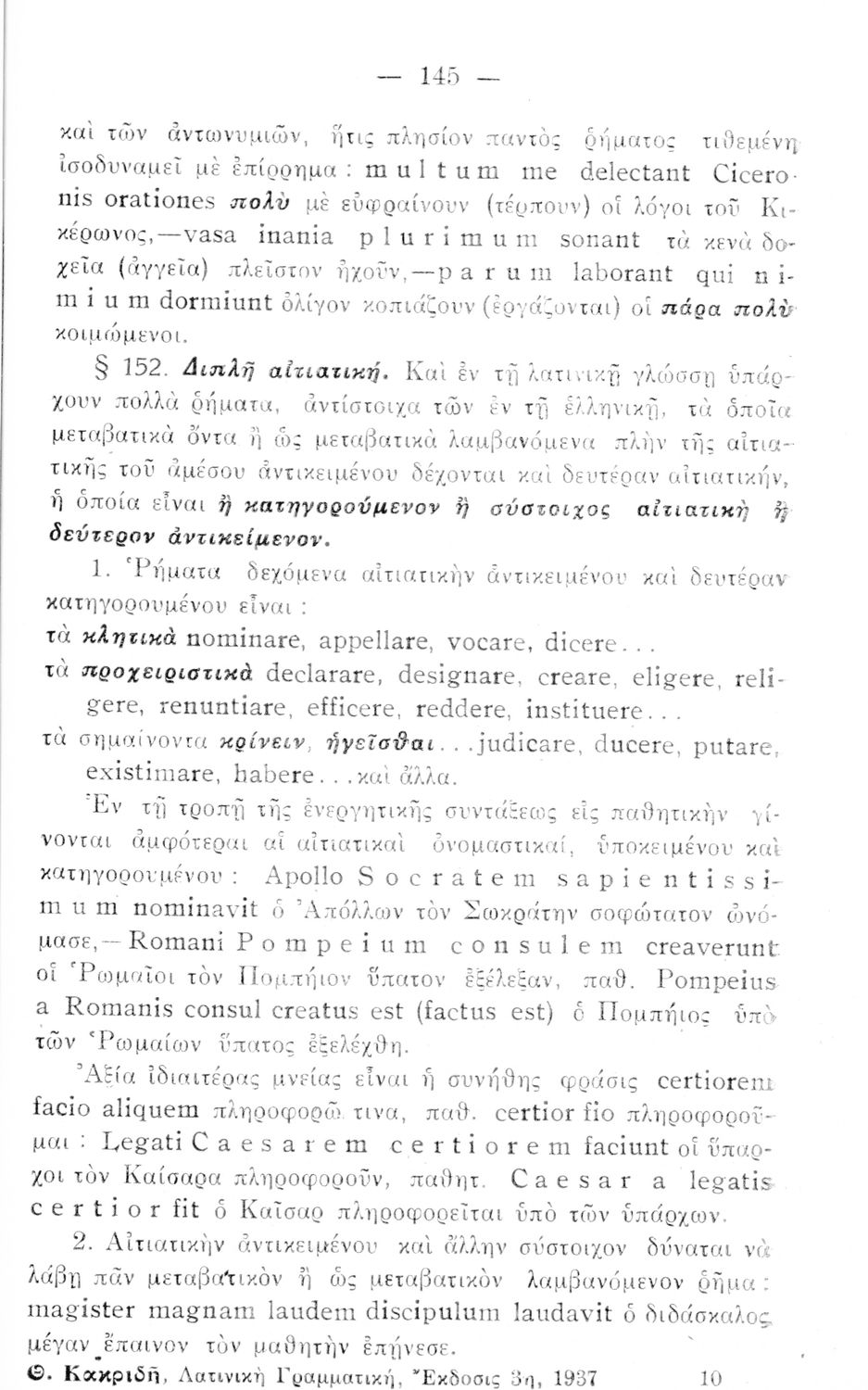 Σχολικό εγχειρίδιο Λατινικών Γυμνασίου που περιλαμβάνει γραμματική και συντακτικό και είναι χωρισμένο σε φθογγολογικό, τυπολογικό και ετυμολογικό μέρος. Περιέχει και μετρικό παράρτημα. Ο συγγραφέας ήταν καθηγητής της Λατινικής Φιλολογίας στο πανεπιστήμιο.