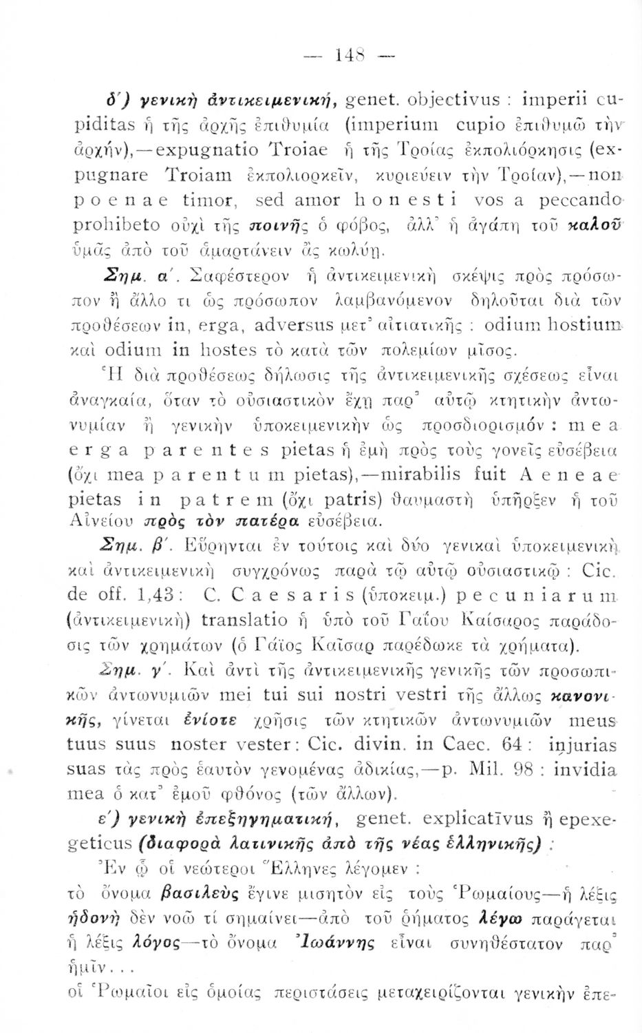 Κωδικός αναγνώρισης: 01-17888 Τίτλος: Γραμματική της λατινικής γλώσσης προς χρήσιν των Γυμνασίων Συγγραφέας: Θεοφάνης Α. Κακριδής Μέγεθος και υπόστρωμα: Σχολικό εγχειρίδιο, 19εκ., σκληρό εξώφυλλο, 255 σελίδες. |
