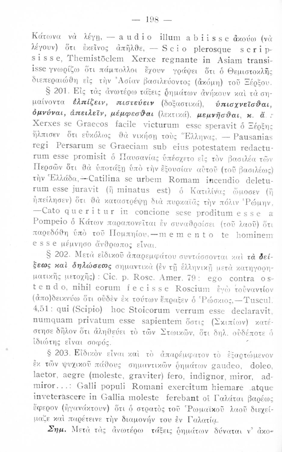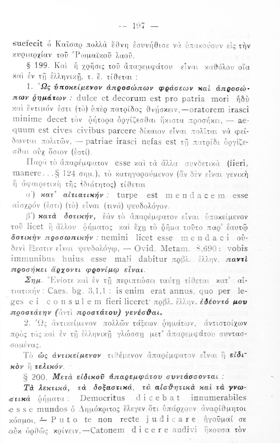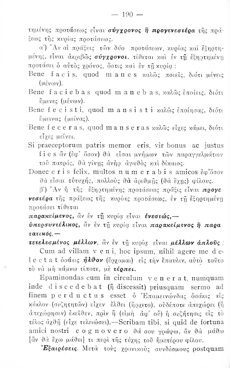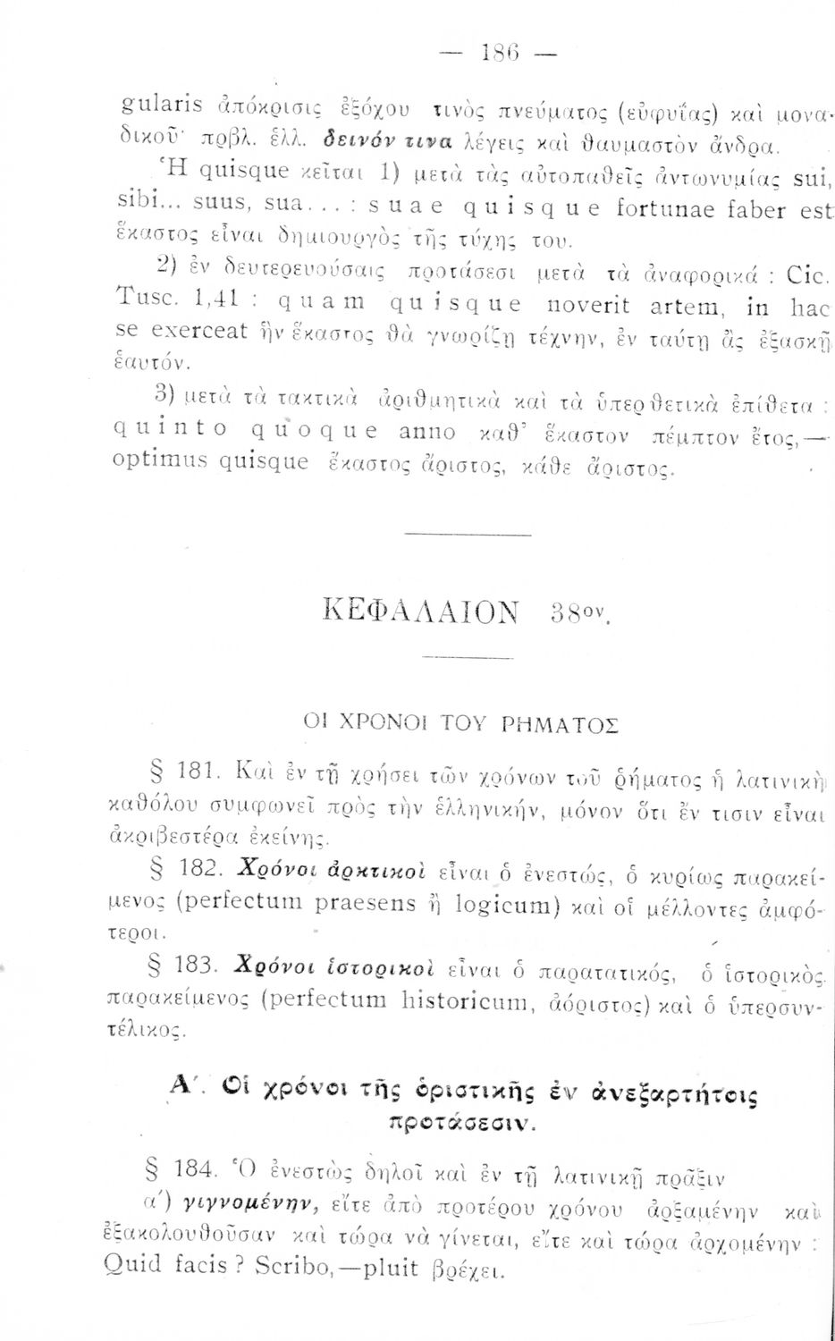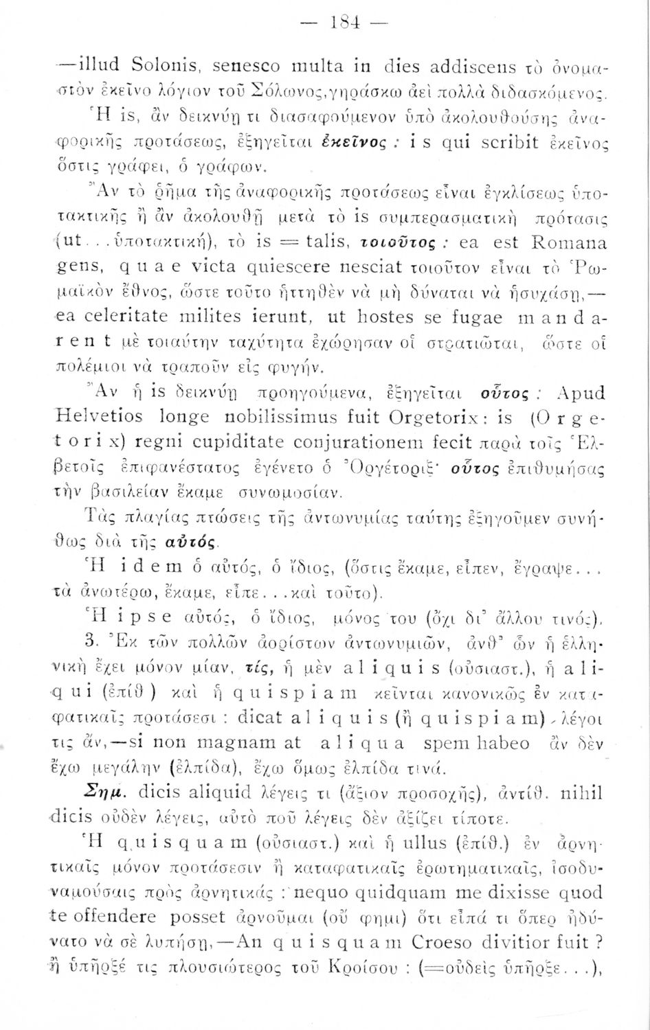 Σχολικό εγχειρίδιο Λατινικών Α΄, Β΄, Γ' Γυμνασίου που περιλαμβάνει γραμματική και συντακτικό και είναι χωρισμένο σε φθογγολογικό, τυπολογικό και ετυμολογικό μέρος.