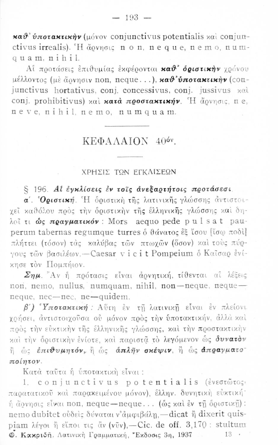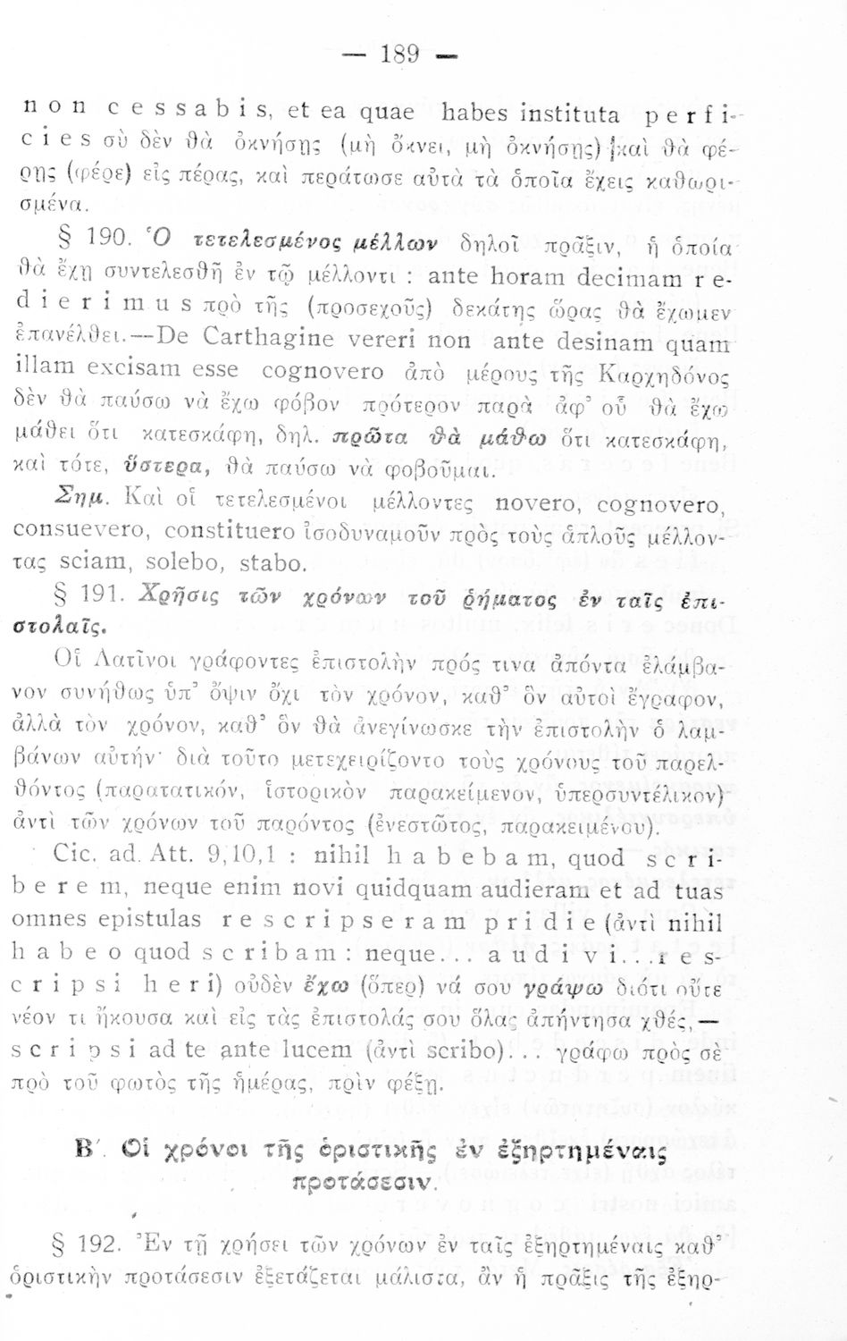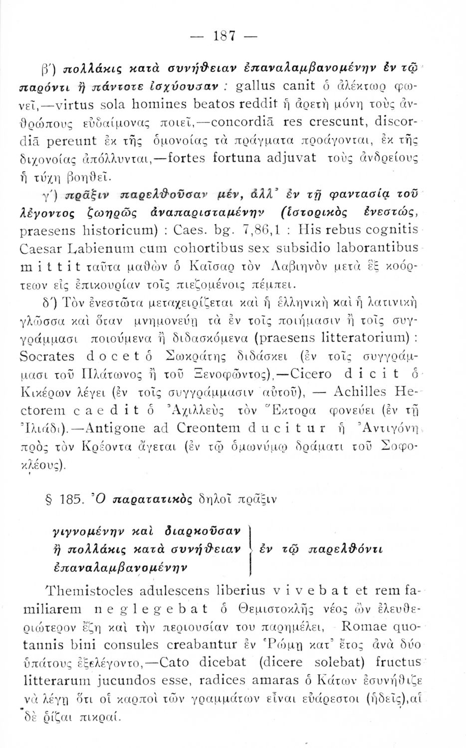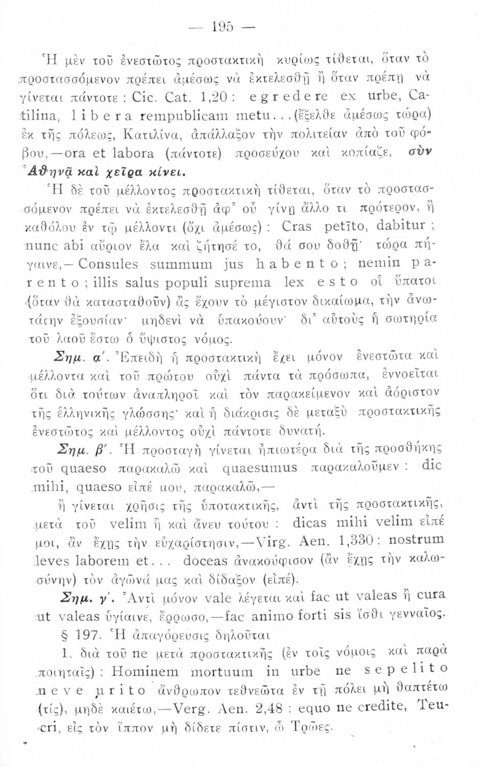 Σχολικό εγχειρίδιο Λατινικών Α΄, Β΄, Γ' Γυμνασίου που περιλαμβάνει γραμματική και συντακτικό και είναι χωρισμένο σε φθογγολογικό, τυπολογικό και ετυμολογικό μέρος.