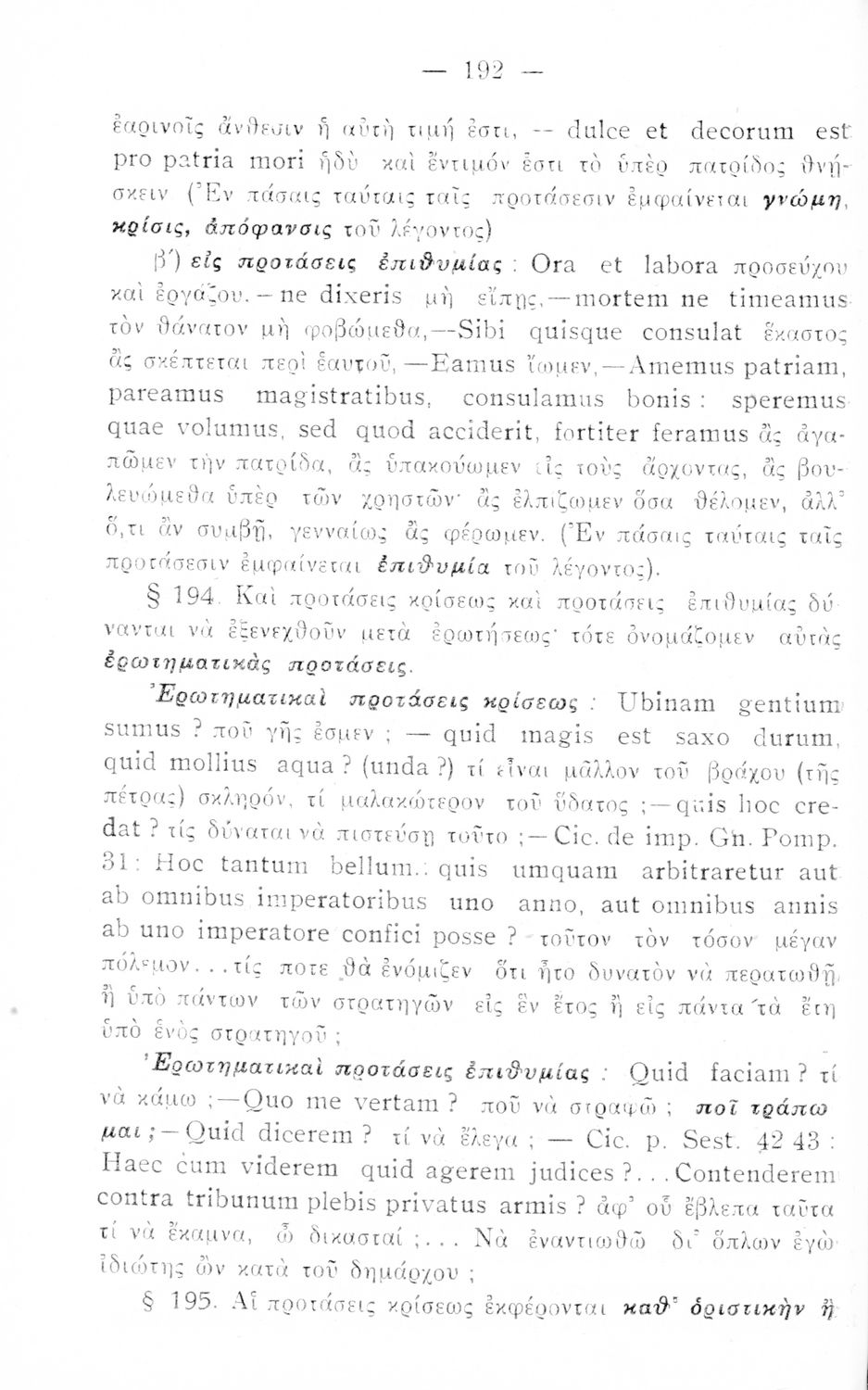 Σχολικό εγχειρίδιο Λατινικών Γυμνασίου που περιλαμβάνει γραμματική και συντακτικό και είναι χωρισμένο σε φθογγολογικό, τυπολογικό και ετυμολογικό μέρος. Ο συγγραφέας ήταν καθηγητής της Λατινικής Φιλολογίας στο