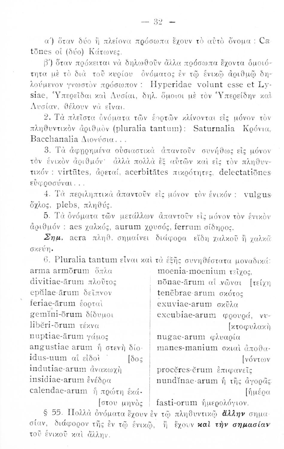 Κωδικός αναγνώρισης: 01-17888 Τίτλος: Γραμματική της λατινικής γλώσσης προς χρήσιν των Γυμνασίων Συγγραφέας: Θεοφάνης Α. Κακριδής Μέγεθος και υπόστρωμα: Σχολικό εγχειρίδιο, 19εκ., σκληρό εξώφυλλο, 255 σελίδες. |