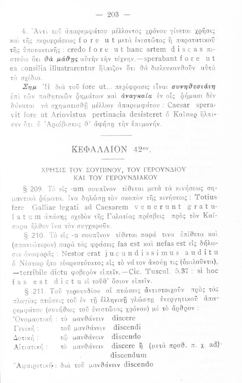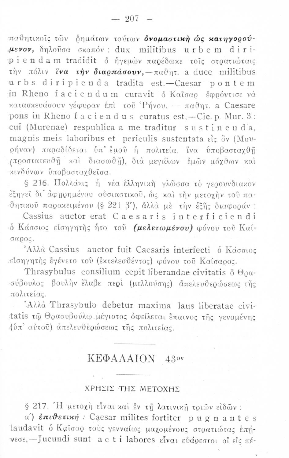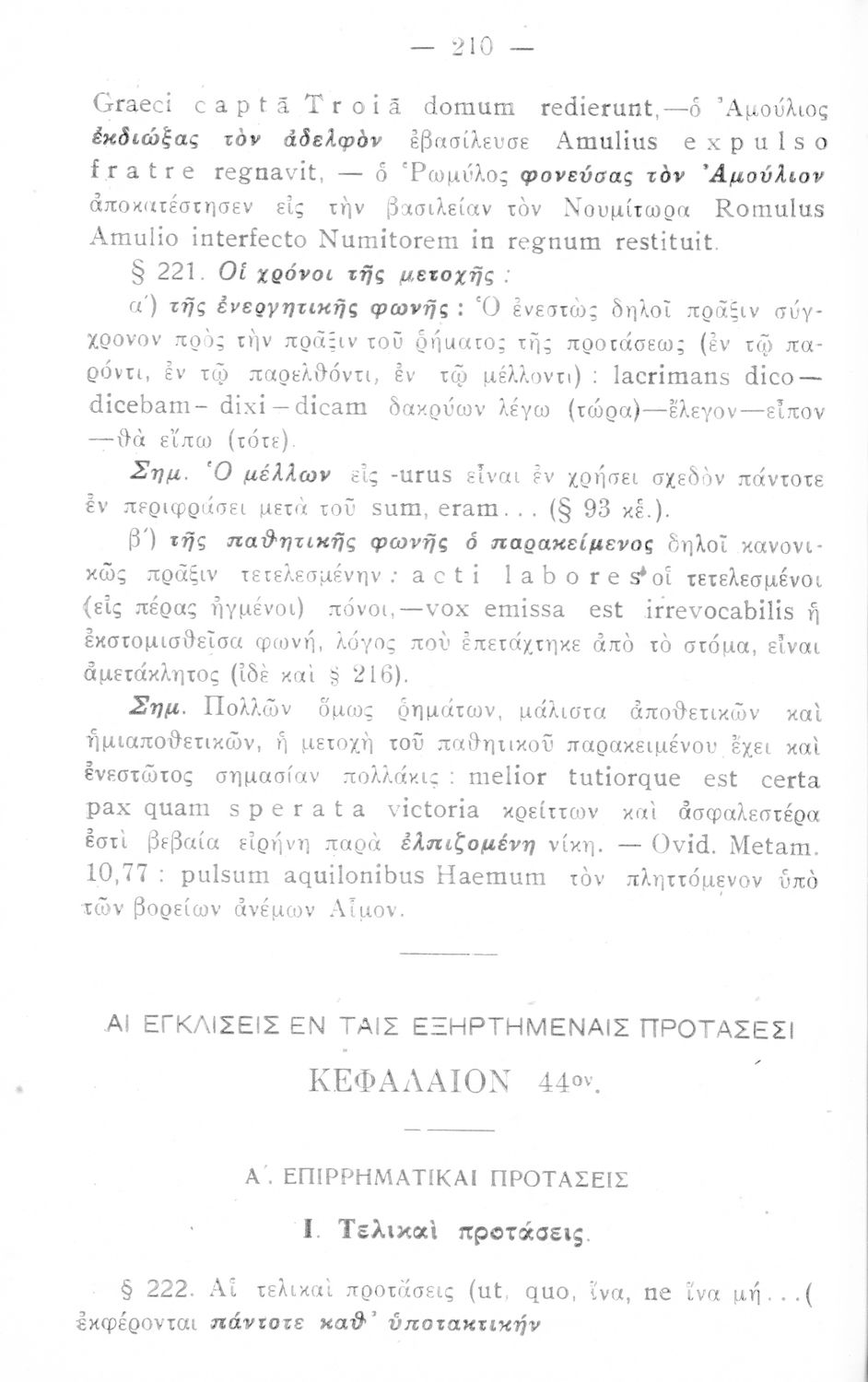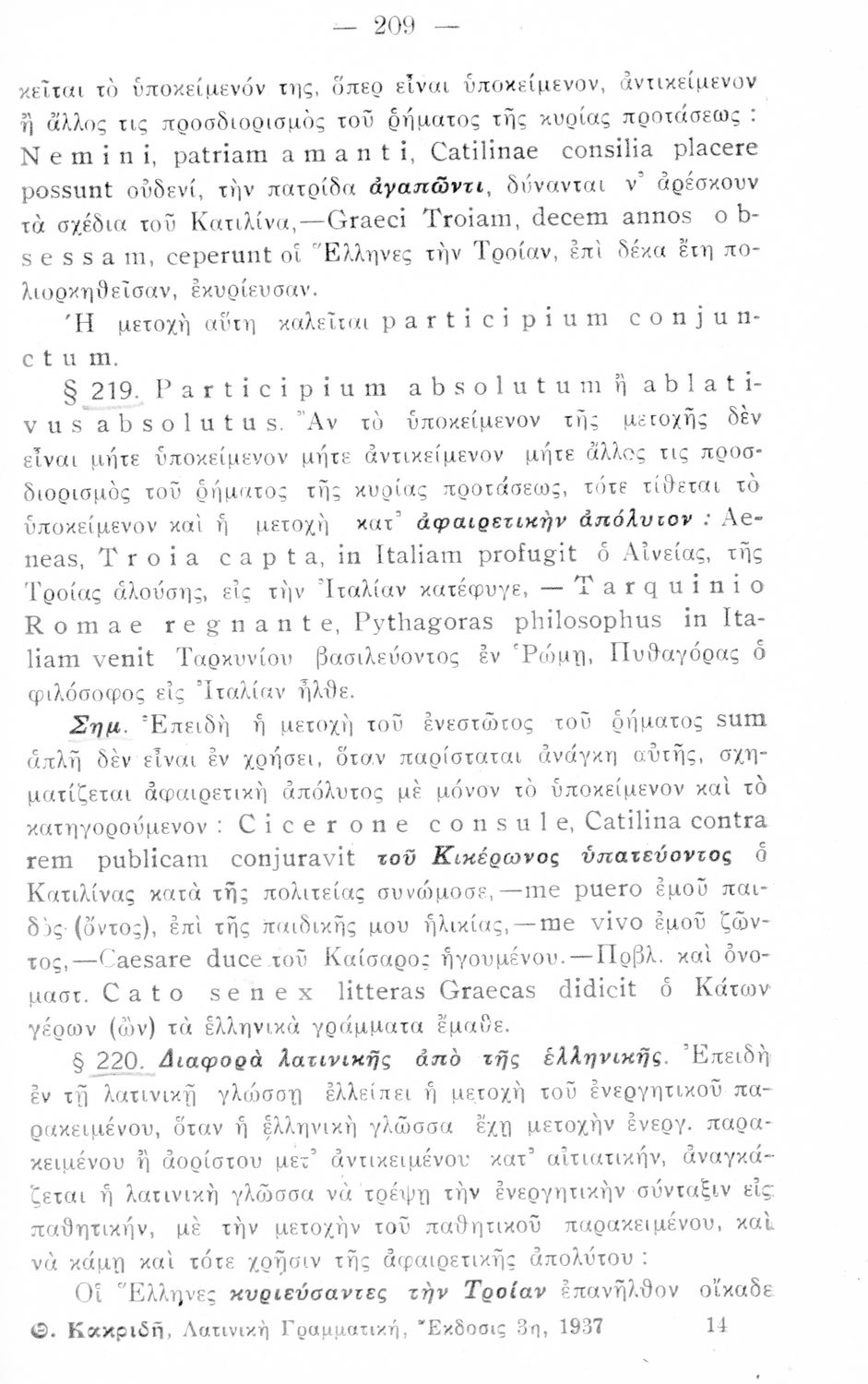 Κωδικός αναγνώρισης: 01-17888 Τίτλος: Γραμματική της λατινικής γλώσσης προς χρήσιν των Γυμνασίων Συγγραφέας: Θεοφάνης Α. Κακριδής Μέγεθος και υπόστρωμα: Σχολικό εγχειρίδιο, 19εκ., σκληρό εξώφυλλο, 255 σελίδες. |