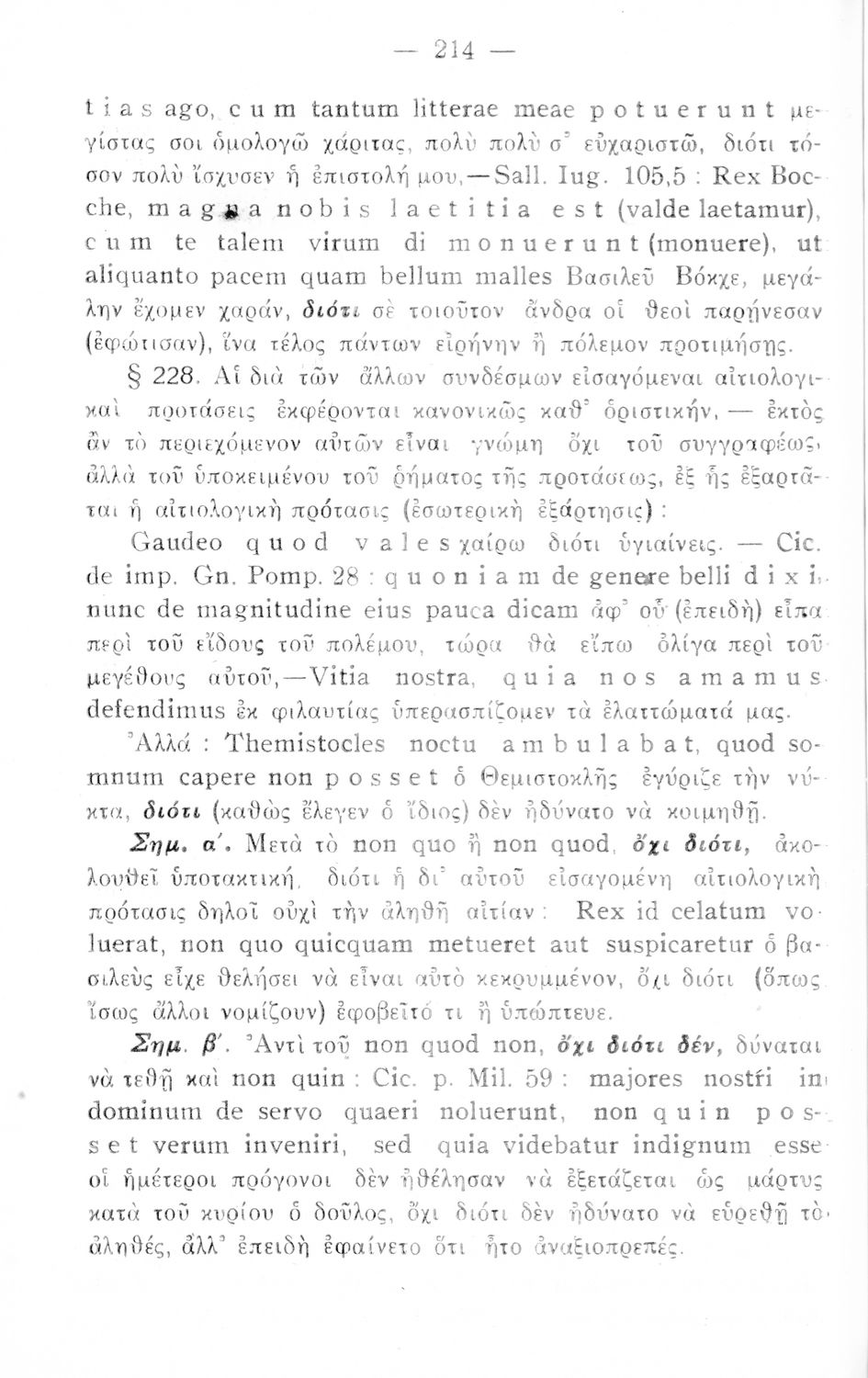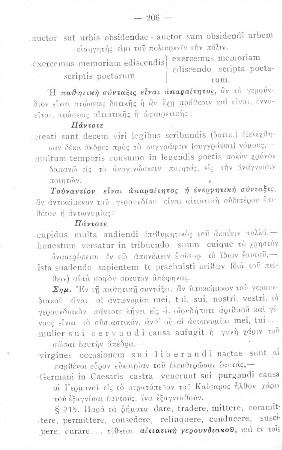Σχολικό εγχειρίδιο Λατινικών Γυμνασίου που περιλαμβάνει γραμματική και συντακτικό και είναι χωρισμένο σε φθογγολογικό, τυπολογικό και ετυμολογικό μέρος. Περιέχει και μετρικό παράρτημα. Ο συγγραφέας ήταν καθηγητής της Λατινικής Φιλολογίας στο πανεπιστήμιο.
