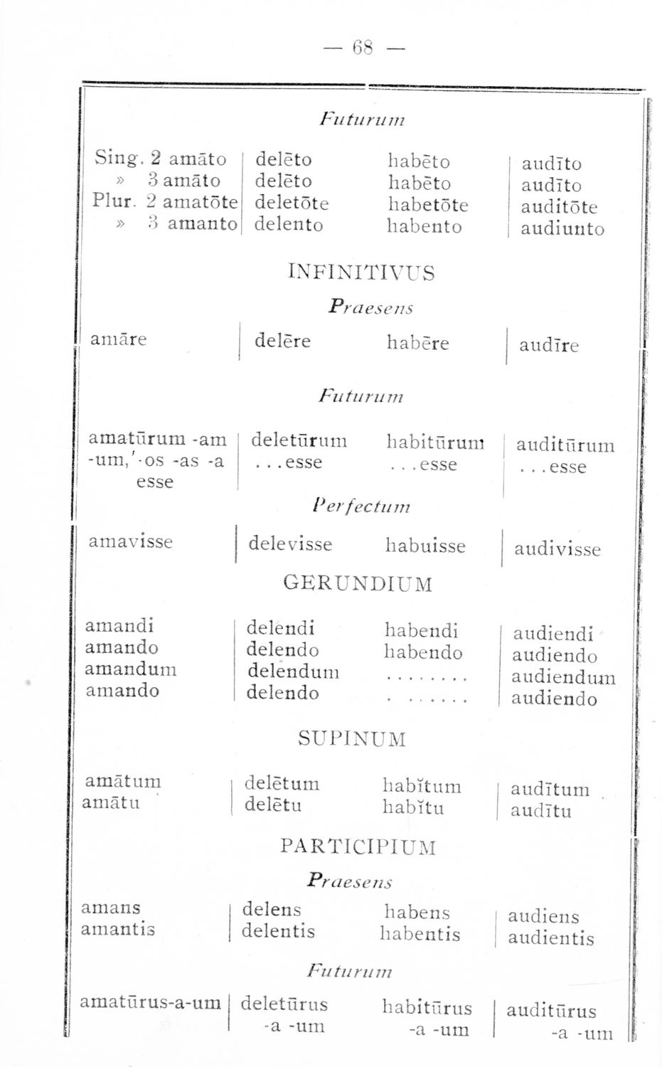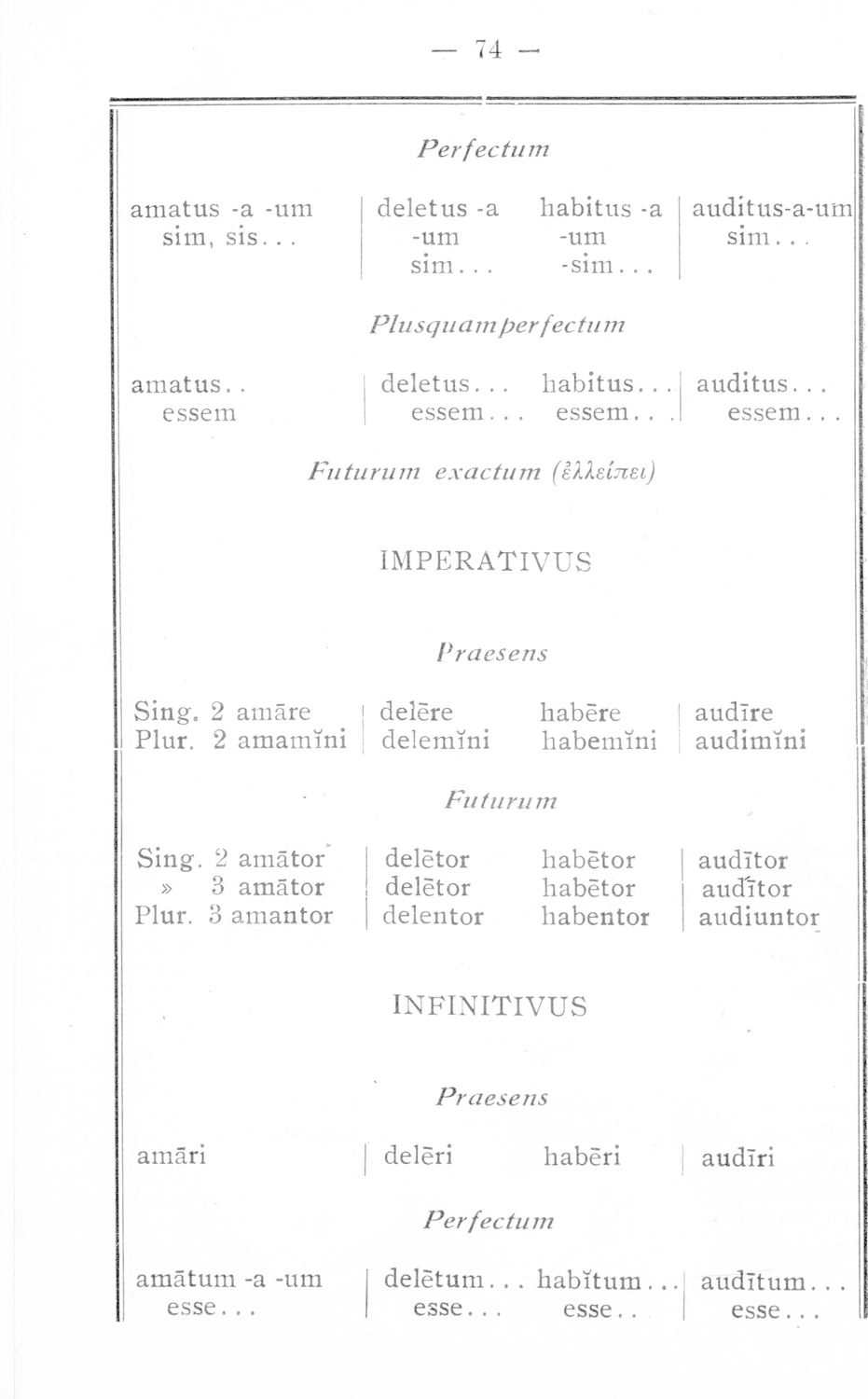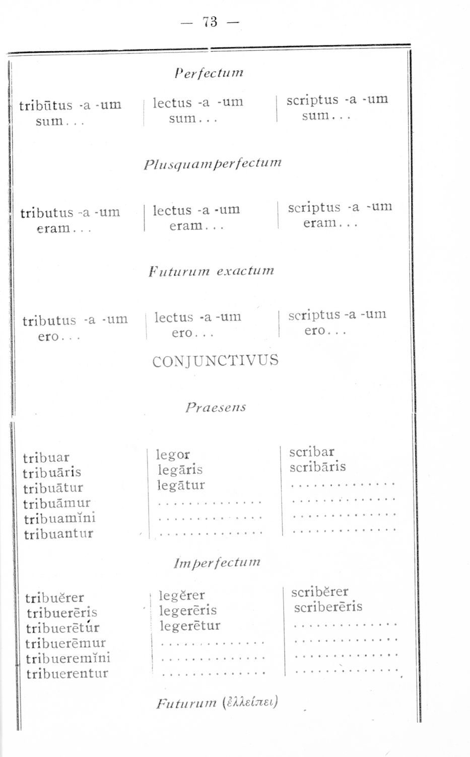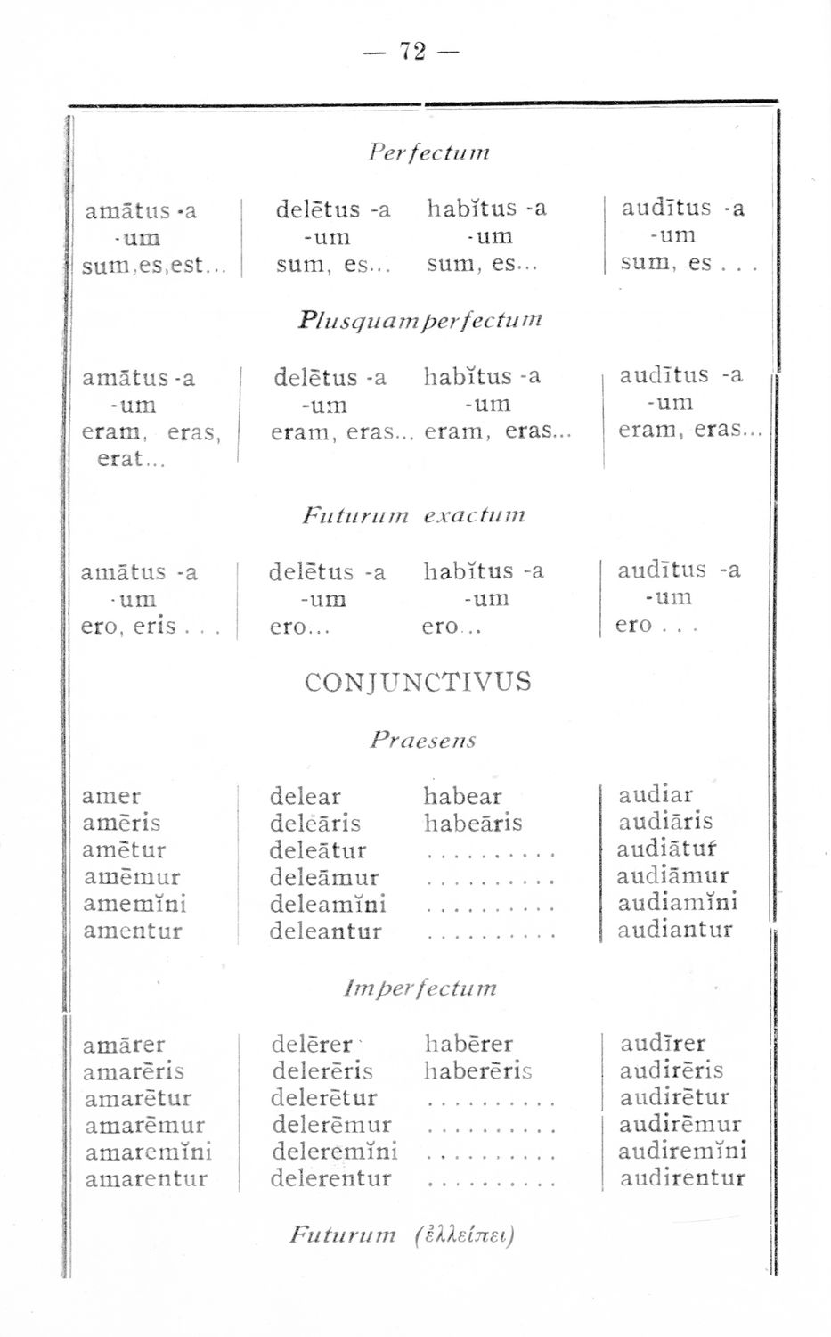 Σχολικό εγχειρίδιο Λατινικών Α΄, Β΄, Γ' Γυμνασίου που περιλαμβάνει γραμματική και συντακτικό και είναι χωρισμένο σε φθογγολογικό, τυπολογικό και ετυμολογικό μέρος.