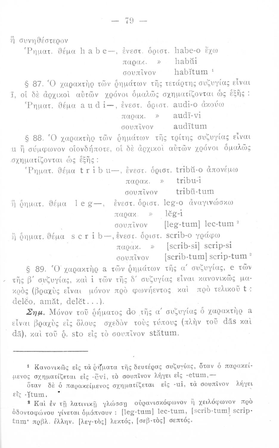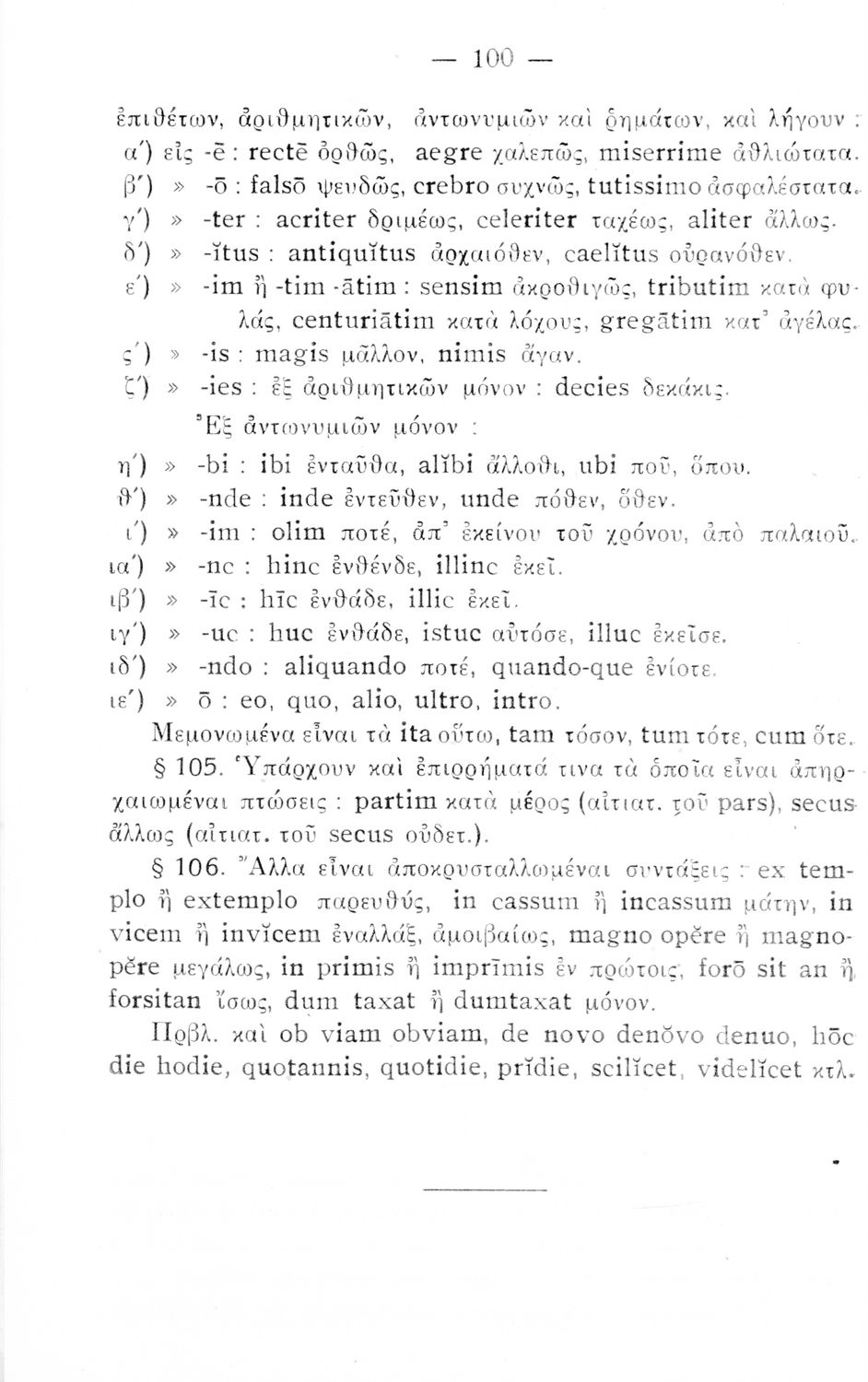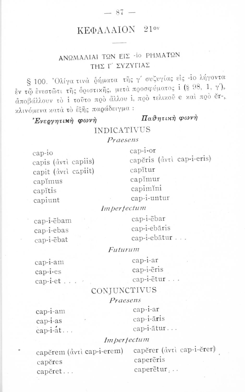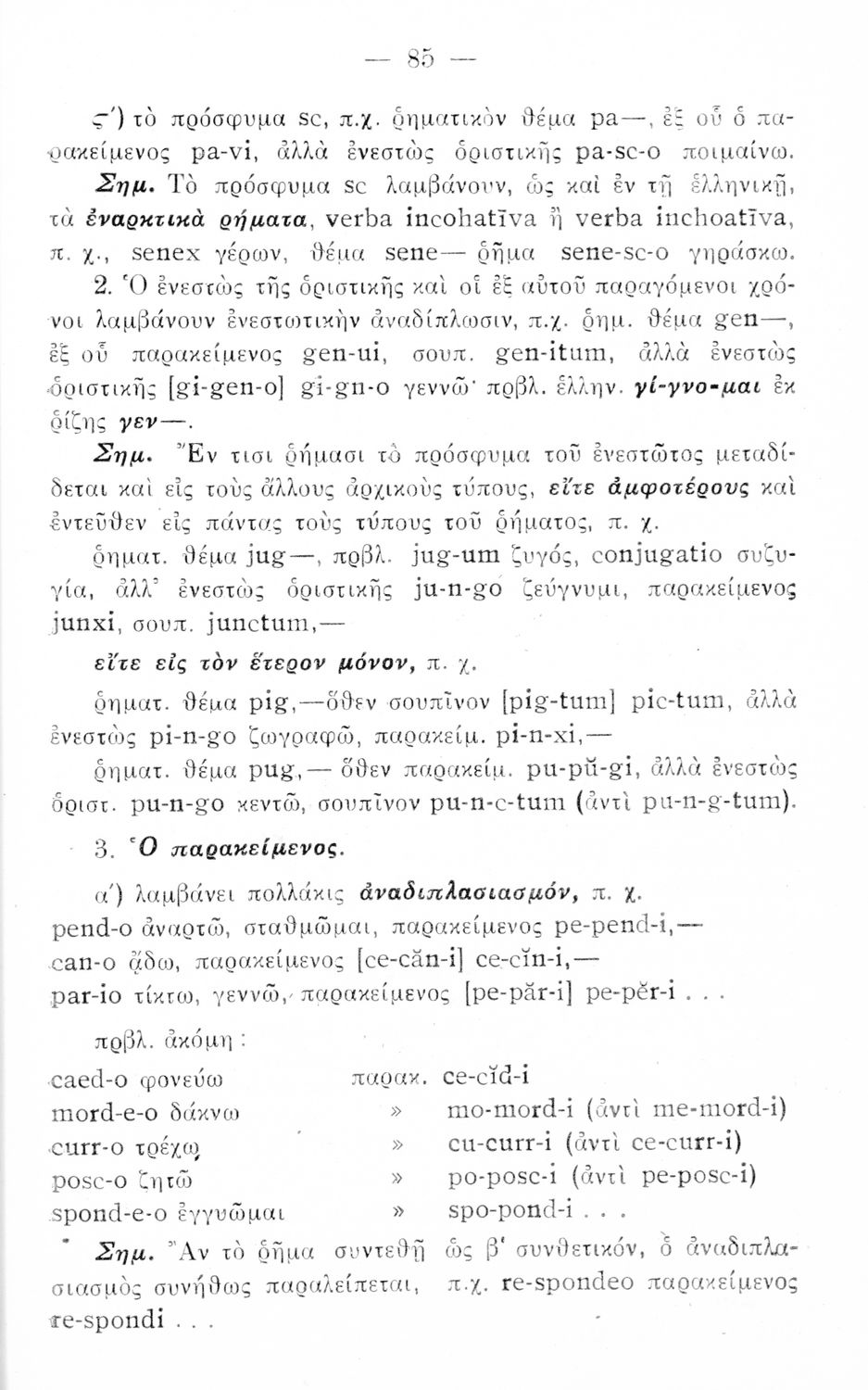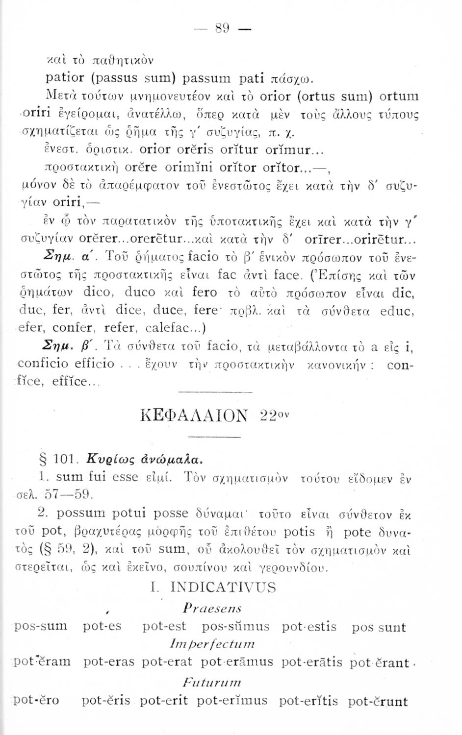 Σχολικό εγχειρίδιο Λατινικών Α΄, Β΄, Γ' Γυμνασίου που περιλαμβάνει γραμματική και συντακτικό και είναι χωρισμένο σε φθογγολογικό, τυπολογικό και ετυμολογικό μέρος.