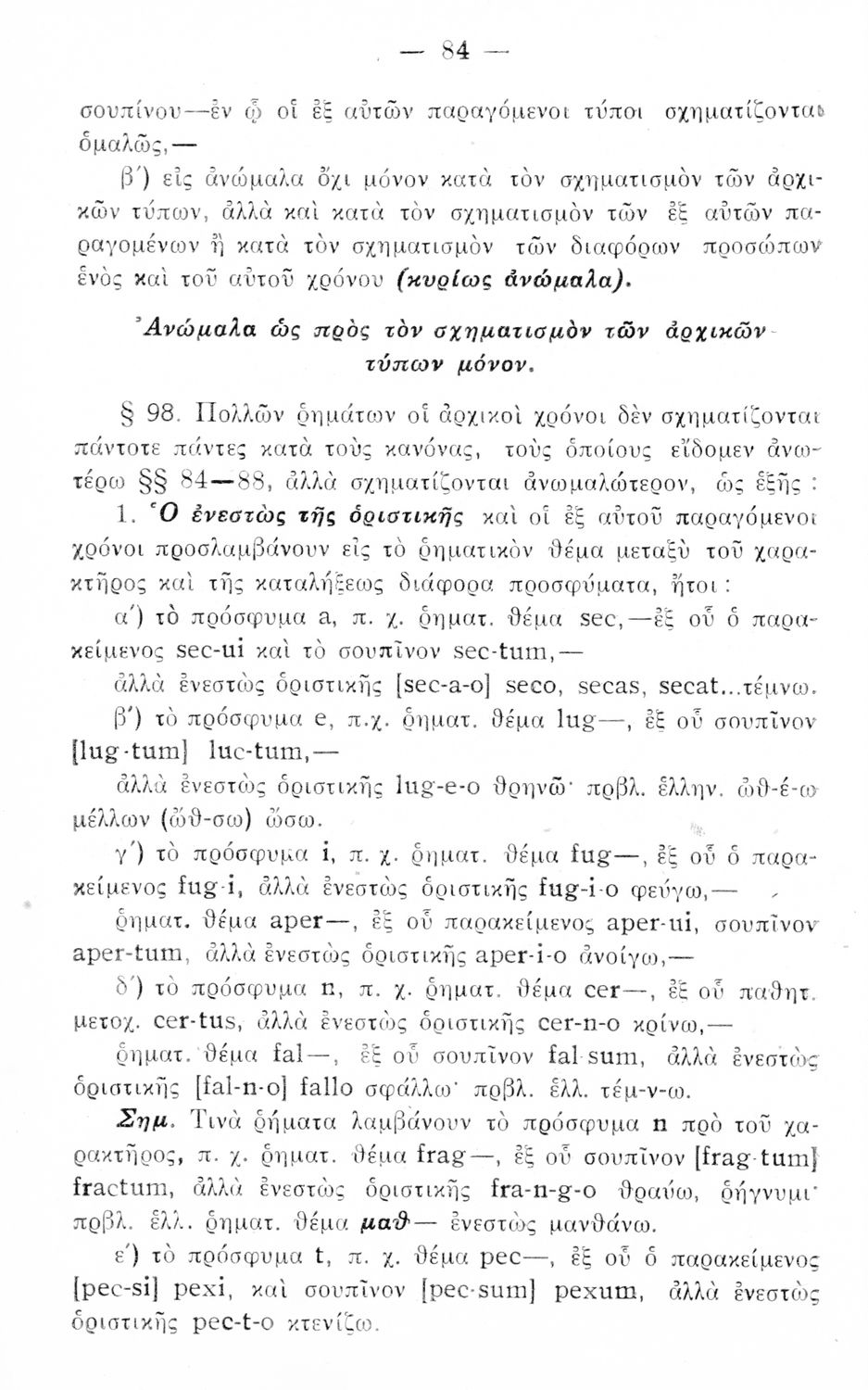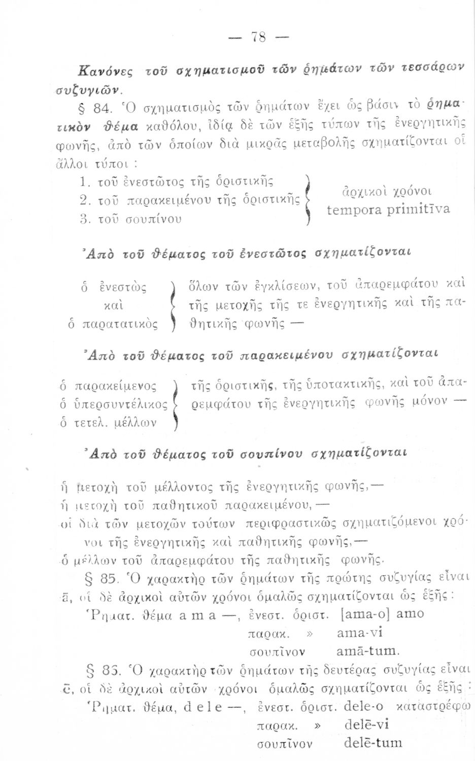 Σχολικό εγχειρίδιο Αρχαίων Ελληνικών για τα Ελληνικά Σχολεία, Παρθεναγωγεία και Γυμνάσια που περιέχει τους κανόνες γραμματικής και είναι χωρισμένο σε φθογγολογικό, τυπολογικό και ετυμολογικό μέρος.