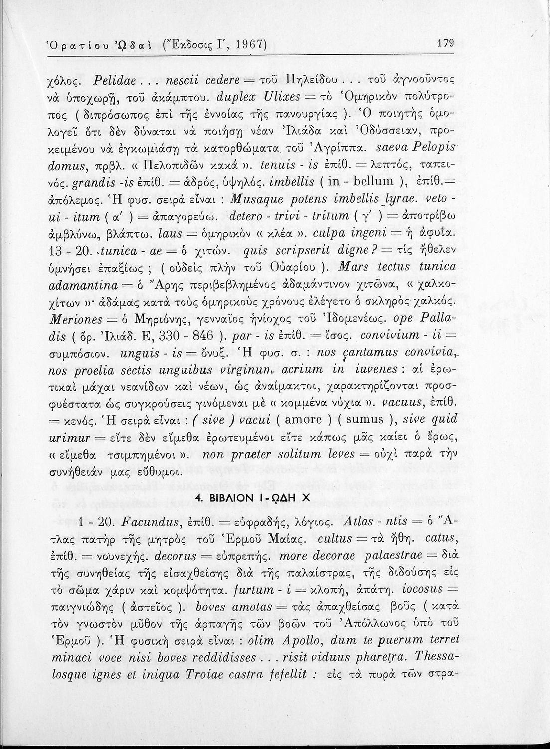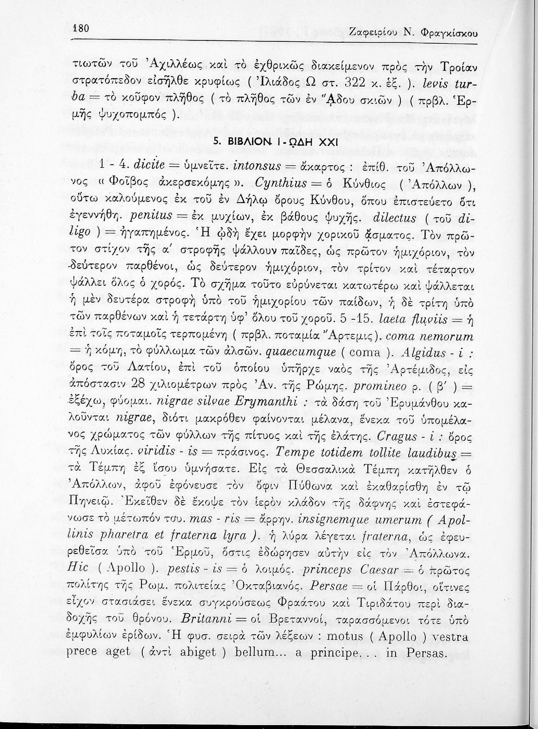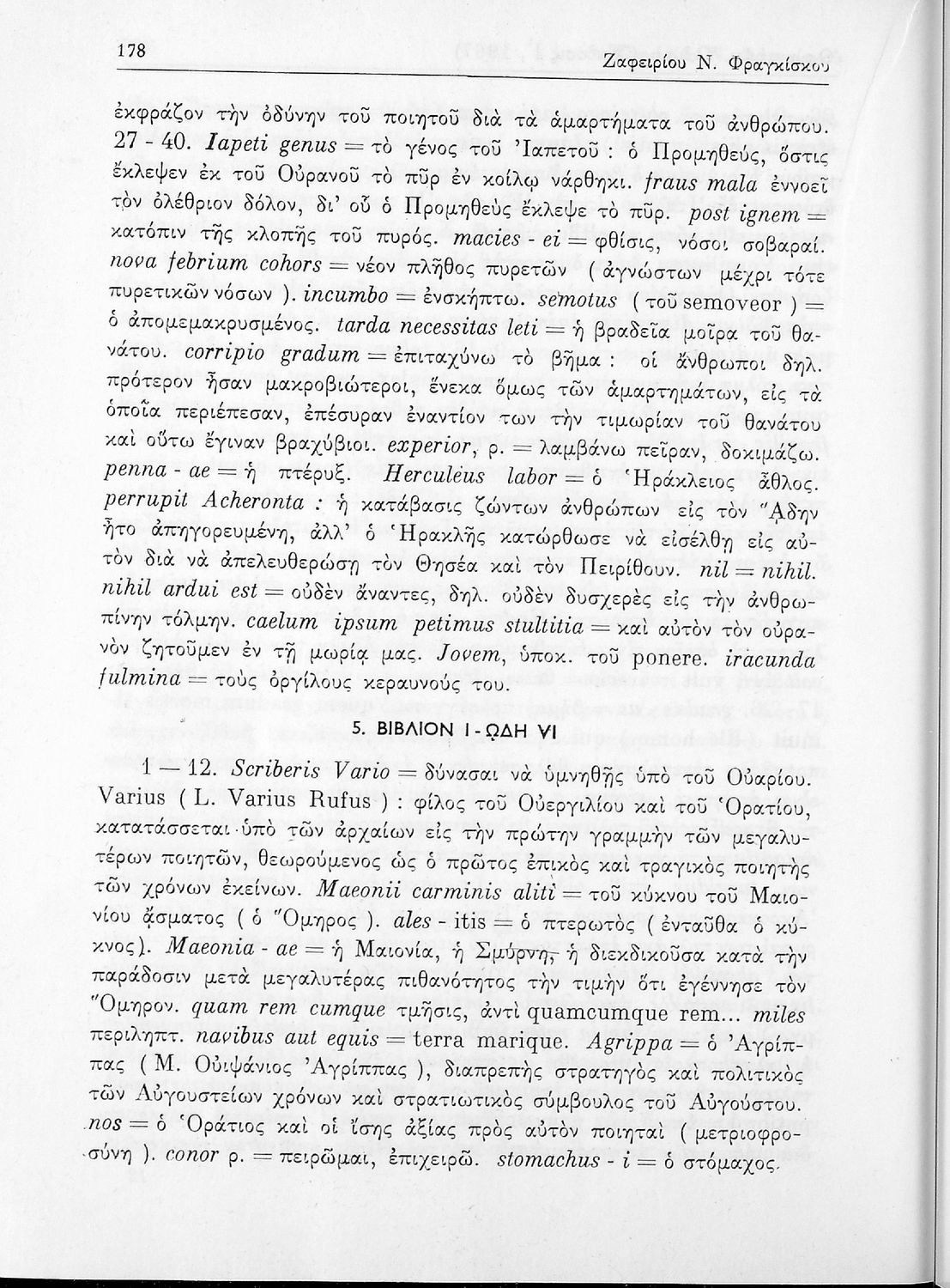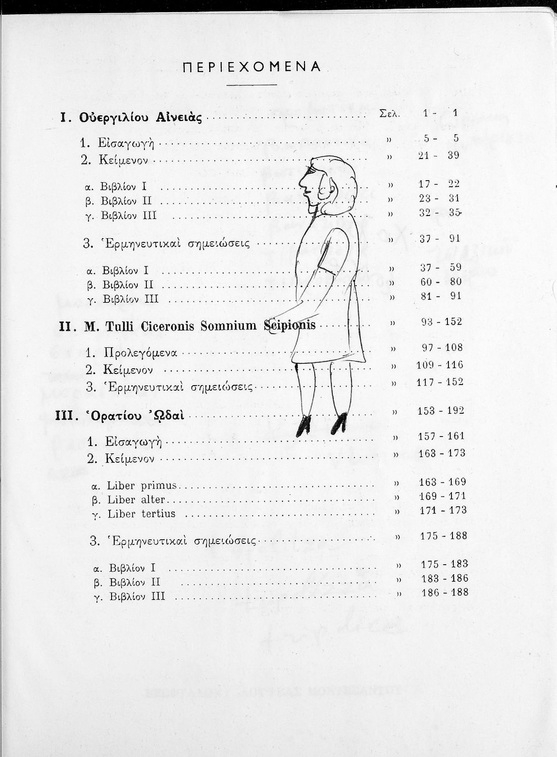 Πόπλιος Βιργίλιος Μάρων (P. Vergilius Maro), Μάρκος Τύλλιος Κικέρωνας (Marcus Tullius Ciceco), Κουίντος Οράτιος Φλάκκος (Q. Horati Flacci), Φωκίωνας Β. Βουσβούνης, Ερρίκος Σκάσσης, Ζαφείριος Ν. Φραγκίσκος (σχόλια)