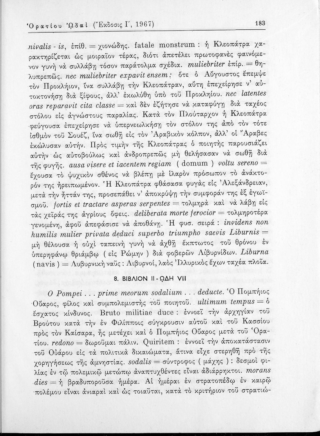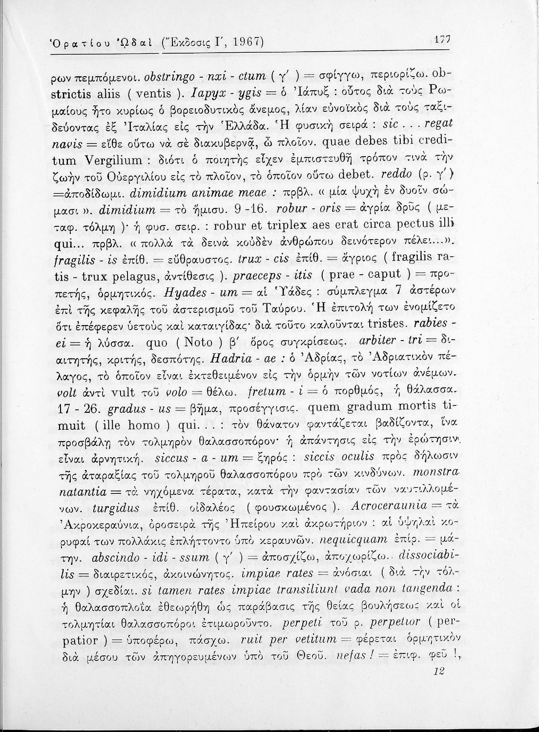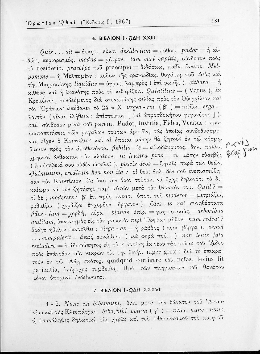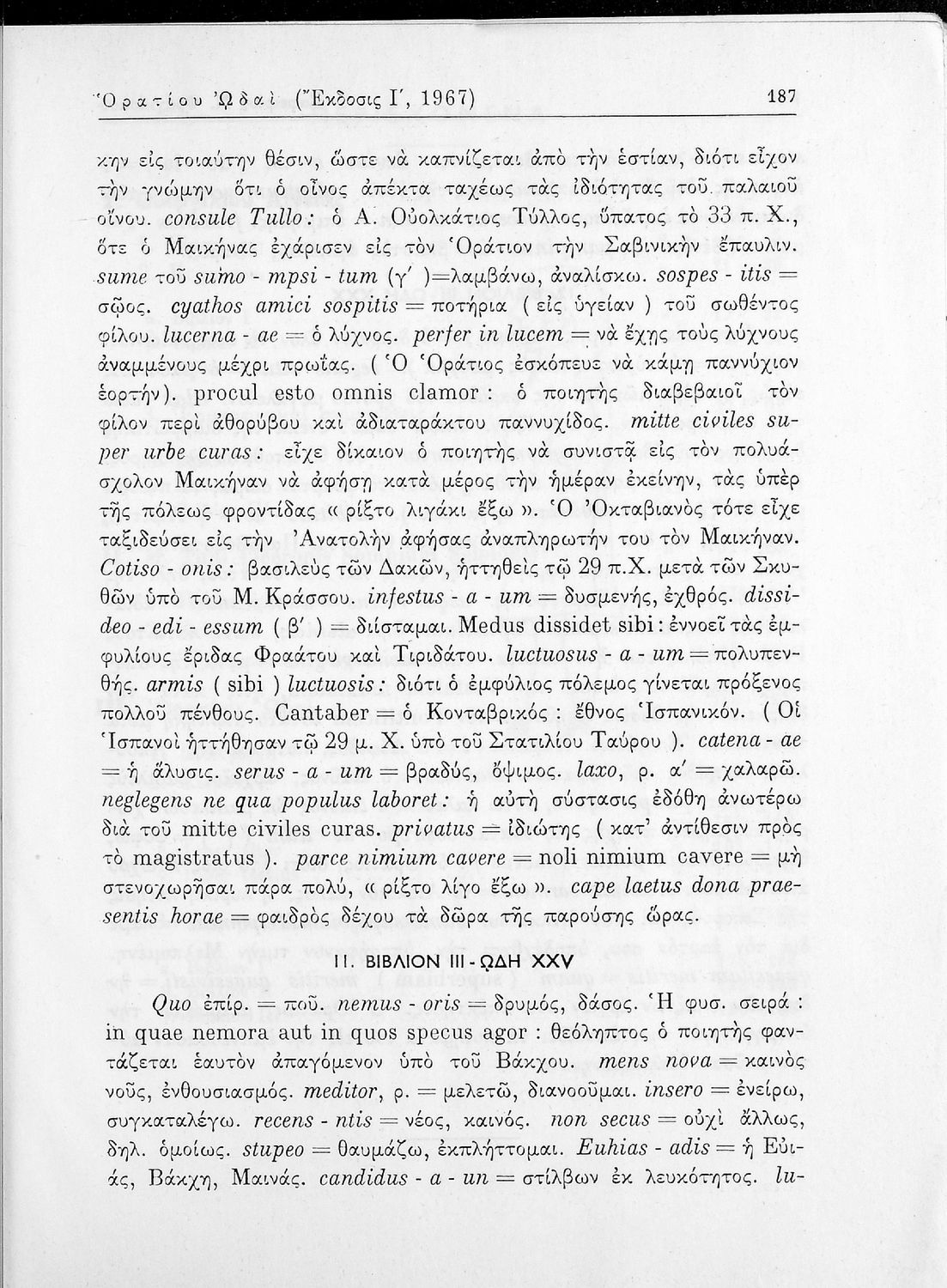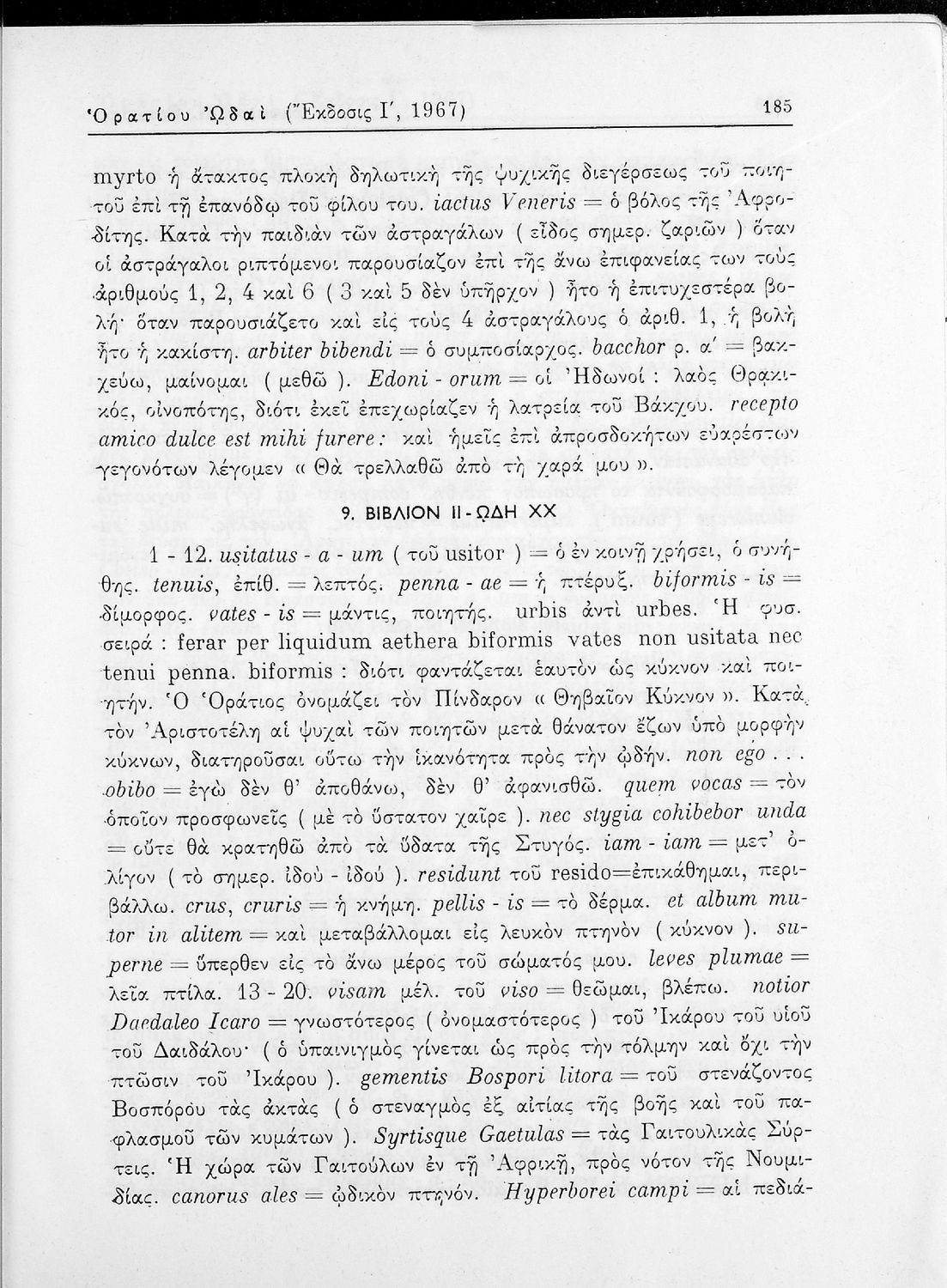 Πόπλιος Βιργίλιος Μάρων (P. Vergilius Maro), Μάρκος Τύλλιος Κικέρωνας (Marcus Tullius Ciceco), Κουίντος Οράτιος Φλάκκος (Q. Horati Flacci), Φωκίωνας Β. Βουσβούνης, Ερρίκος Σκάσσης, Ζαφείριος Ν. Φραγκίσκος (σχόλια)