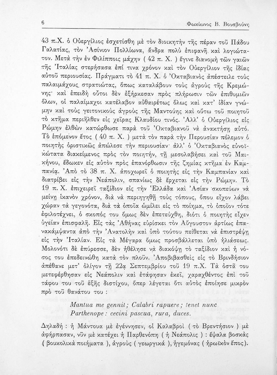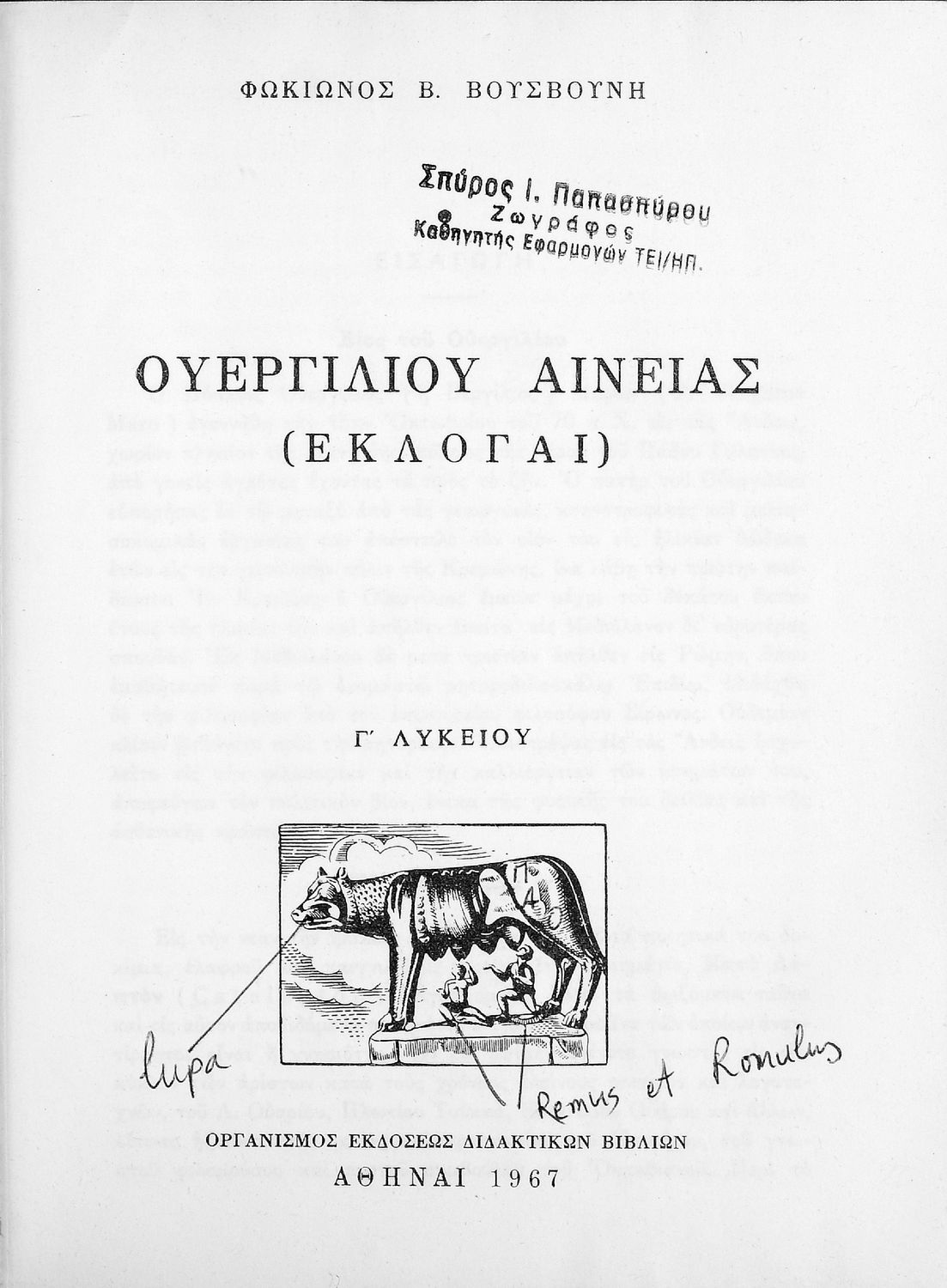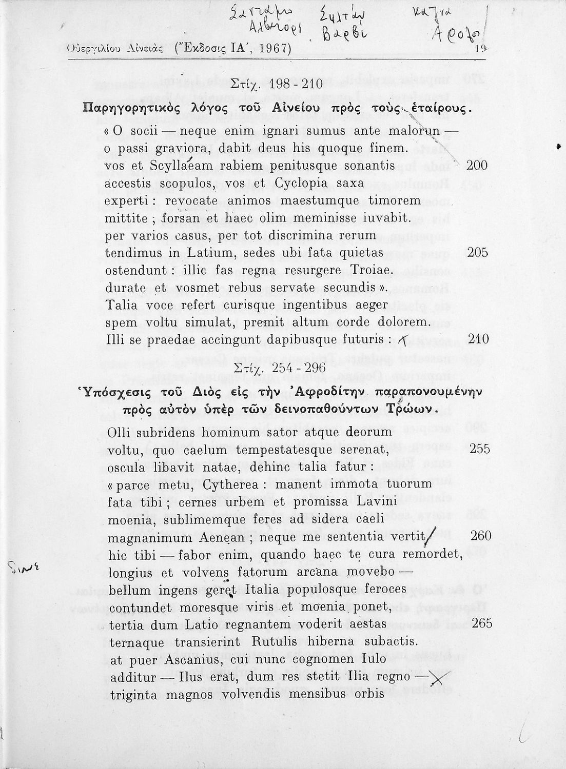 Πόπλιος Βιργίλιος Μάρων (P. Vergilius Maro), Μάρκος Τύλλιος Κικέρωνας (Marcus Tullius Ciceco), Κουίντος Οράτιος Φλάκκος (Q. Horati Flacci), Φωκίωνας Β. Βουσβούνης, Ερρίκος Σκάσσης, Ζαφείριος Ν. Φραγκίσκος (σχόλια)