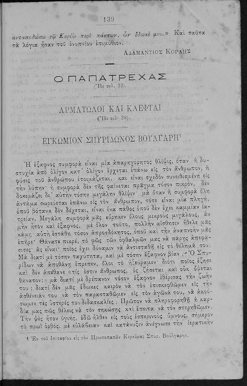Σχολικό εγχειρίδιο Αρχαίων Ελληνικών για τα Ιερατικά Σχολεία. Ο τόμος περιέχει : «Ισοκράτους, το εις Ευαγόρα εγκώμιον, και τον Πανηγυρικόν- Πλουτάρχου, εκ των Παραλλήλων βίων τινάς- Ηροδότου, εκ των Ιστοριών ...