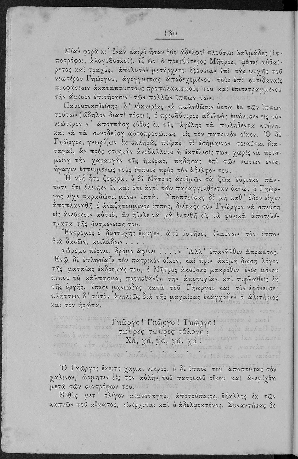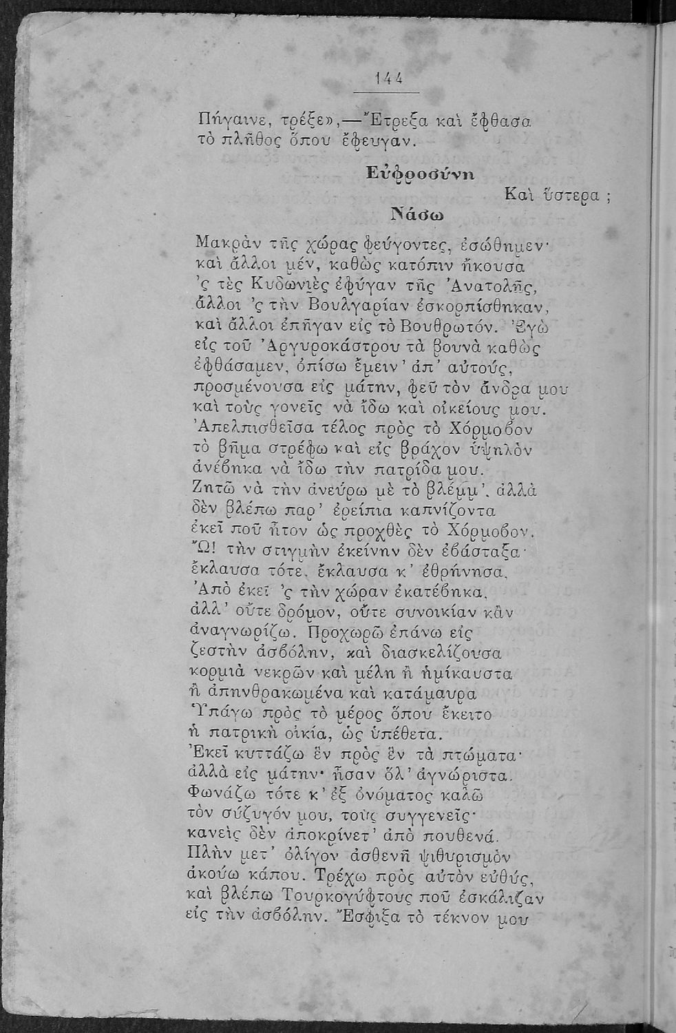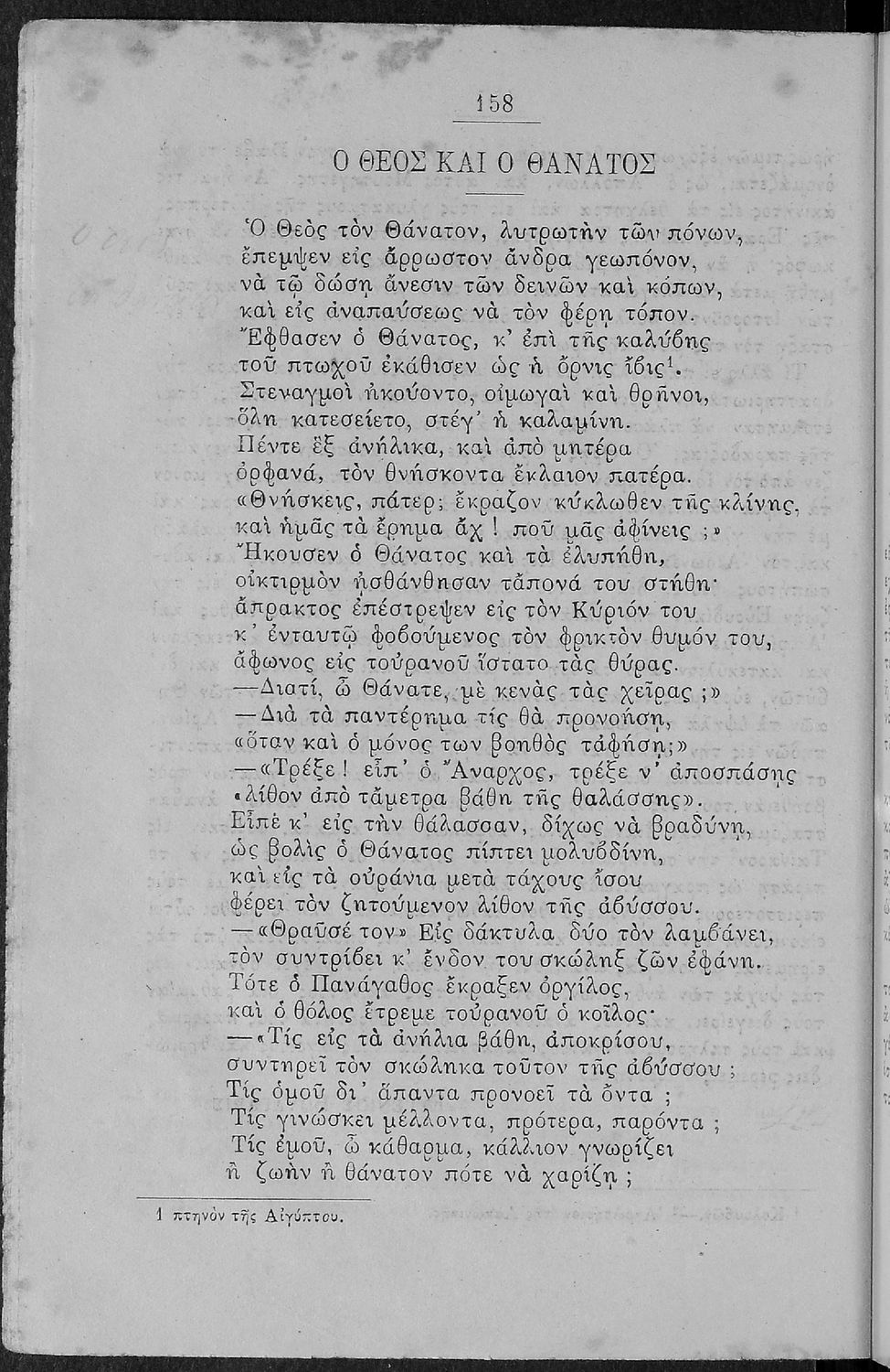 Σχολικό εγχειρίδιο Νέων Ελληνικών του 1889. Περιέχει πεζά και ποιήματα Ελλήνων λογοτεχνών εμπνευσμένα από την καθημερινή και ιστορική ζωή του τόπου. Έχει την έγκριση του Υπουργείου Δημόσιας Εκπαίδευσης.