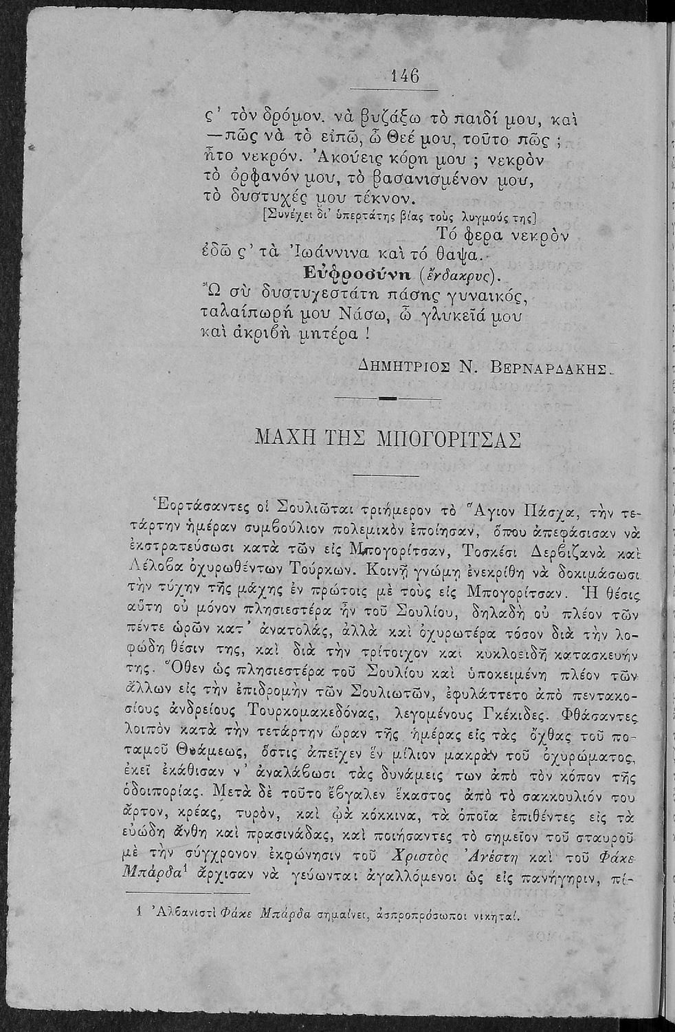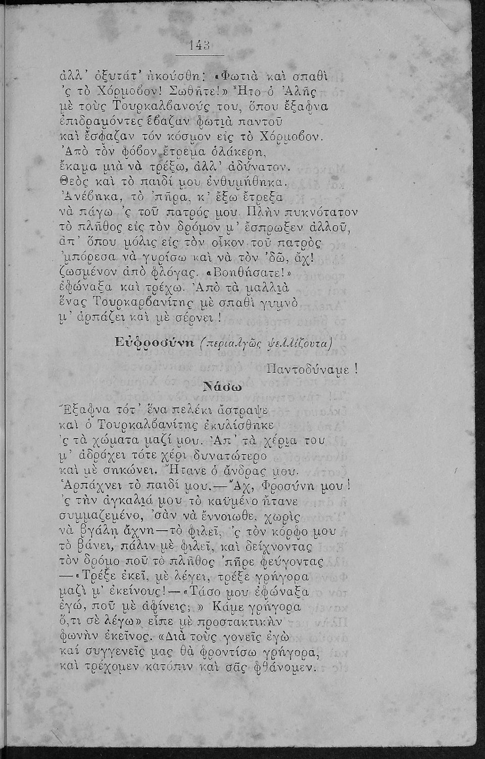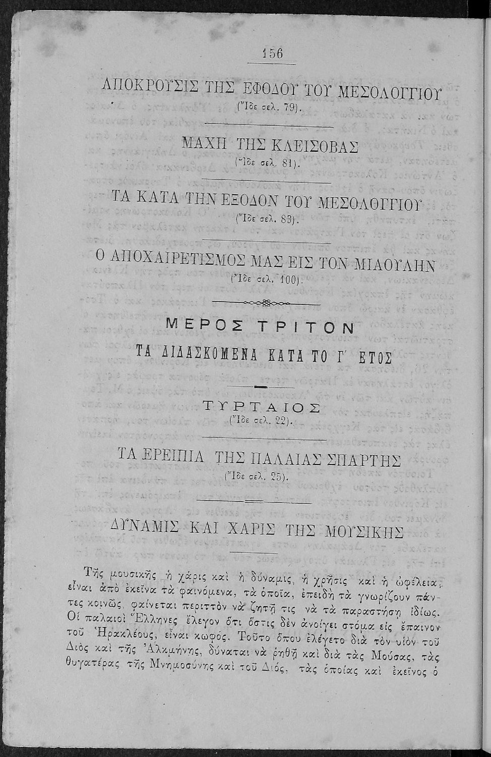 Σχολικό εγχειρίδιο Νέων Ελληνικών του 1889. Περιέχει πεζά και ποιήματα Ελλήνων λογοτεχνών εμπνευσμένα από την καθημερινή και ιστορική ζωή του τόπου. Έχει την έγκριση του Υπουργείου Δημόσιας Εκπαίδευσης.