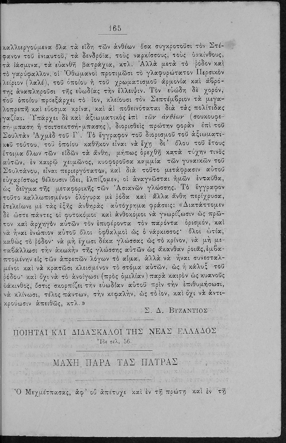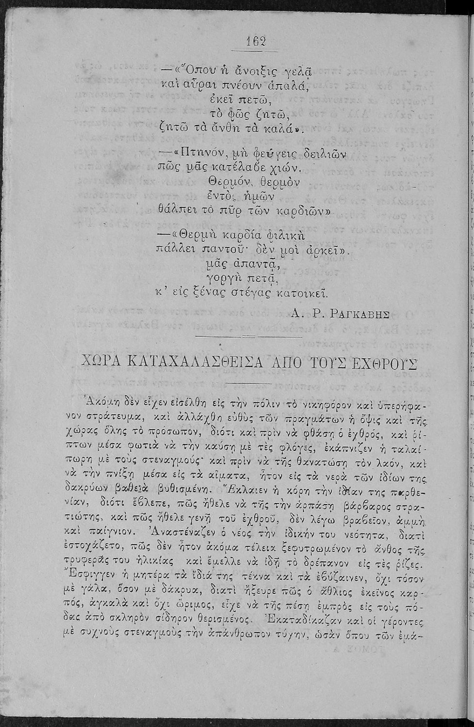 Σχολικό εγχειρίδιο Νέων Ελληνικών του 1889. Περιέχει πεζά και ποιήματα Ελλήνων λογοτεχνών εμπνευσμένα από την καθημερινή και ιστορική ζωή του τόπου. Έχει την έγκριση του Υπουργείου Δημόσιας Εκπαίδευσης.