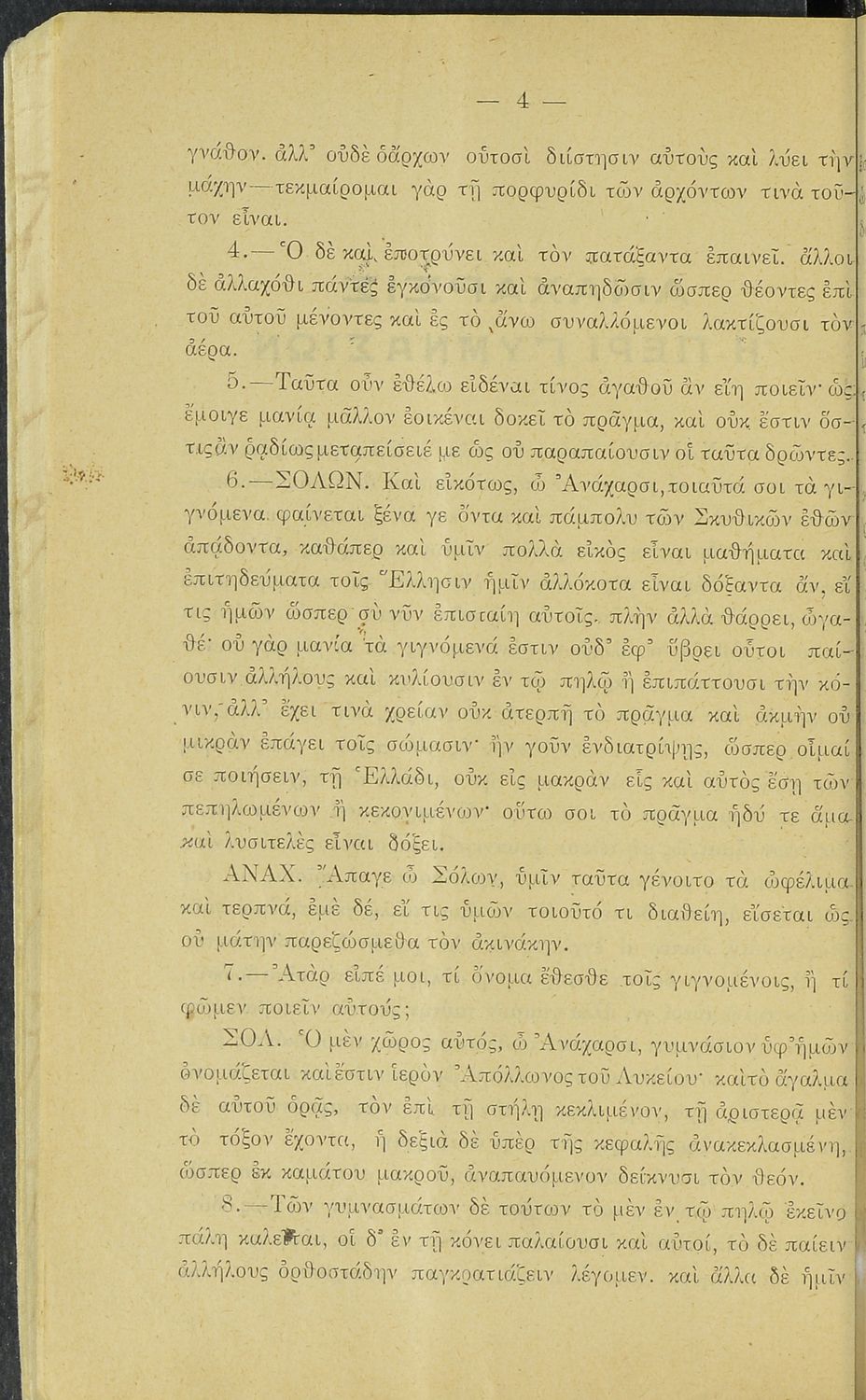 Μαθητικό βοήθημα Αρχαίων Ελληνικών της Γ΄ τάξης των τετρατάξιων Γυμνασίων. Το βιβλίο περιέχει σε μετάφραση το έργο του Πλάτωνα Απολογία του Σωκράτη.