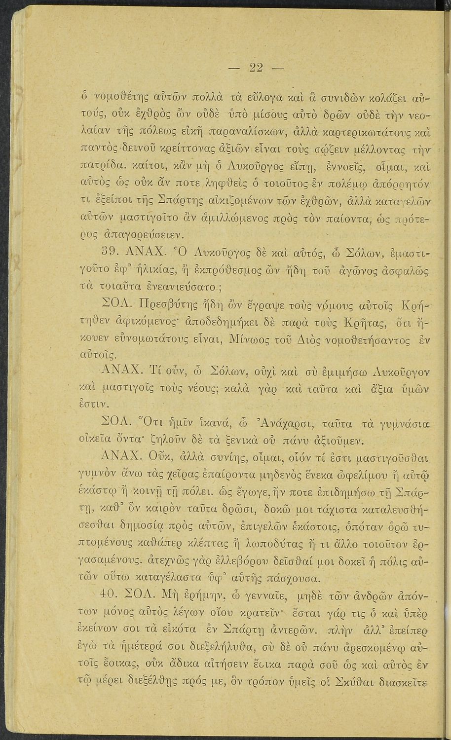 Μαθητικό βοήθημα Αρχαίων Ελληνικών της Γ΄ τάξης των τετρατάξιων Γυμνασίων. Το βιβλίο περιέχει σε μετάφραση το έργο του Πλάτωνα Απολογία του Σωκράτη.