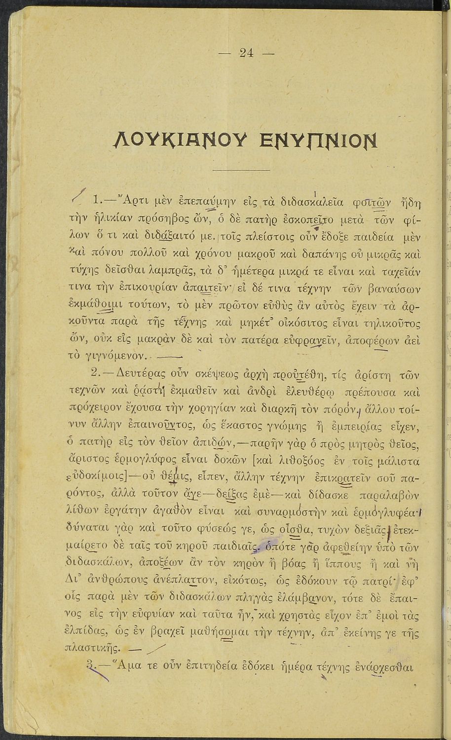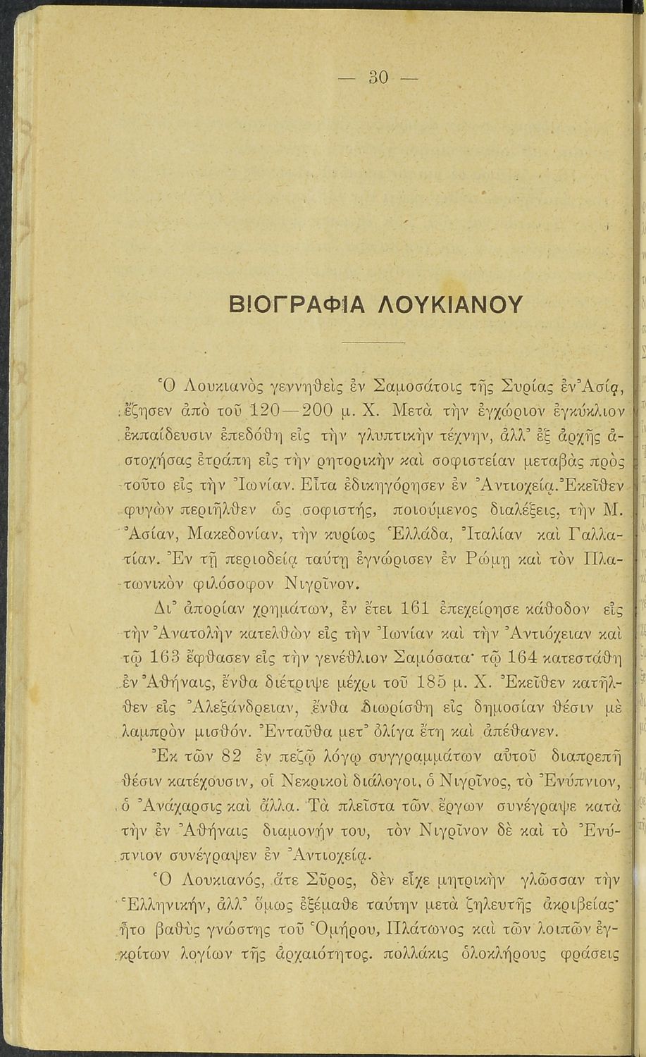 Μαθητικό βοήθημα Αρχαίων Ελληνικών της Γ΄ τάξης των τετρατάξιων Γυμνασίων το οποίο περιέχει το έργο του Λουκιανού 'Χάρωνος ή Επισκοπούντων' σε μετάφραση.