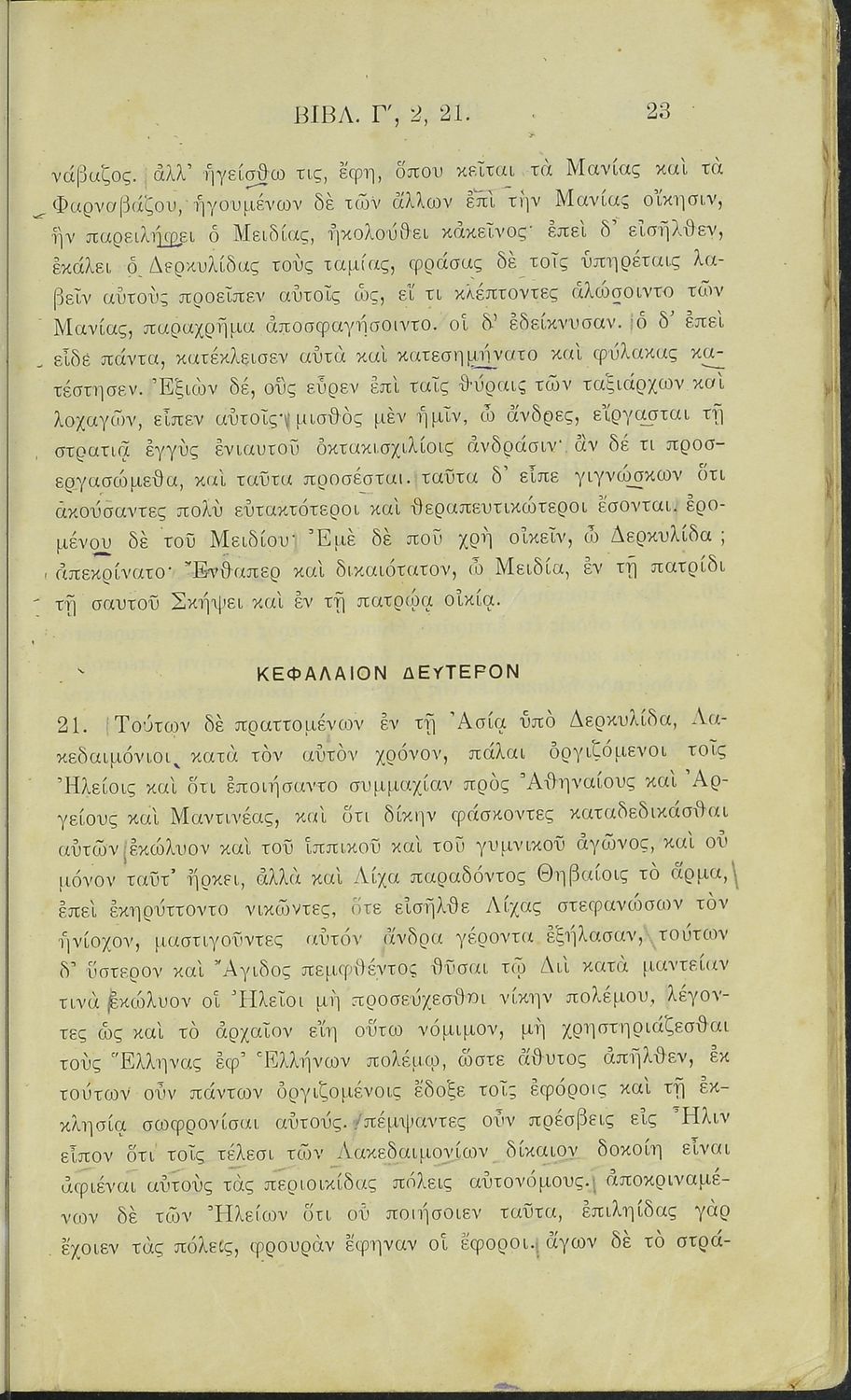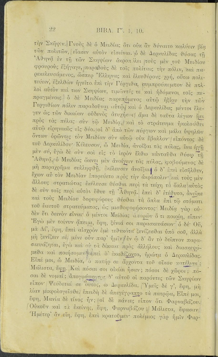 Μαθητικό βοήθημα Αρχαίων Ελληνικών της τρίτης τάξης των τετρατάξιων Γυμνασίων. Το βιβλίο περιέχει τα έργα του Δημοσθένη, Περί της ειρήνης και Α΄ Φιλιππικός από μετάφραση.