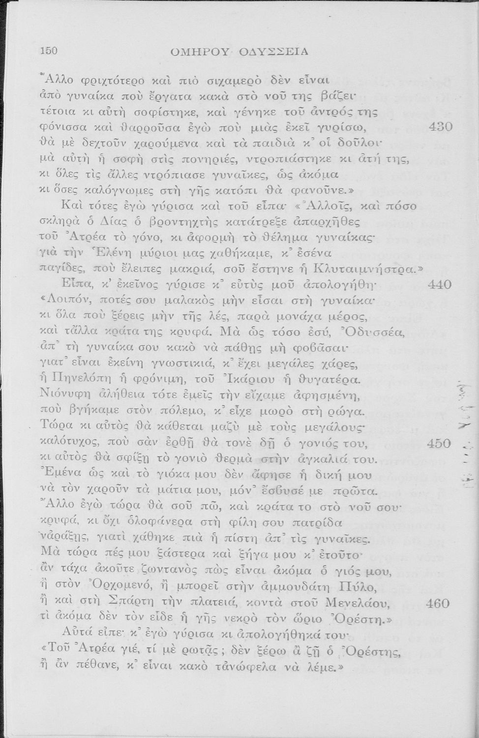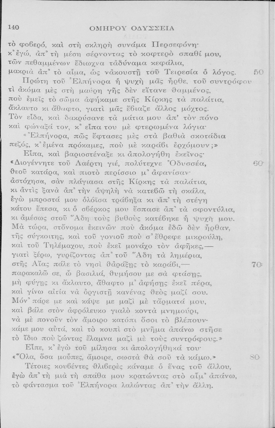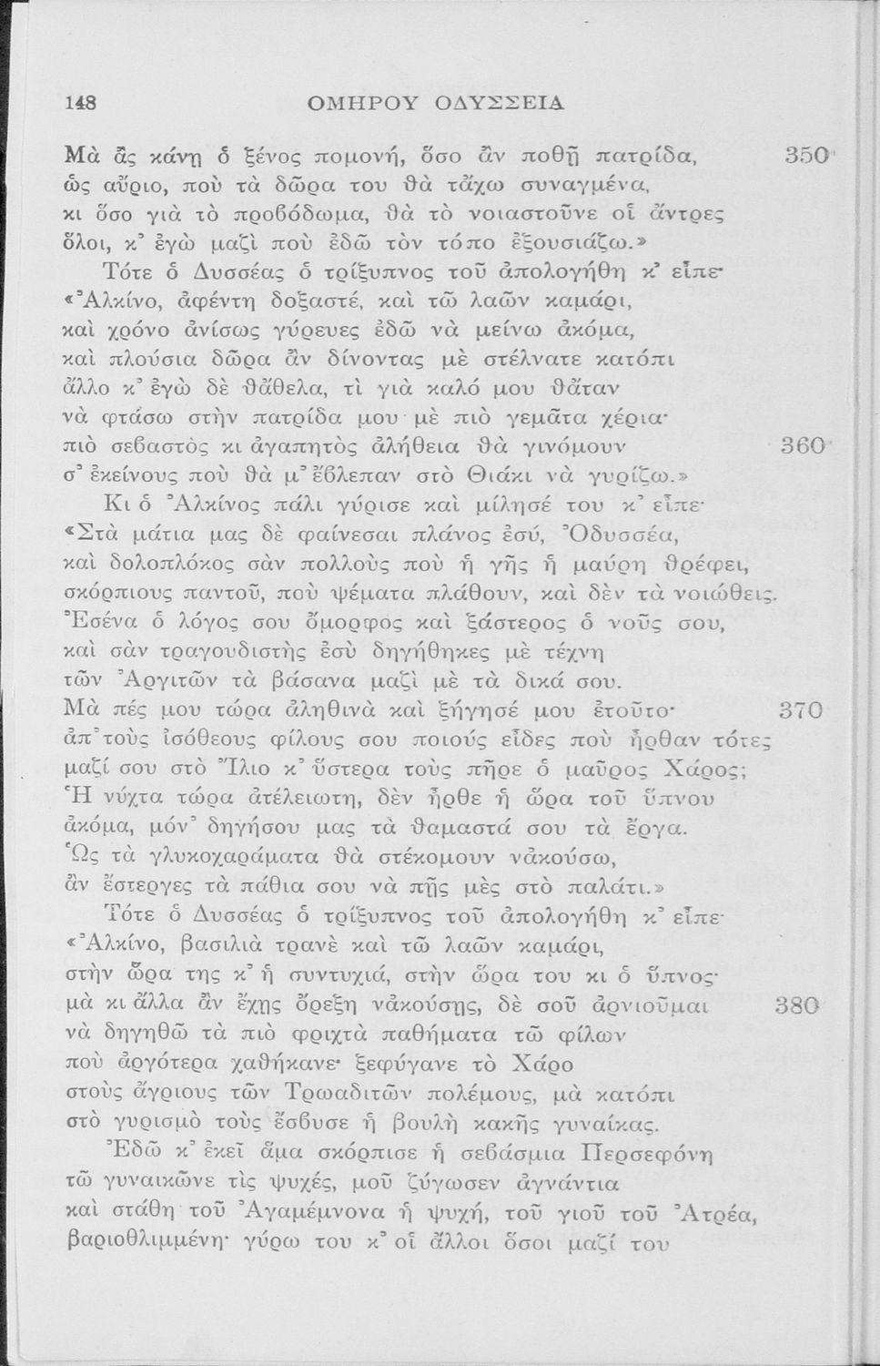Παιδαγωγικό βοήθημα Αρχαίων Ελληνικών που περιλαμβάνει μετάφραση των ραψωδιών Ν-Ω της Οδύσσειας.