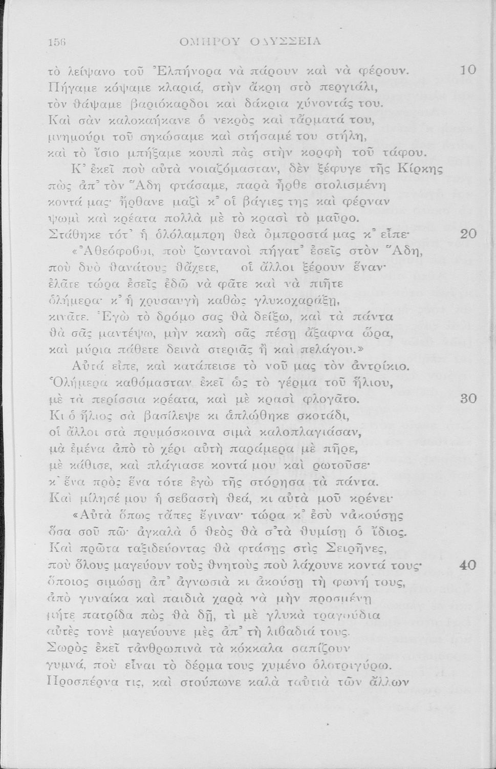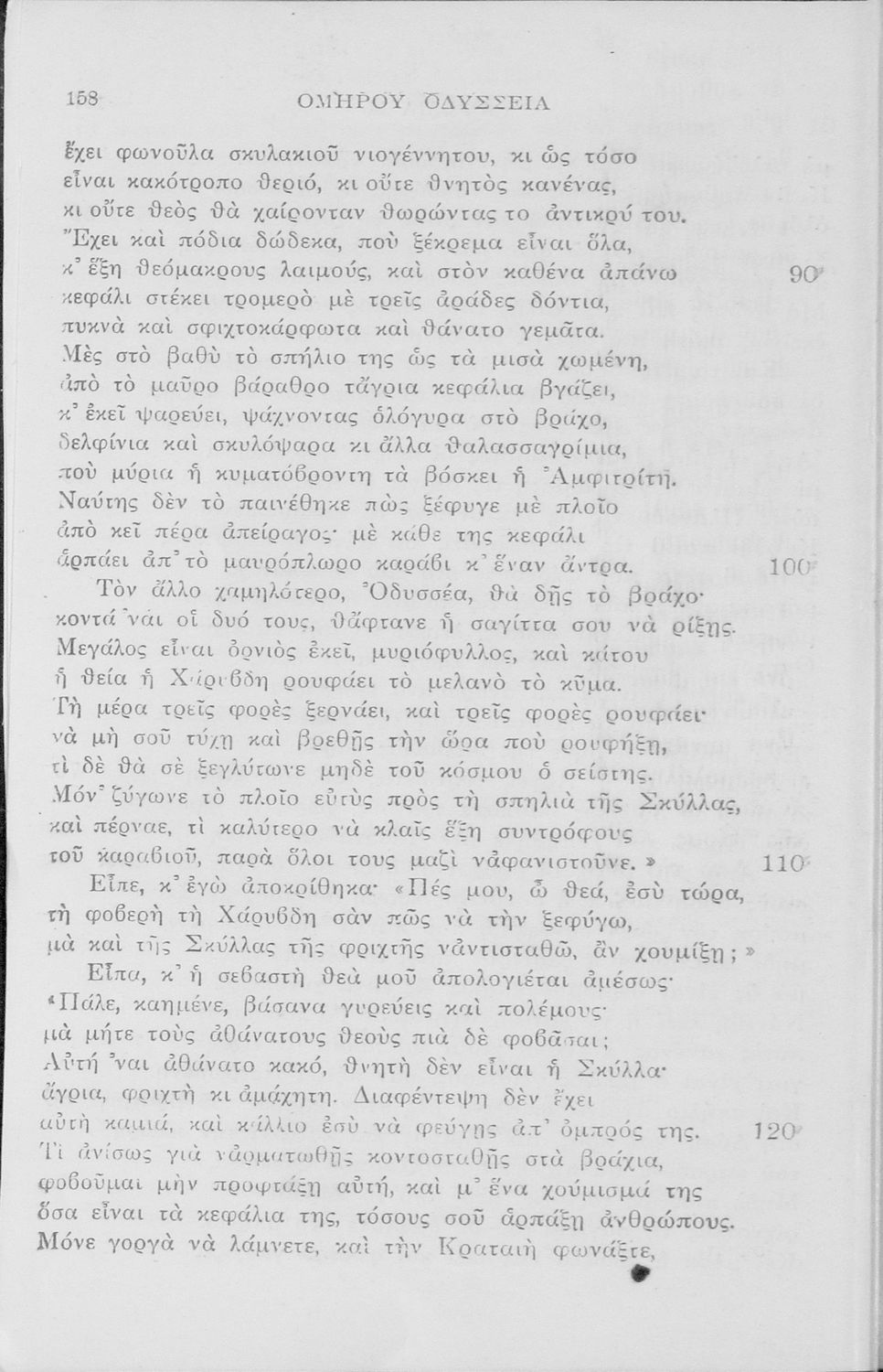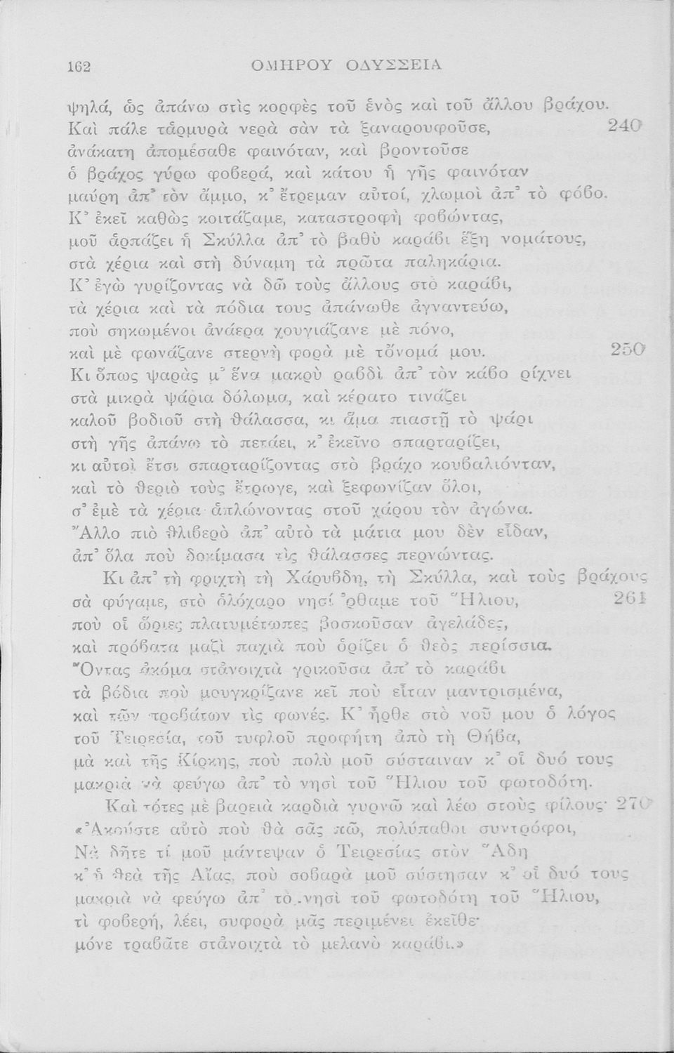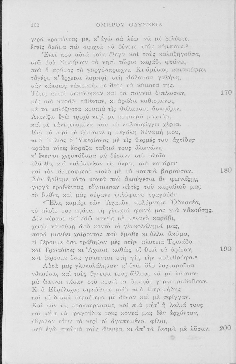 Σχολικό εγχειρίδιο του Γυμνασίου για το μάθημα των Αρχαίων Ελληνικών. Πρόκειται για το κείμενο της Οδύσσειας μεταφρασμένο στο τέλος περιλαμβάνει λεξιλόγιο.
