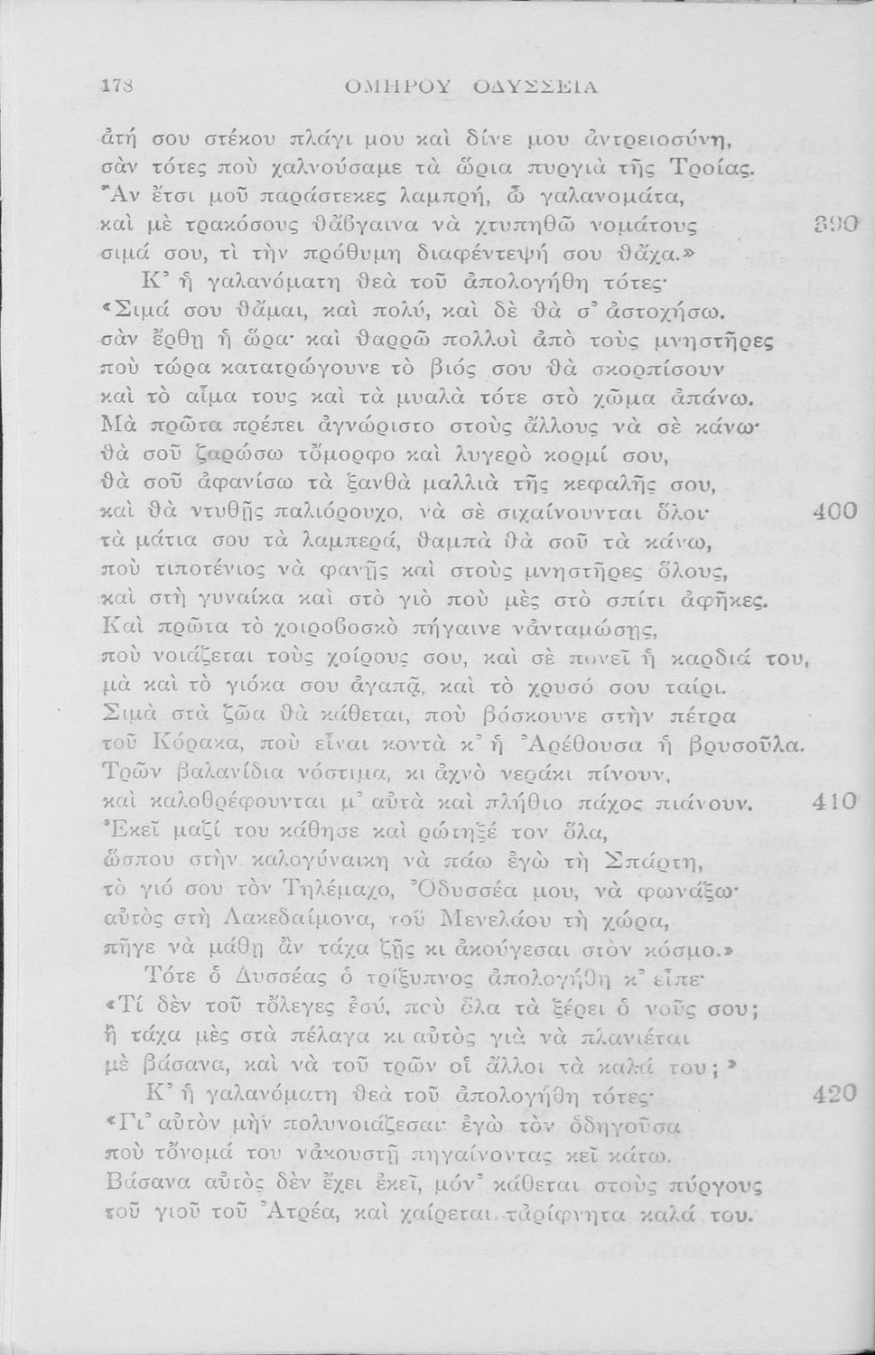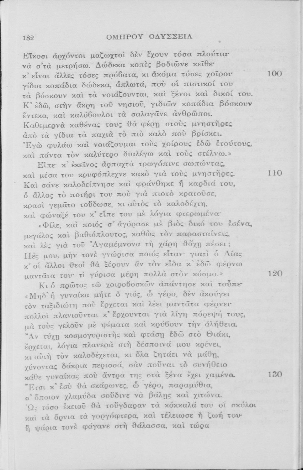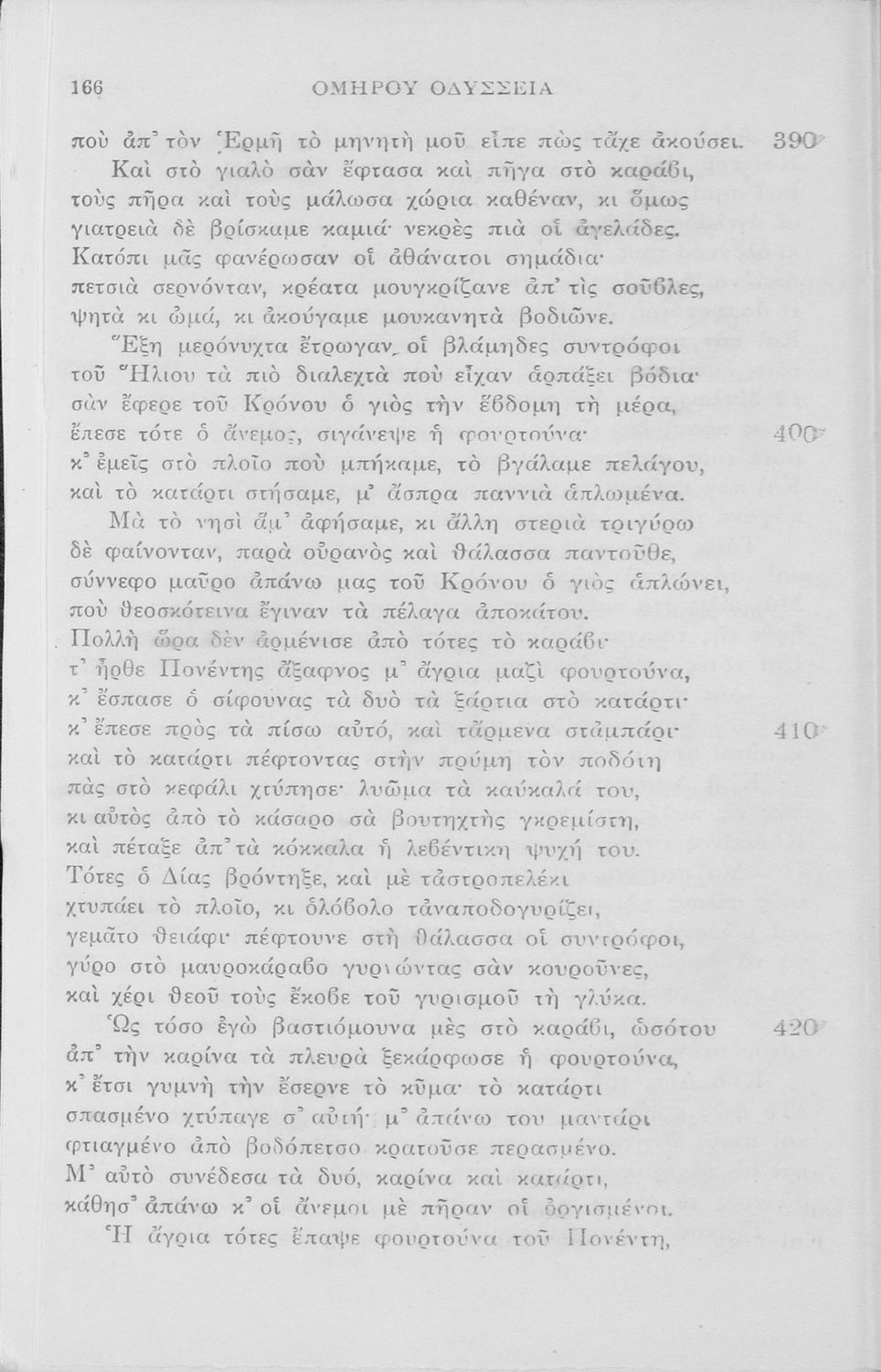 Σχολικό εγχειρίδιο του Γυμνασίου για το μάθημα των Αρχαίων Ελληνικών. Πρόκειται για το κείμενο της Οδύσσειας μεταφρασμένο στο τέλος περιλαμβάνει λεξιλόγιο.