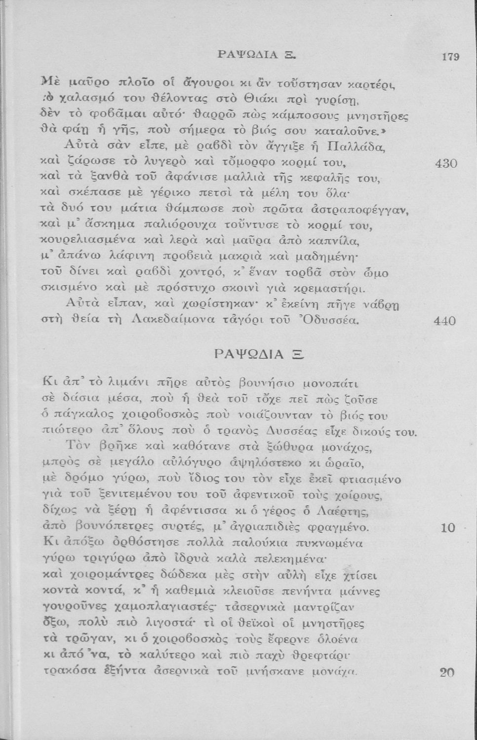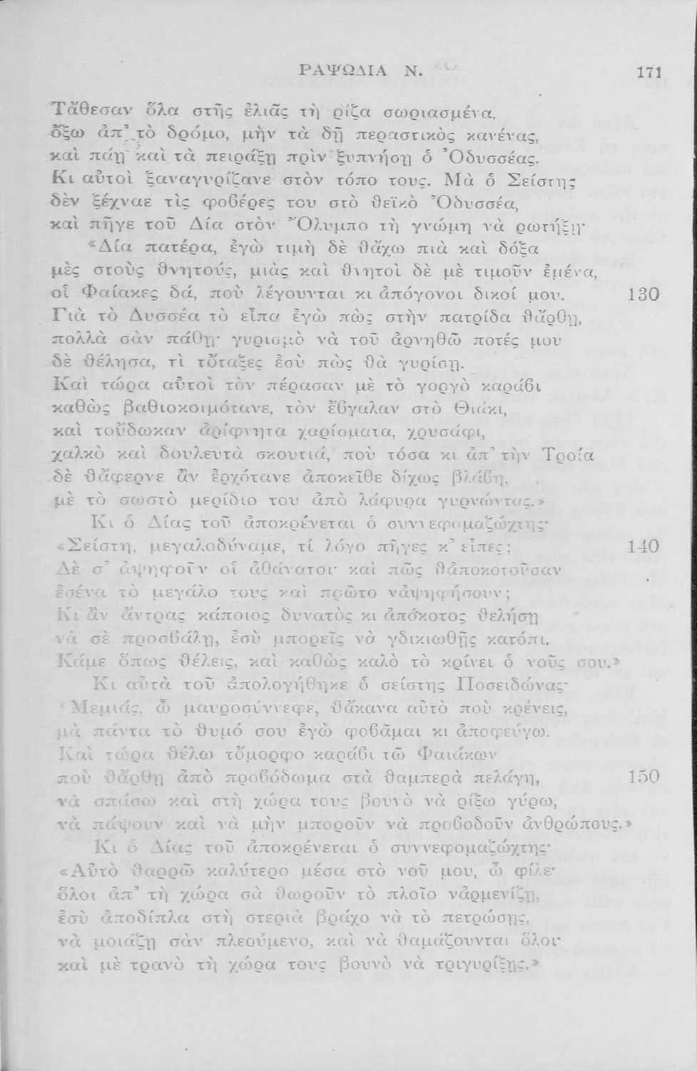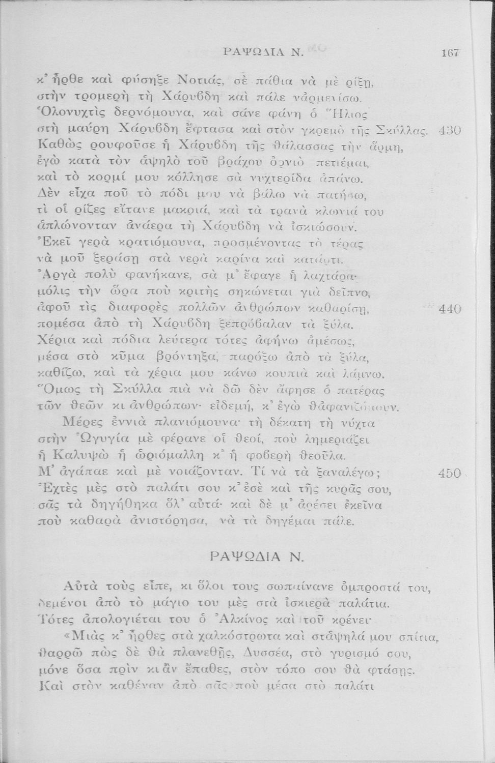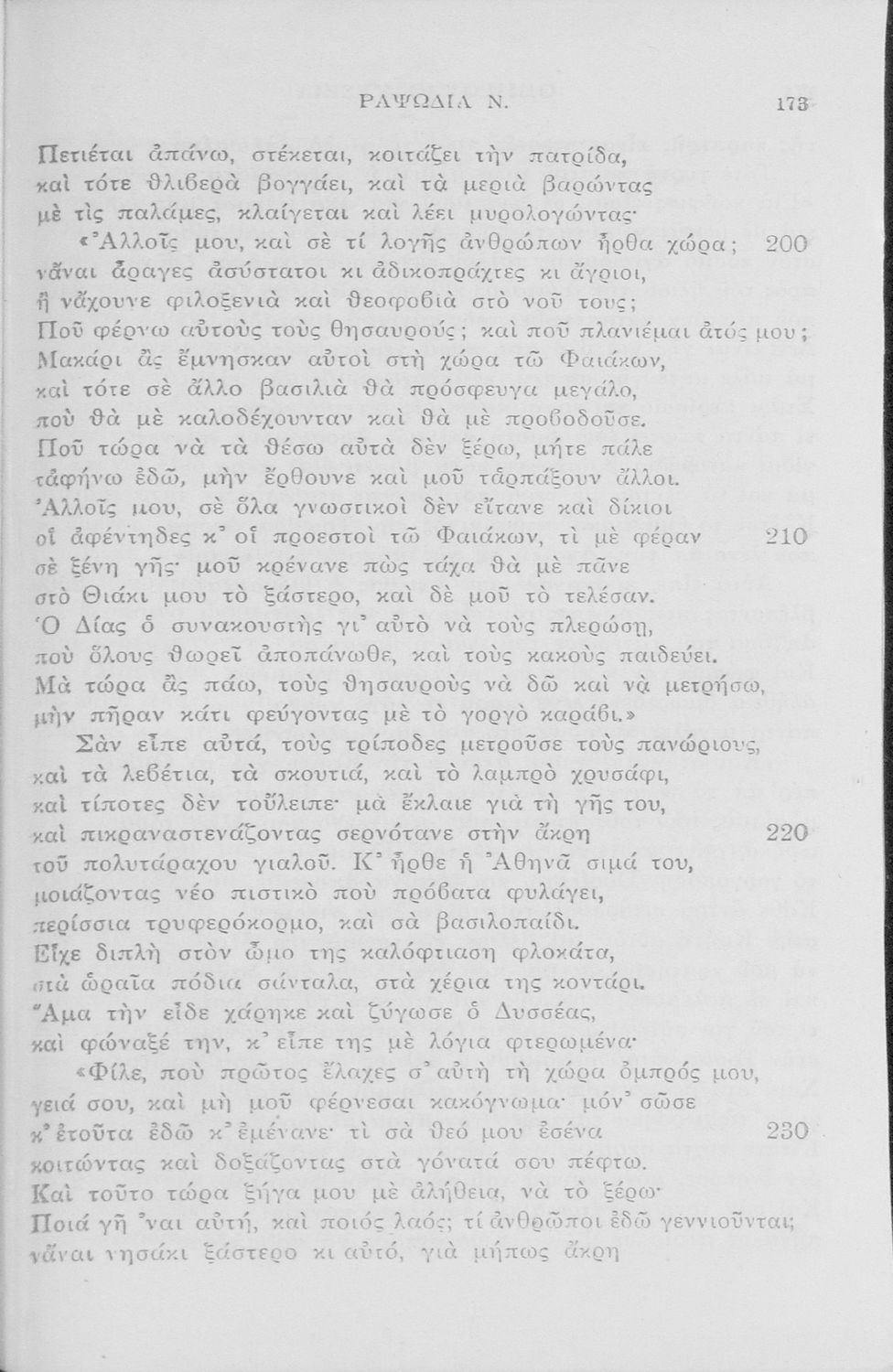 Παιδαγωγικό βοήθημα Αρχαίων Ελληνικών που περιλαμβάνει μετάφραση των ραψωδιών Ν-Ω της Οδύσσειας.