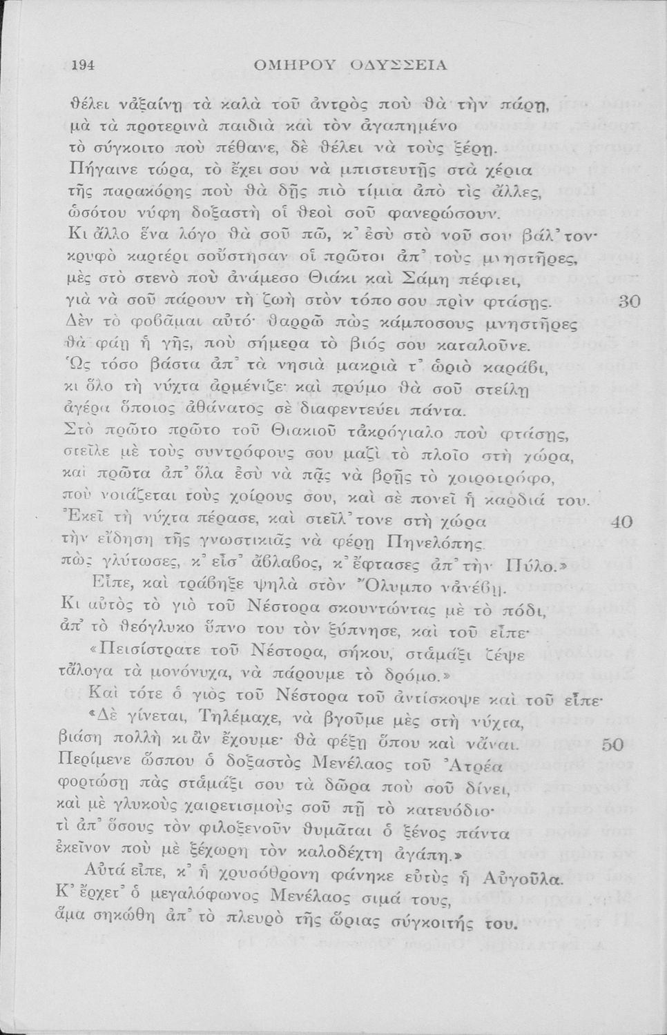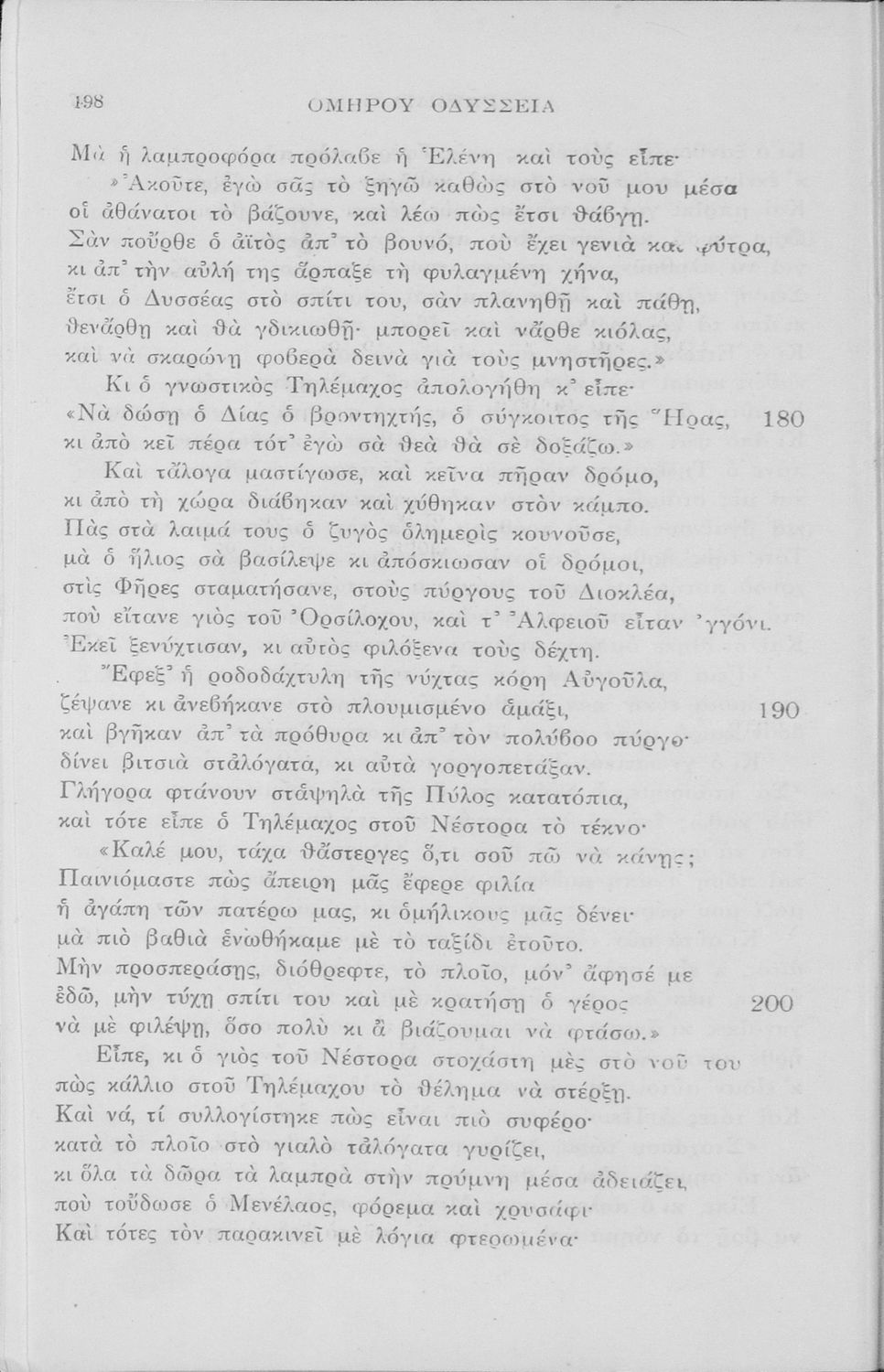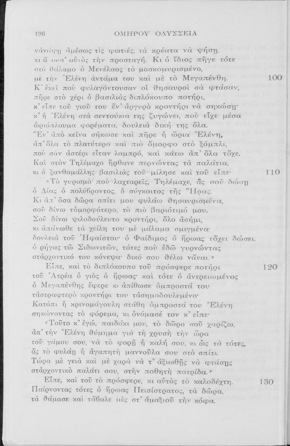 520 ## _aΣχολικό εγχειρίδιο του Γυμνασίου για το μάθημα των Αρχαίων Ελληνικών. Περιέχει τις ραψωδίες της Οδύσσειας και ερμηνευτικά, πραγματολογικά σχόλια, καθώς κ και γραμματικές παρατηρήσεις του συγγραφέα. Εγκρίθηκε για μια πενταετία 1932-1937.