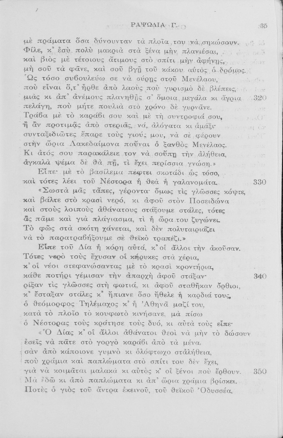 Παιδαγωγικό βοήθημα Αρχαίων Ελληνικών που περιλαμβάνει μετάφραση των ραψωδιών Ν-Ω της Οδύσσειας.