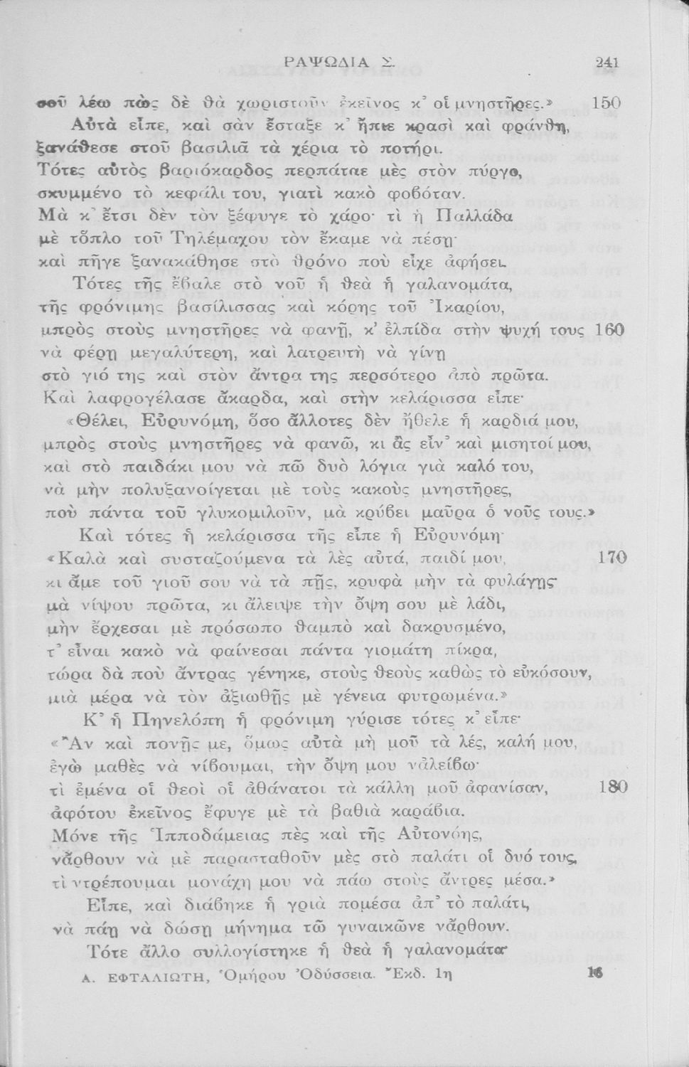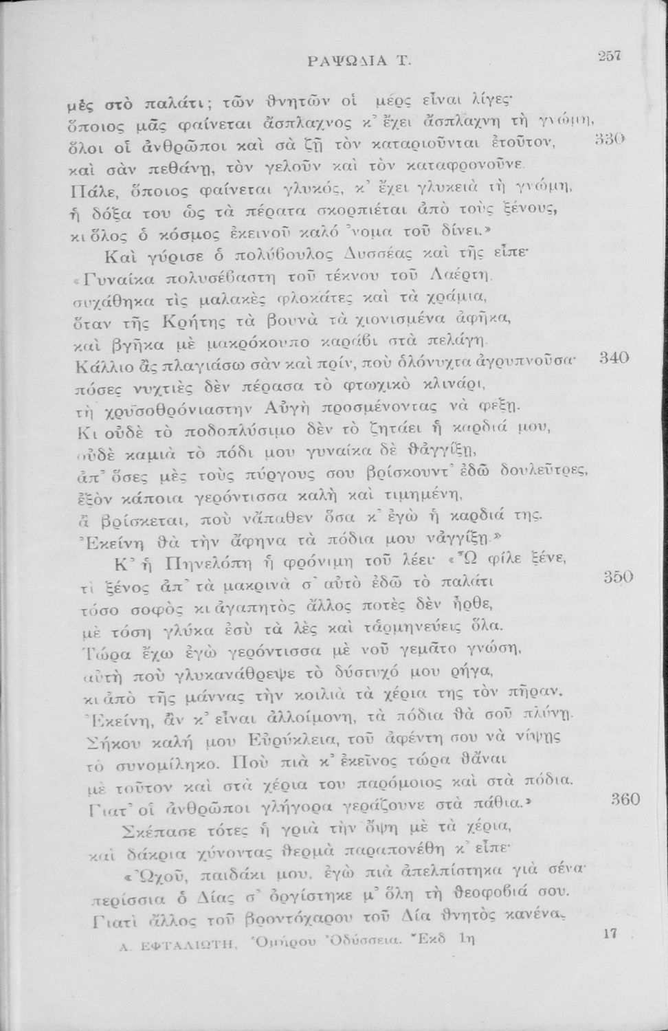 Παιδαγωγικό βοήθημα Αρχαίων Ελληνικών που περιλαμβάνει μετάφραση των ραψωδιών Ν-Ω της Οδύσσειας.