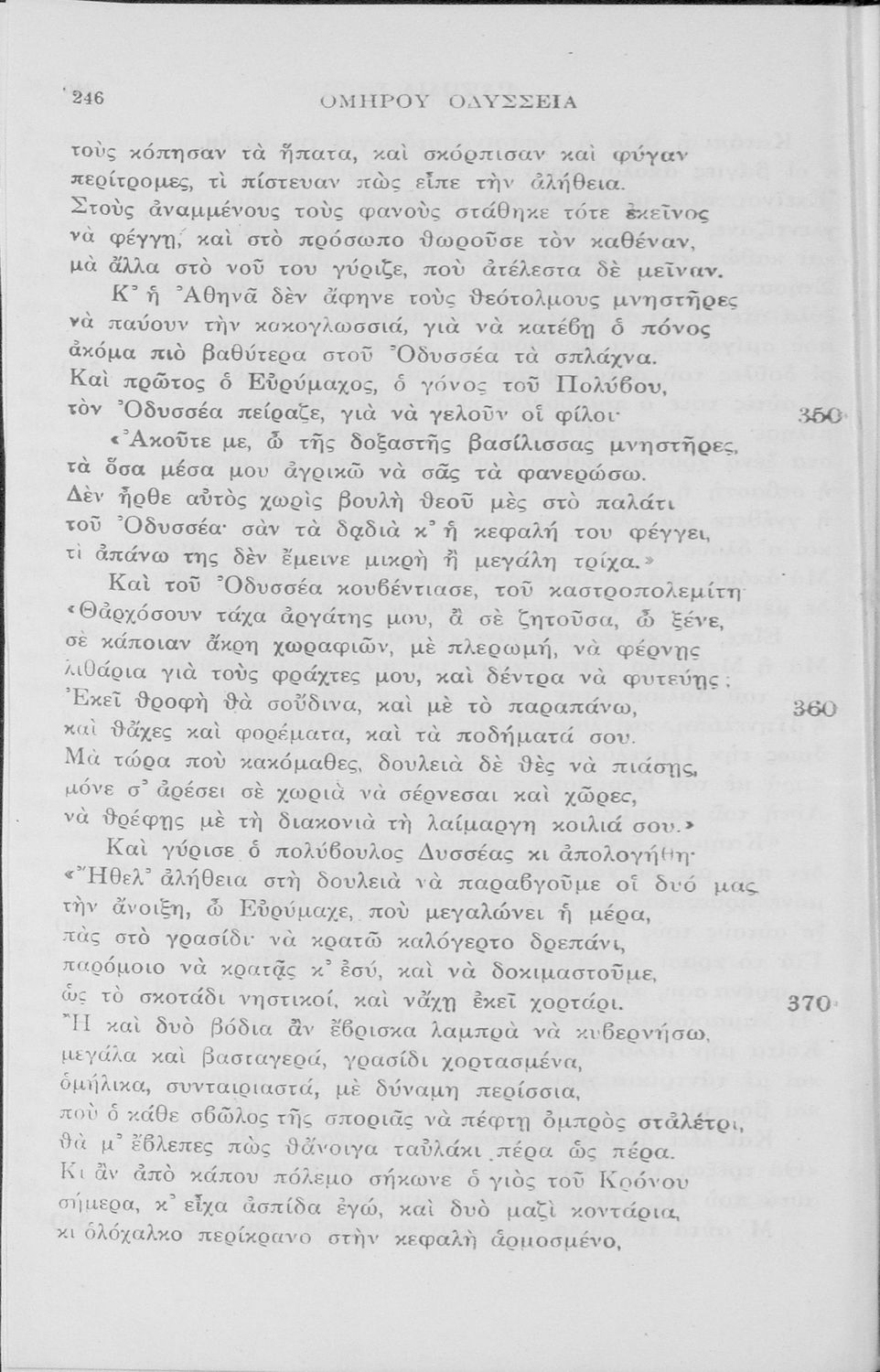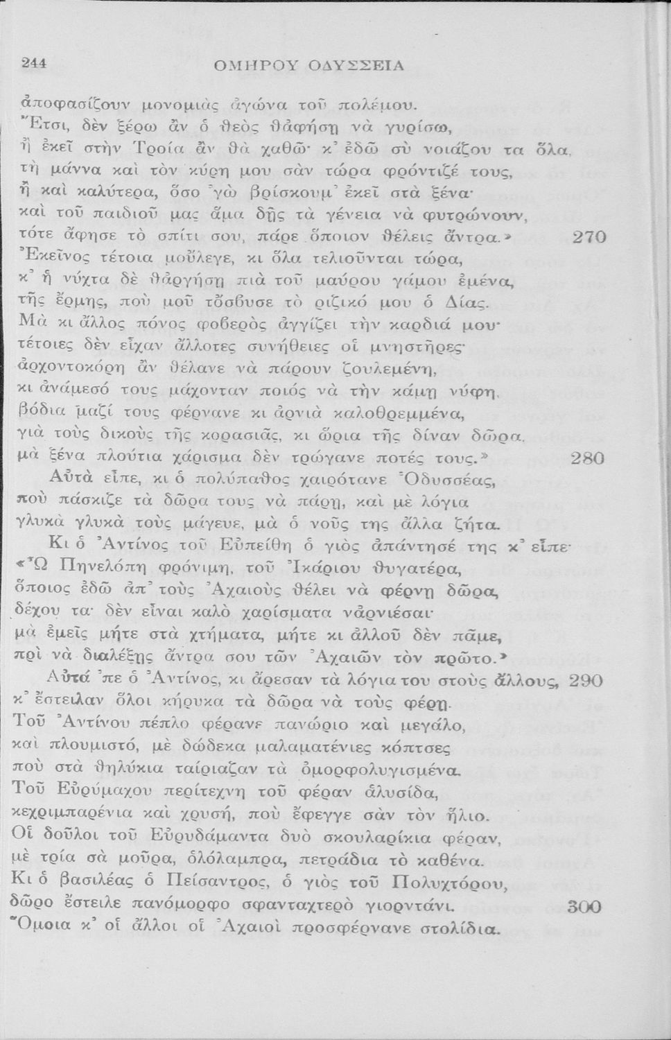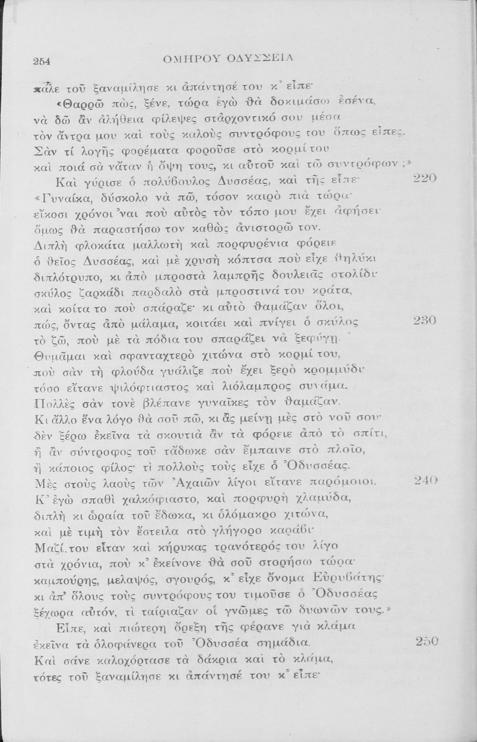 Σχολικό εγχειρίδιο του Γυμνασίου για το μάθημα των Αρχαίων Ελληνικών. Πρόκειται για το κείμενο της Οδύσσειας μεταφρασμένο στο τέλος περιλαμβάνει λεξιλόγιο.