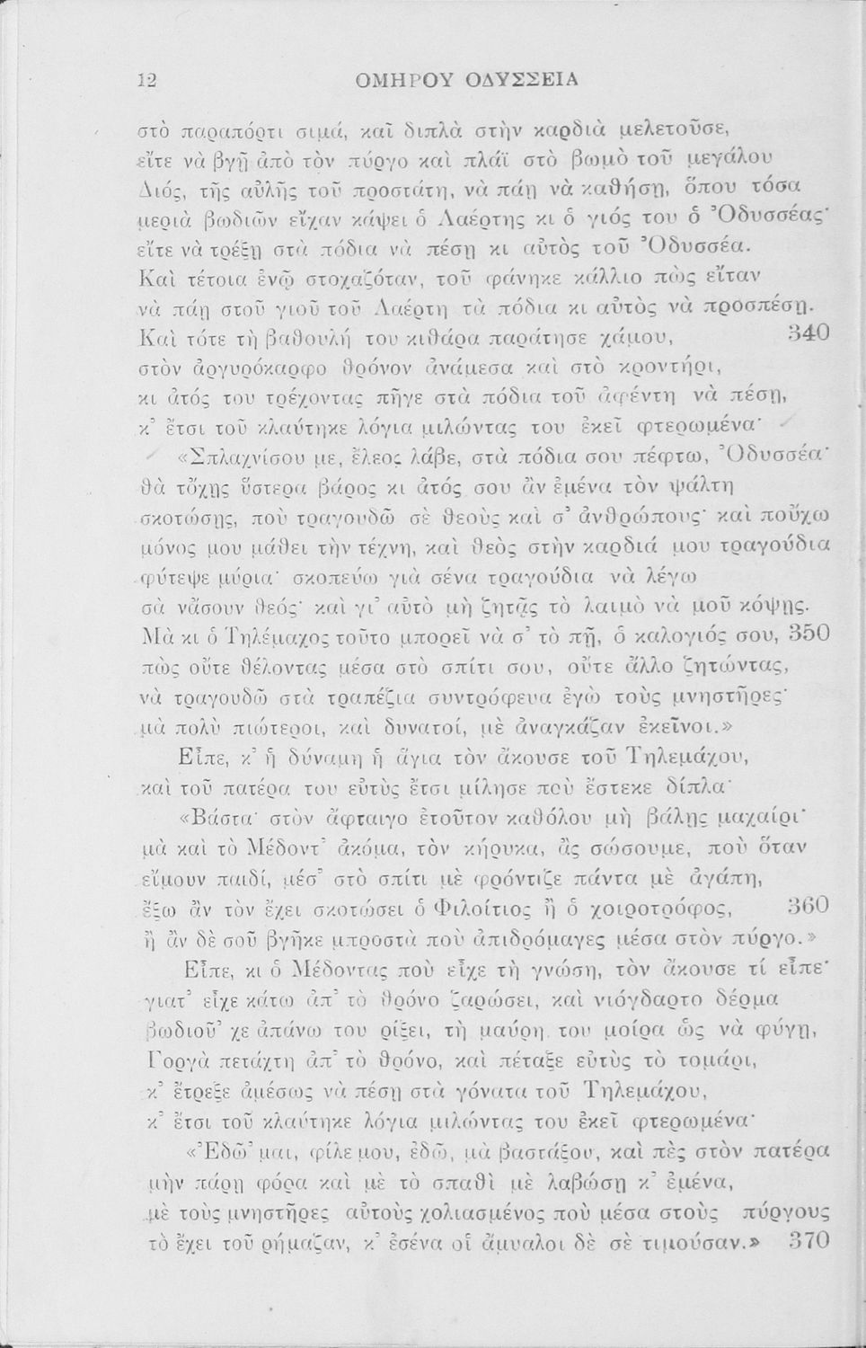 Σχολικό εγχειρίδιο Αρχαίων Ελληνικών Γυμνασίου που περιλαμβάνει αποσπάσματα από τις ραψωδίες της Οδύσσειας, ερμηνευτικά και πραγματολογικά σχόλια, και λεξιλογικές παρατηρήσεις.