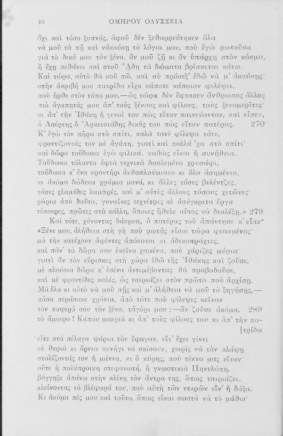 Παρουσίαση περιεχομένου: Σχολικό εγχειρίδιο του Γυμνασίου για το μάθημα των Αρχαίων Ελληνικών. Περιέχει τις ραψωδίες της Οδύσσειας και ερμηνευτικά, πραγματολογικά σχόλια, καθώς κ και γραμματικές παρατηρήσεις του συγγραφέα. Εγκρίθηκε για μια πενταετία 1932-1937.