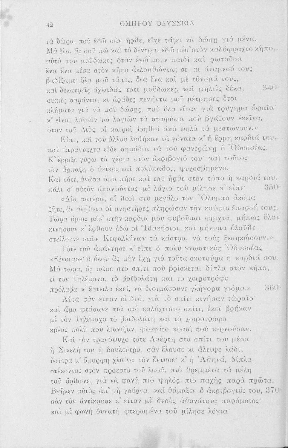 Σχολικό εγχειρίδιο του Γυμνασίου για το μάθημα των Αρχαίων Ελληνικών. Πρόκειται για το κείμενο της Οδύσσειας μεταφρασμένο στο τέλος περιλαμβάνει λεξιλόγιο.