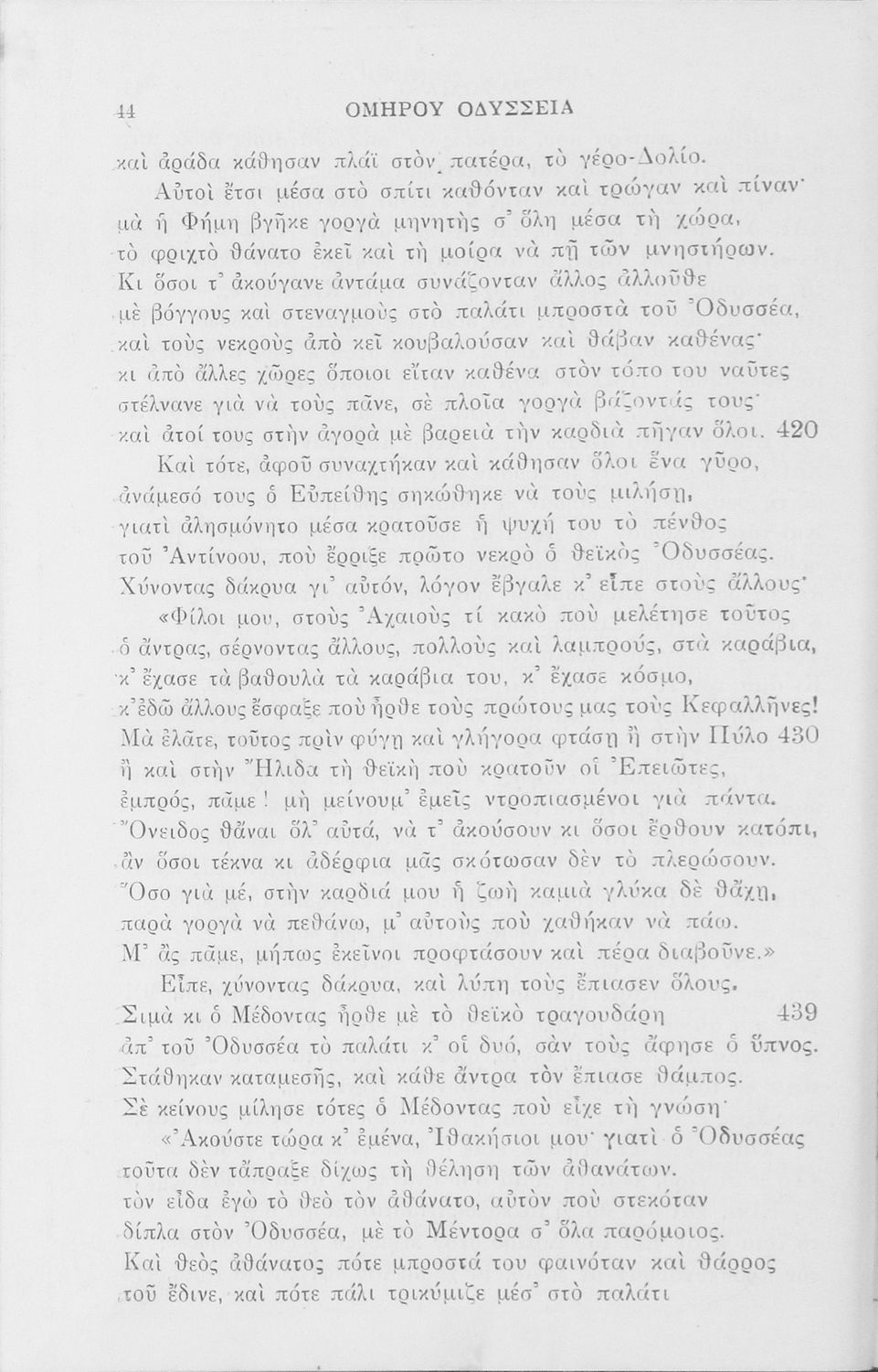 Παιδαγωγικό βοήθημα Αρχαίων Ελληνικών που περιλαμβάνει μετάφραση των ραψωδιών Ν-Ω της Οδύσσειας.
